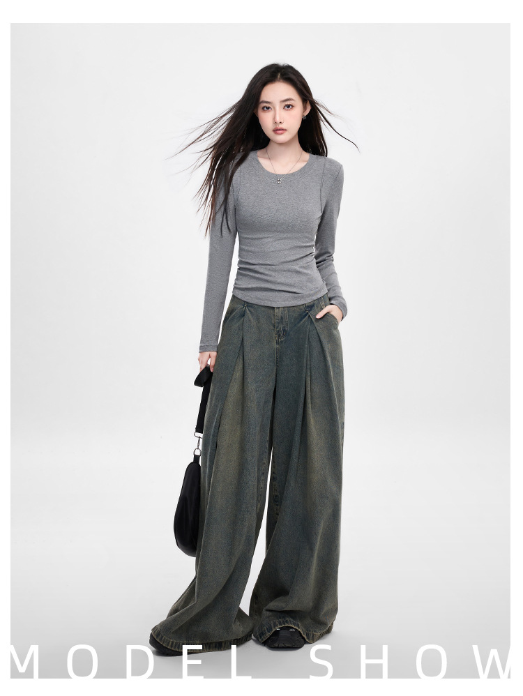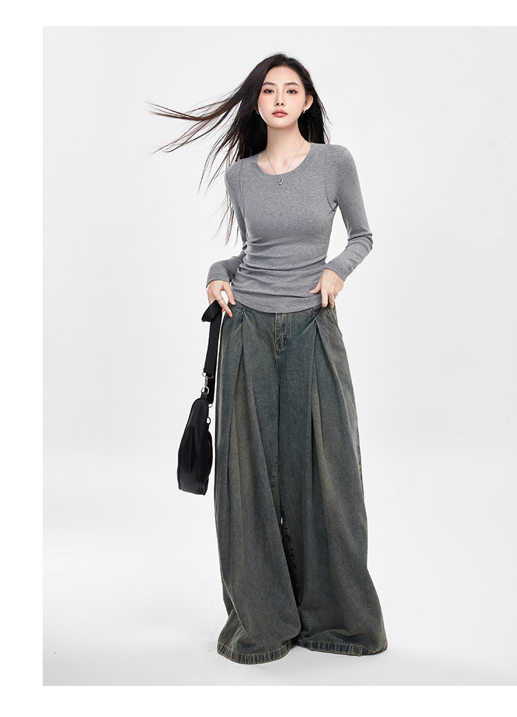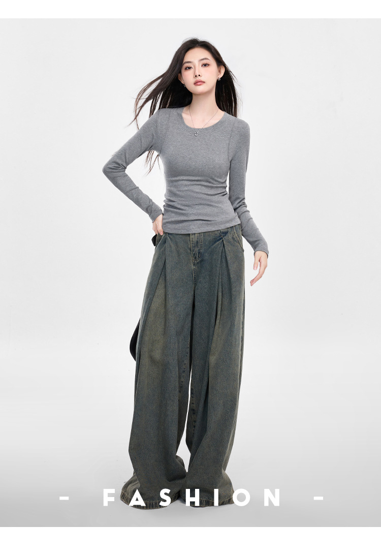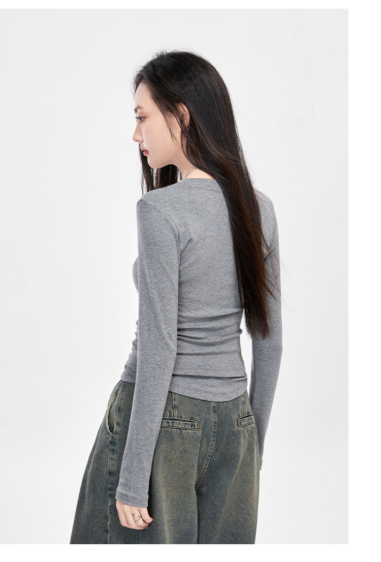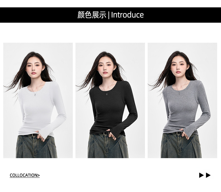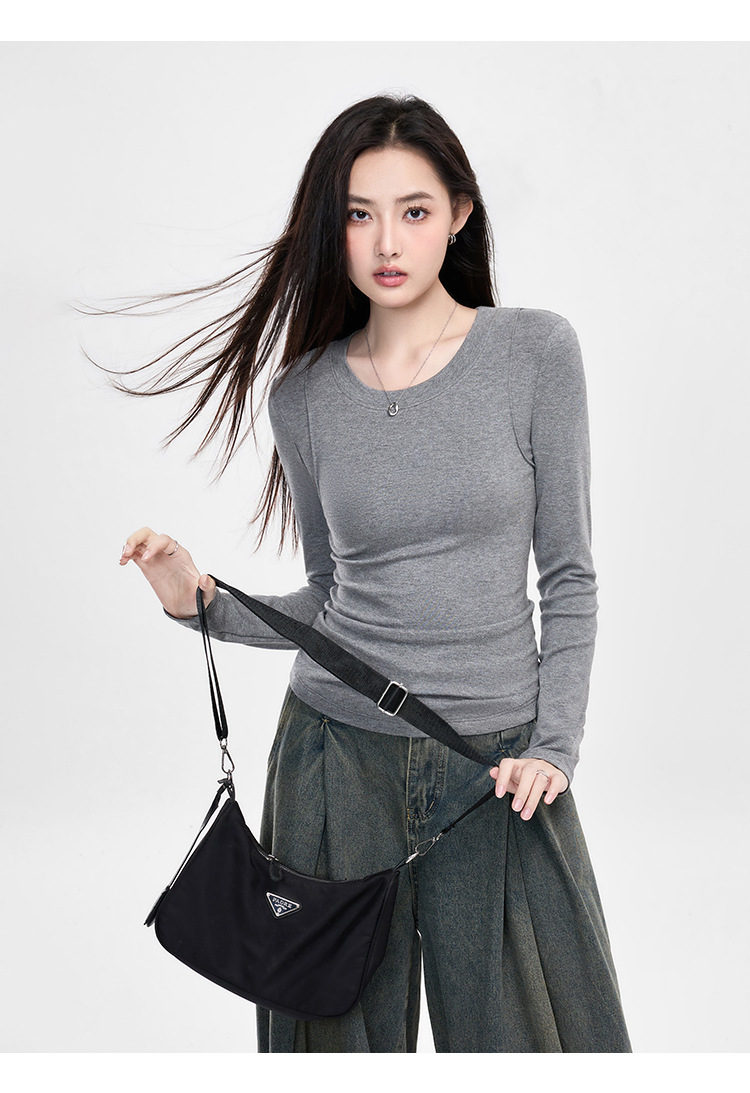 25년 신제품 피부친화적인 슬림핏 긴팔 디자인 티셔츠 여성용 여성용 솔리드 컬러 바텀 셔츠스토어 가기
