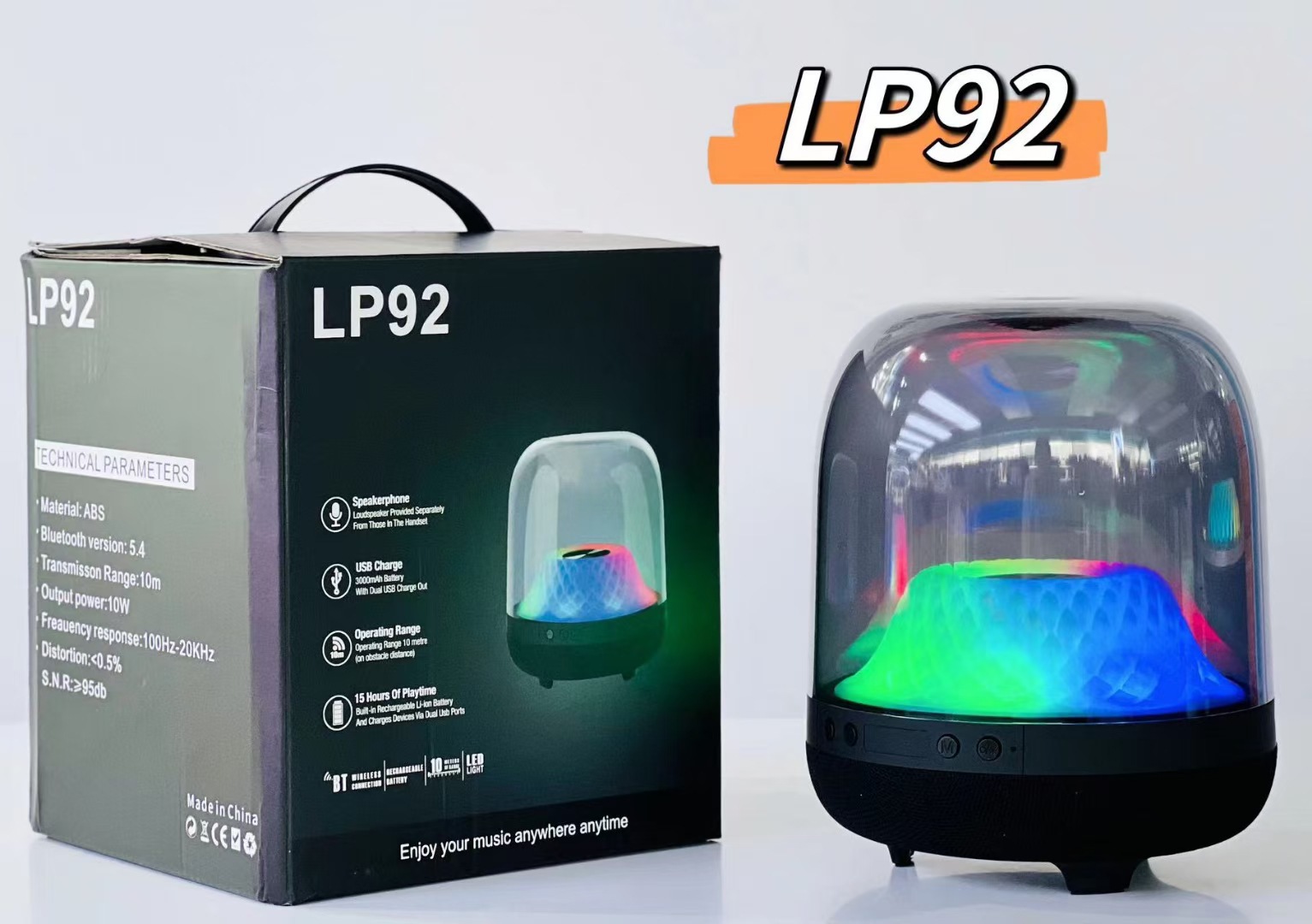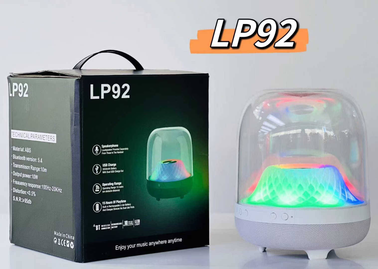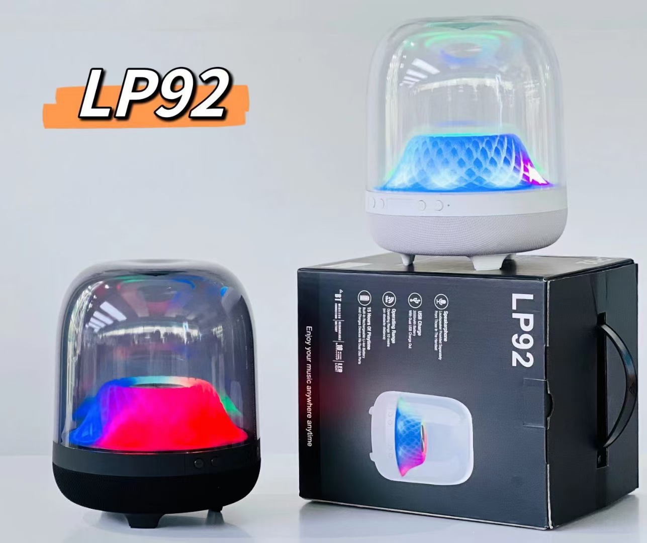 국경 간 새로운 유리 4 세대 무선 블루투스 스피커 고출력 서브 우퍼 조명 데스크탑 투명 오디오 LP92