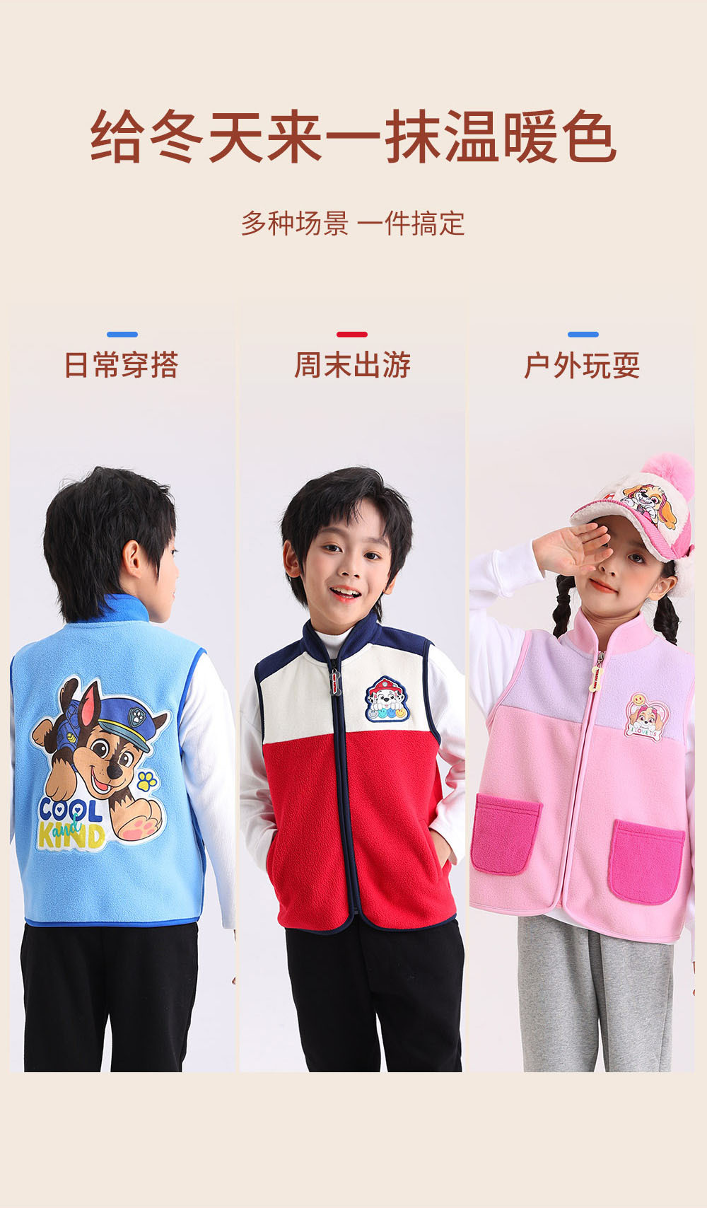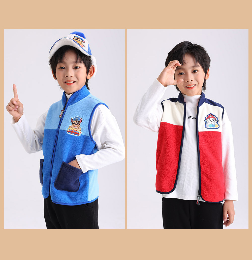 강아지 팀 가을 겨울 아동 조끼, 폴라 플리스 소재, 남아용 보온 조끼, 중소형 아동 조끼 도매스토어 가기