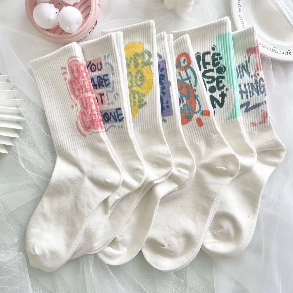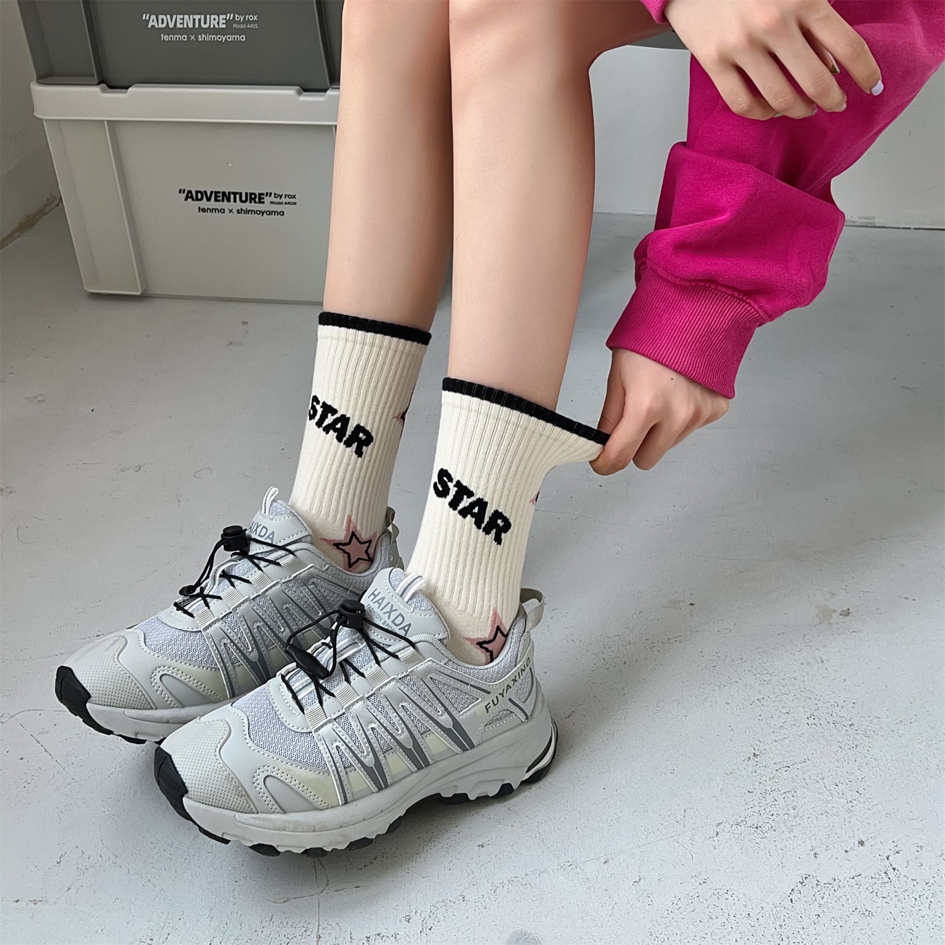 가을 겨울 새로운 뼈없는 양말 여성 양말 검은 핑크 줄무늬 편지 여성 스포츠 양말 Ins 유행 튜브 양말스토어 가기
