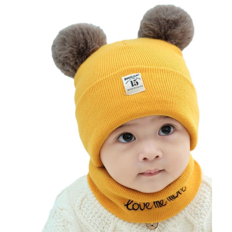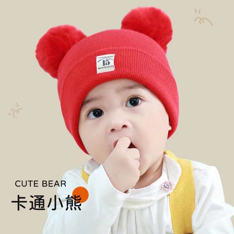 유아 및 소년을위한 가을, 겨울 니트 모자 아기 소녀 양모 모자 한국 곰 따뜻하고 두꺼운 신생아 모자