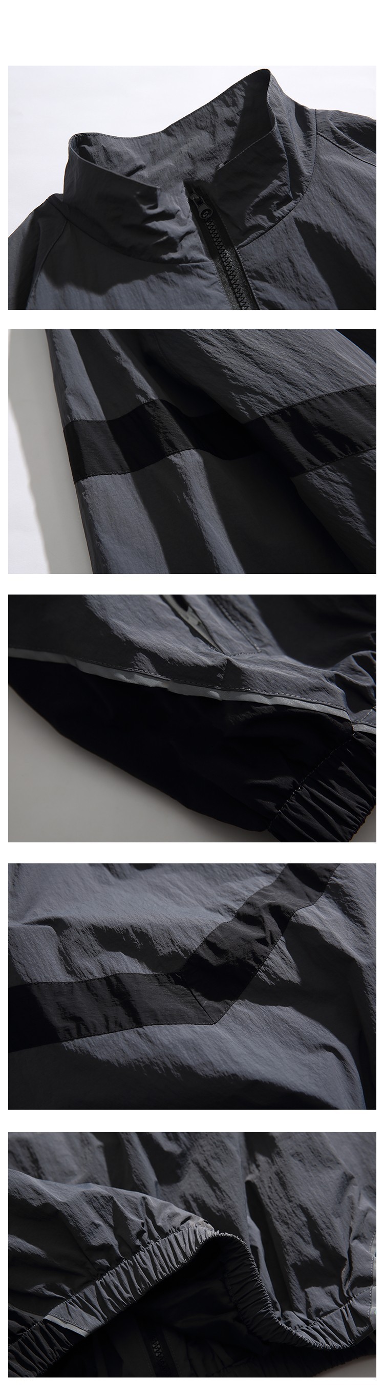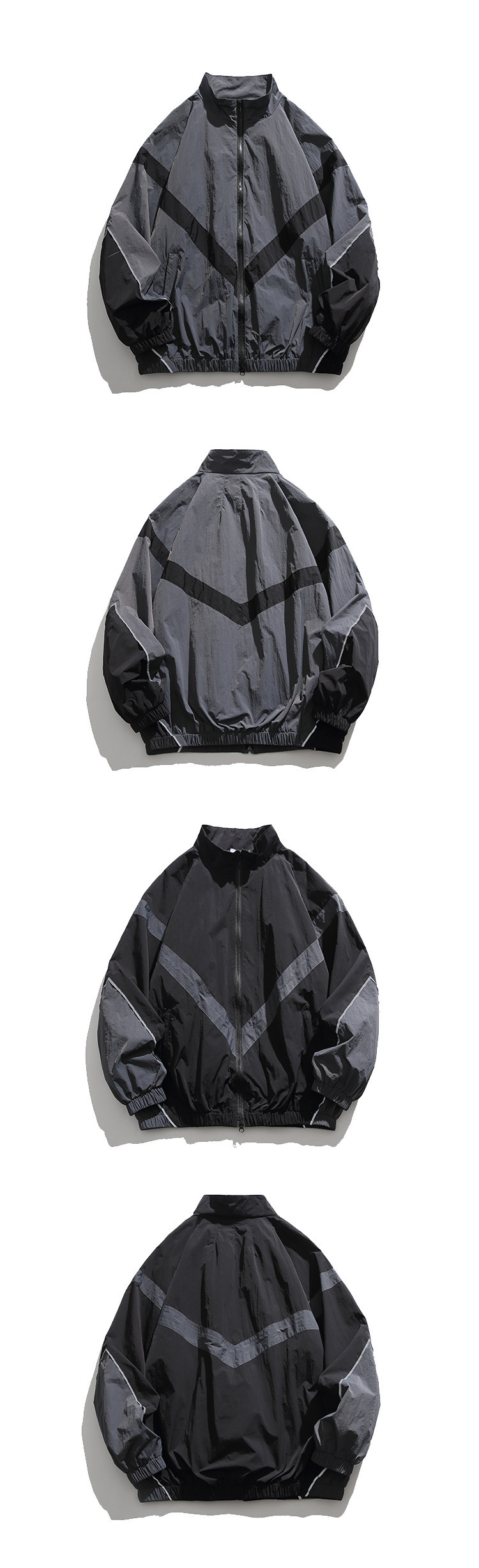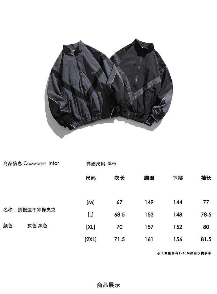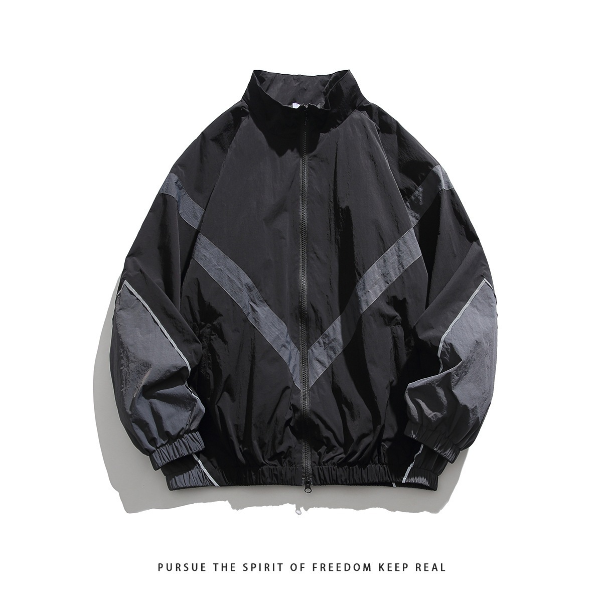 미국 스타일의 트렌디 브랜드 임베디드 반사 스티칭 수직 칼라 지퍼 재킷 가을 Russ 느슨한 캐주얼 재킷 남성용 얇은 재킷