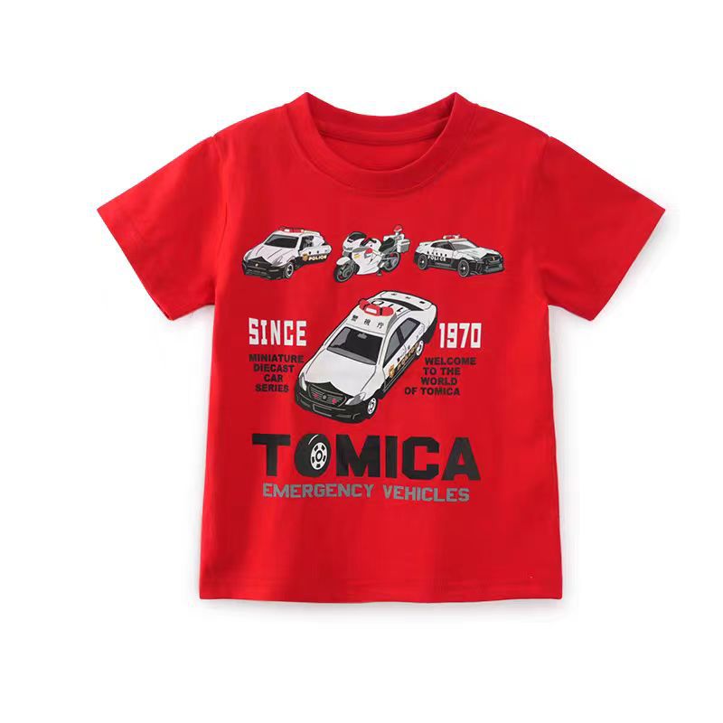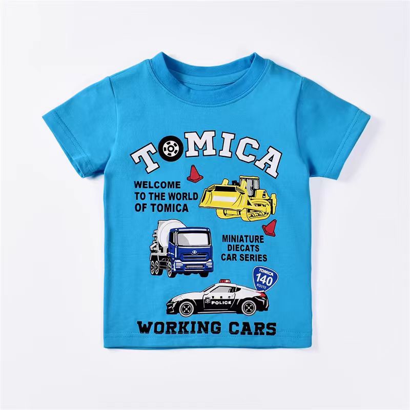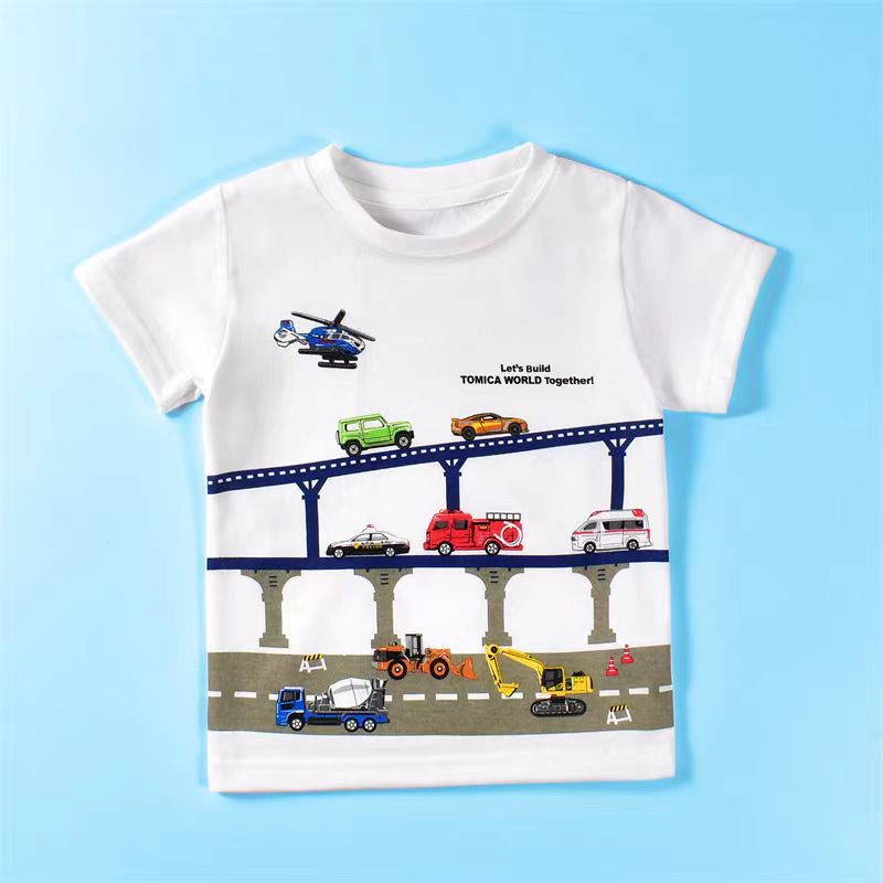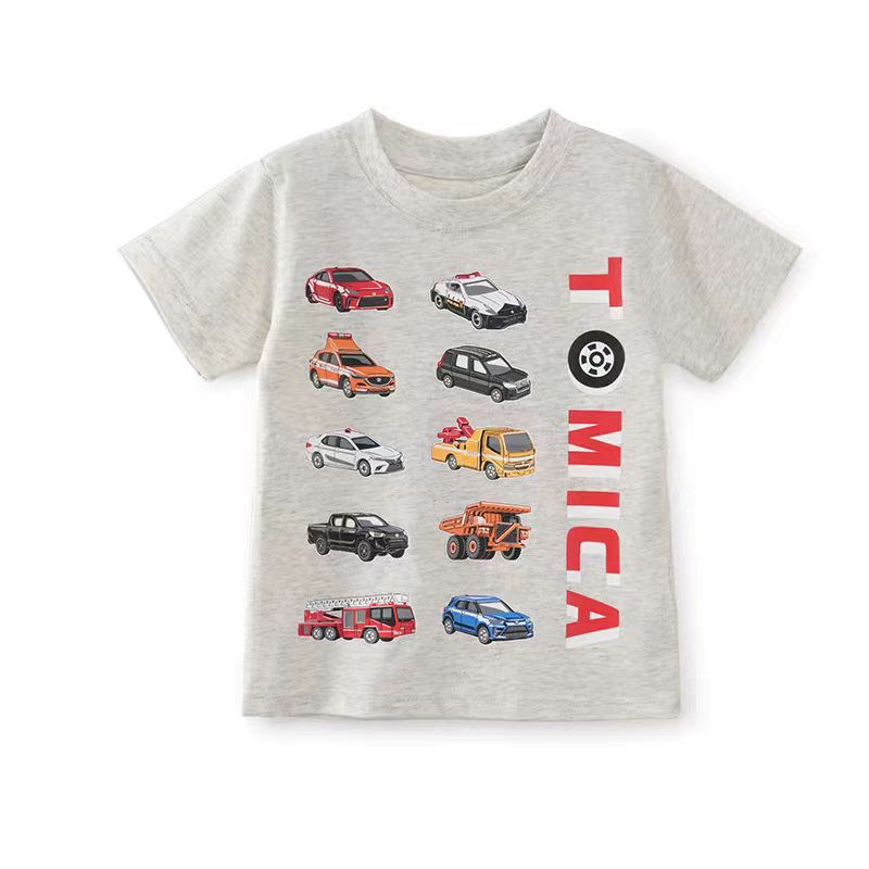 100 면 어린이 반팔 티셔츠 면 아기 소년의 만화 자동차 패턴 여름 탑 얇은 아동복