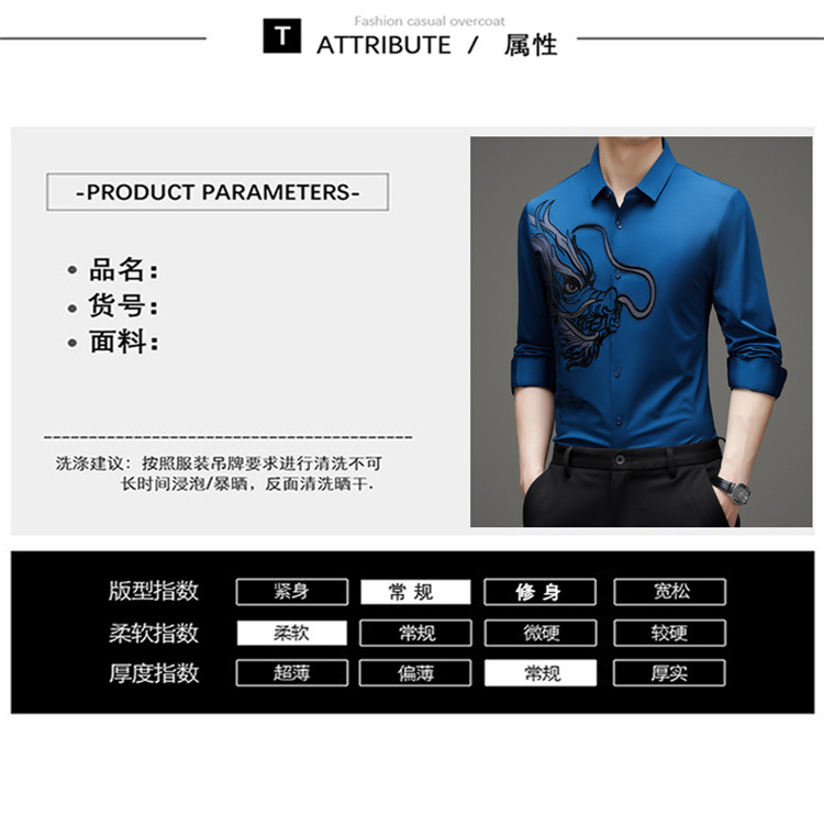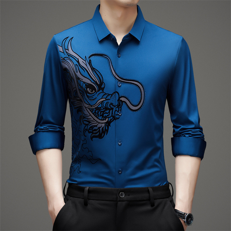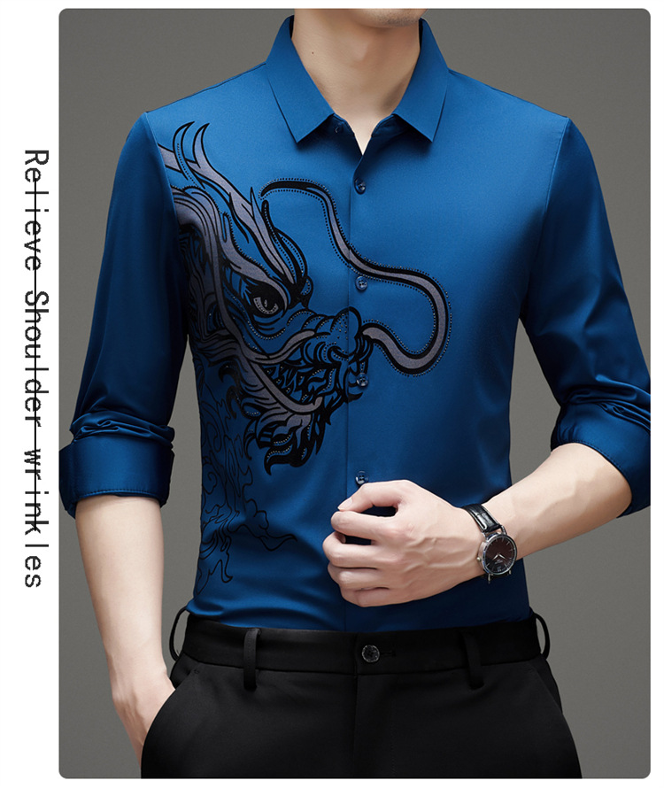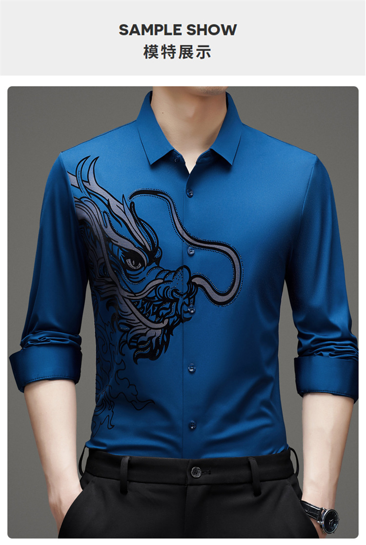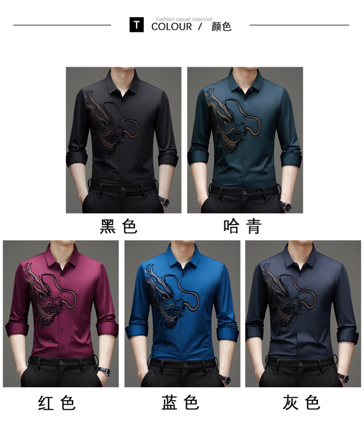 2024 년 드래곤 봄과 가을 하이 엔드 트렌드없는 긴팔 셔츠 남성 비즈니스 캐주얼 옷깃 폴로 셔츠 남성용 스트레치 셔츠스토어 가기