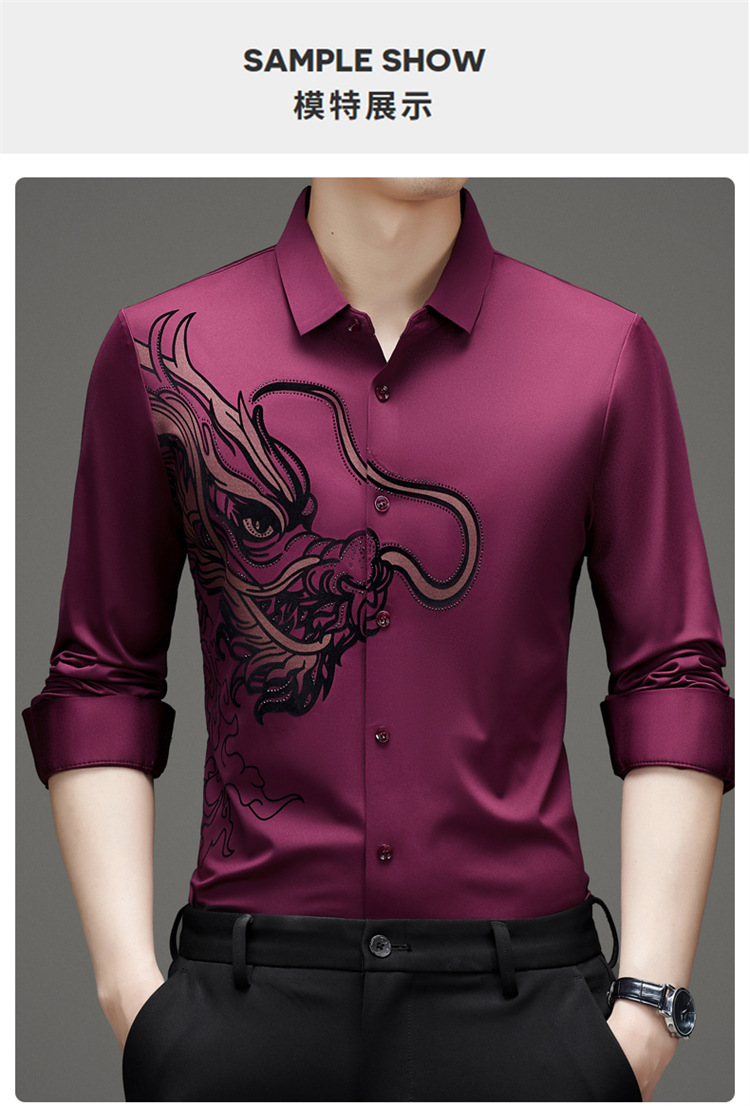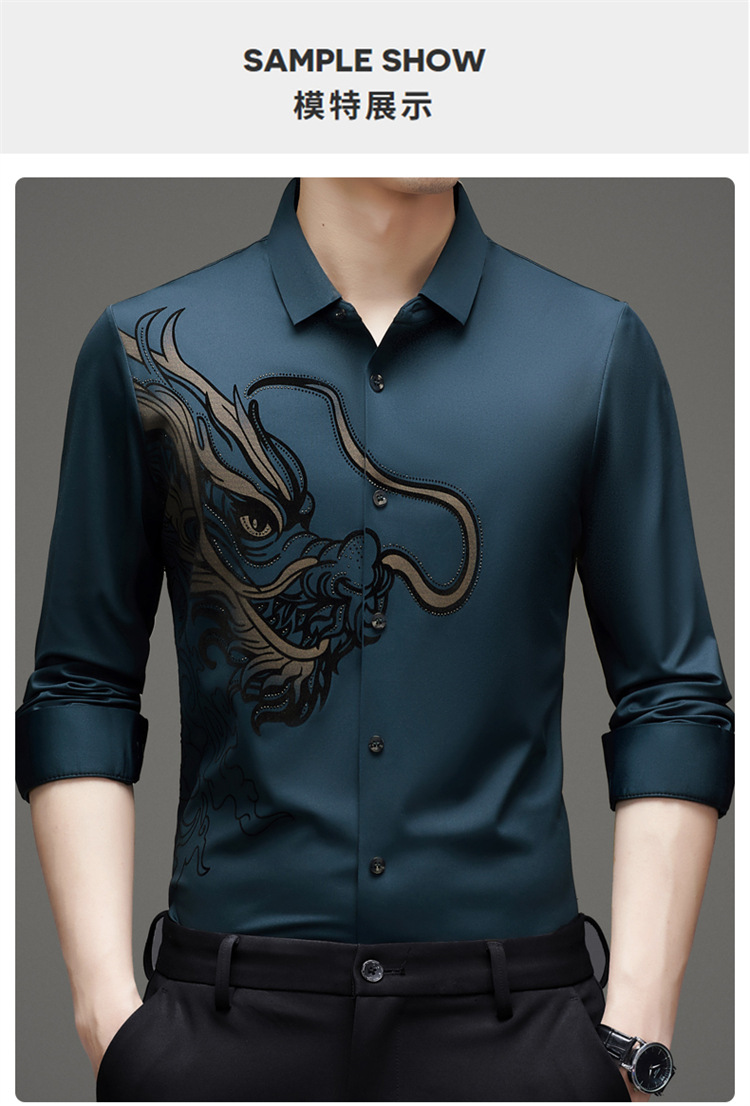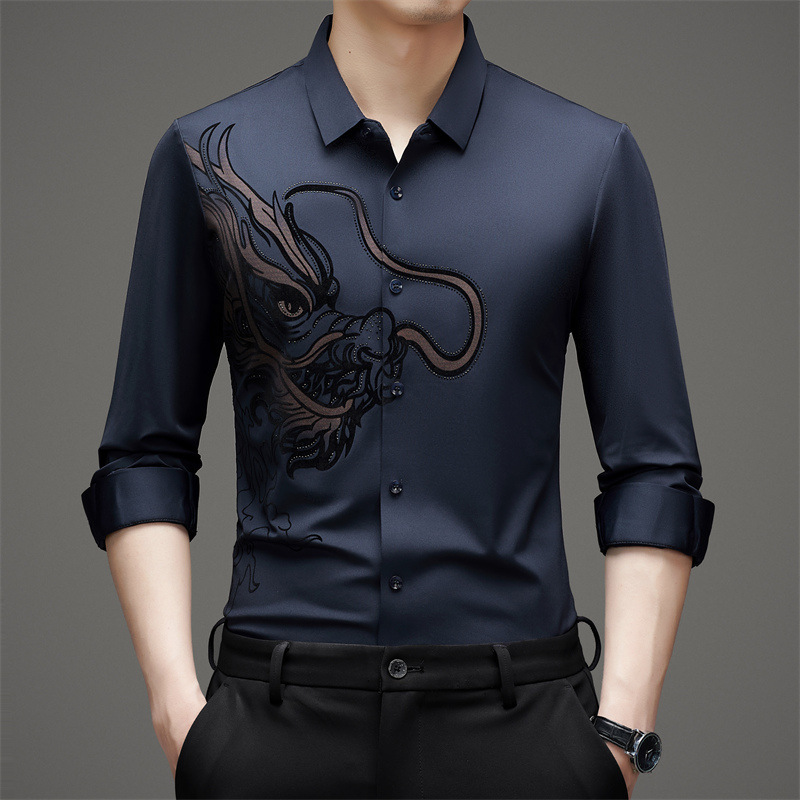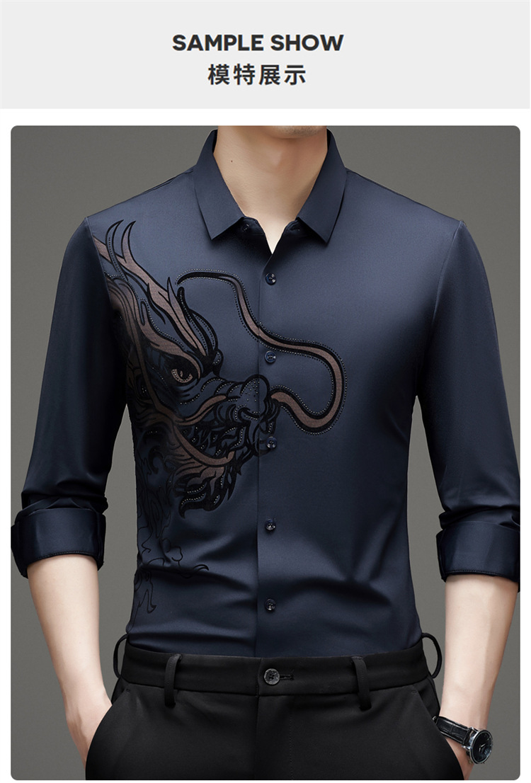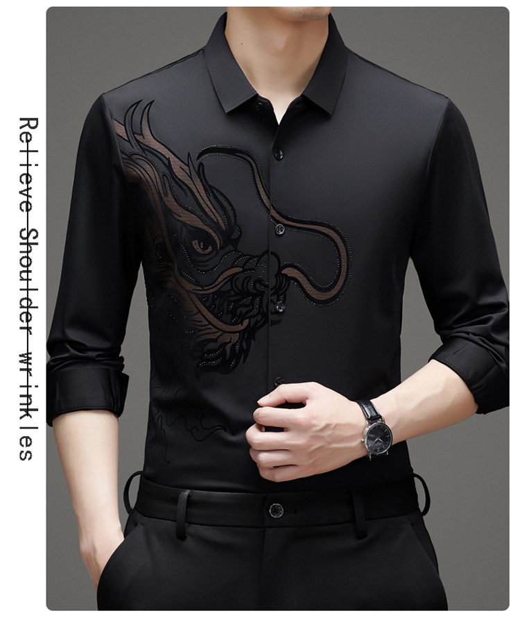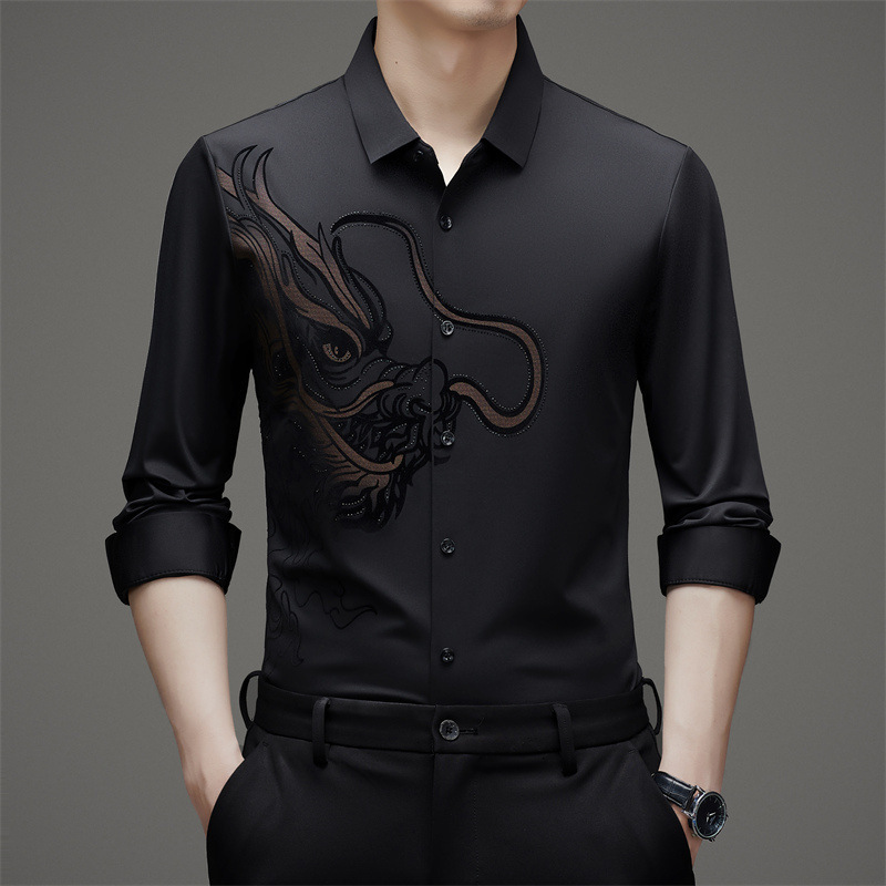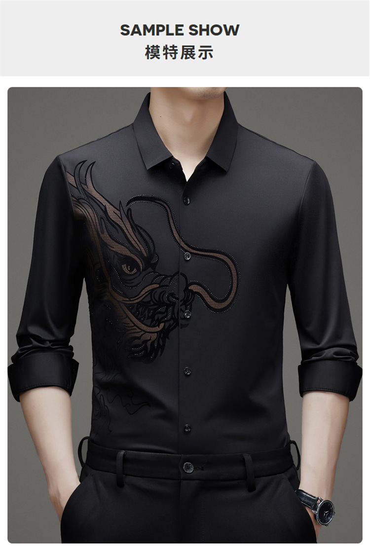 2024 년 드래곤 봄과 가을 하이 엔드 트렌드없는 긴팔 셔츠 남성 비즈니스 캐주얼 옷깃 폴로 셔츠 남성용 스트레치 셔츠