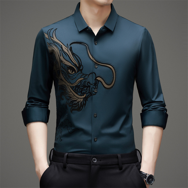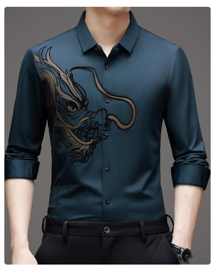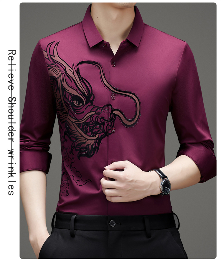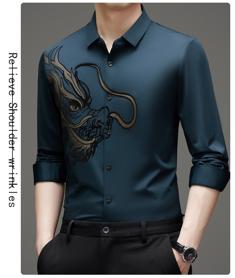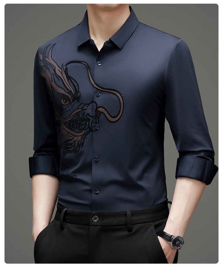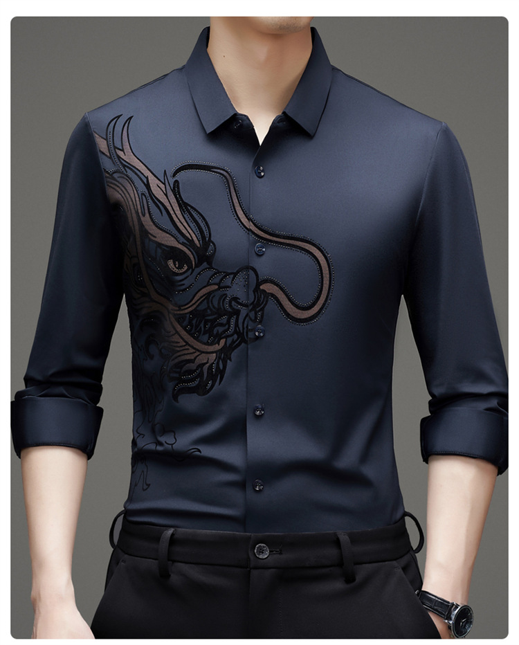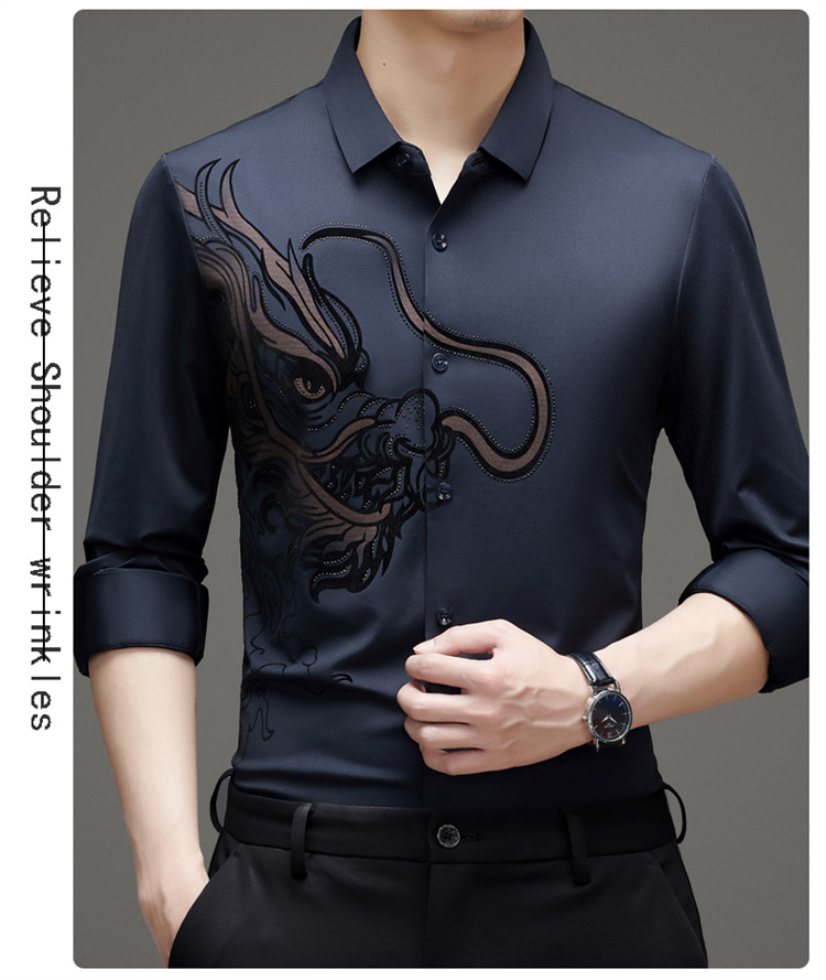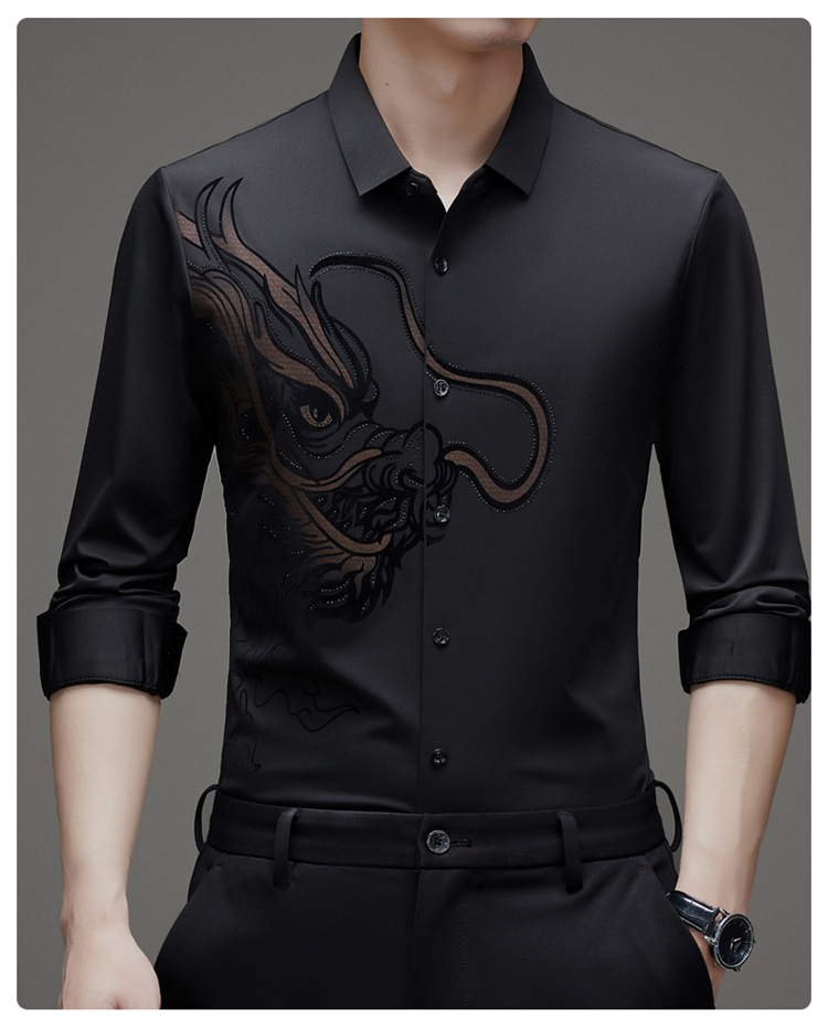 2024 년 드래곤 봄과 가을 하이 엔드 트렌드없는 긴팔 셔츠 남성 비즈니스 캐주얼 옷깃 폴로 셔츠 남성용 스트레치 셔츠