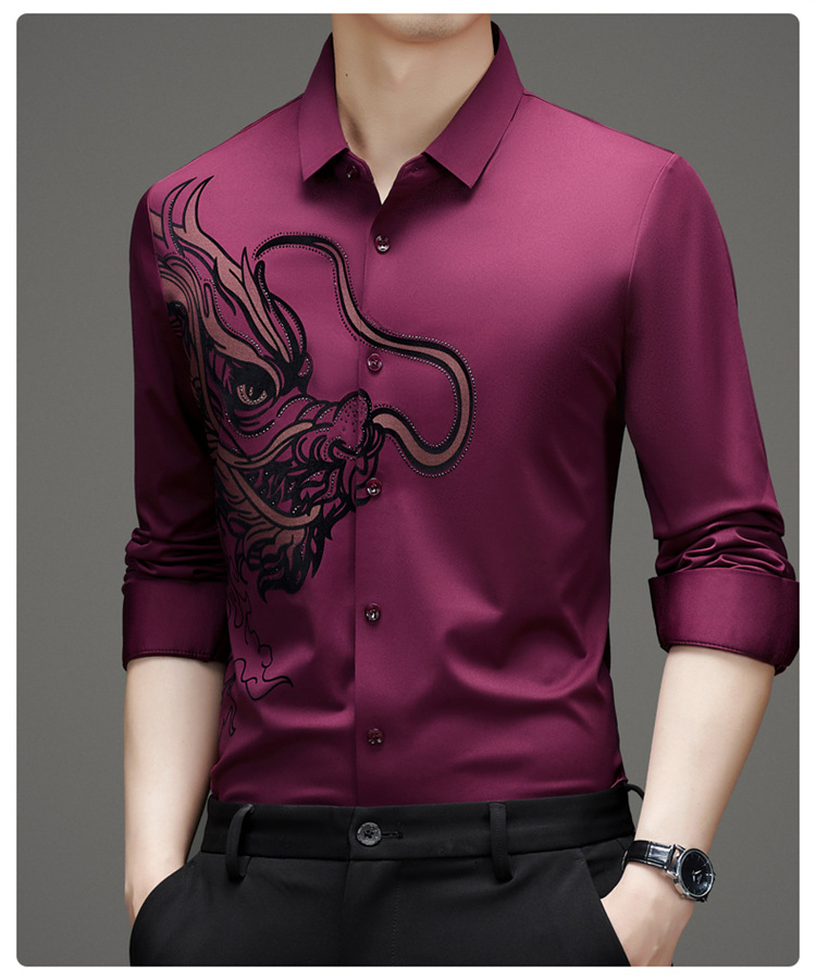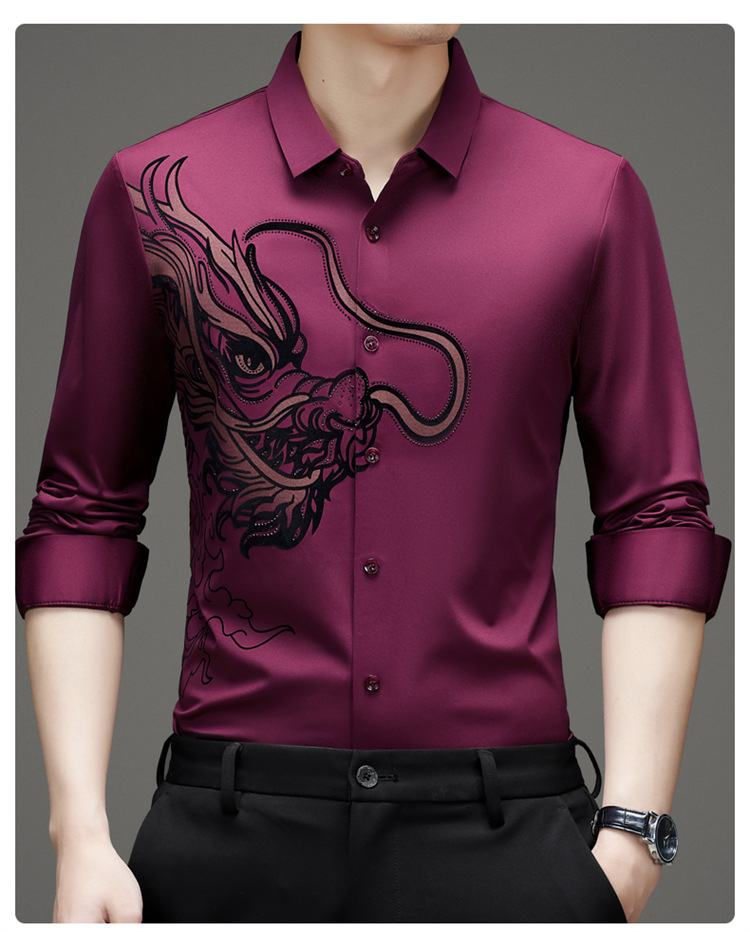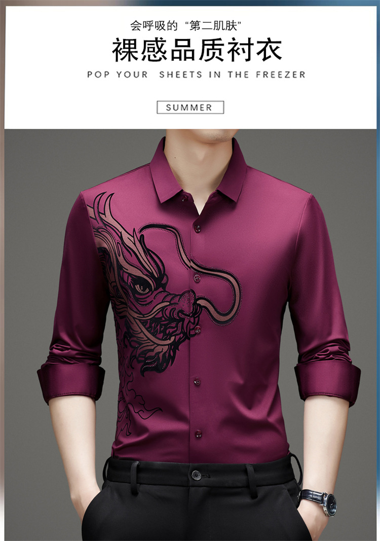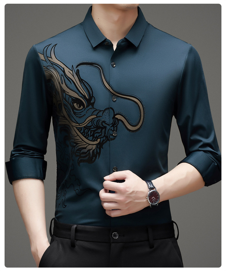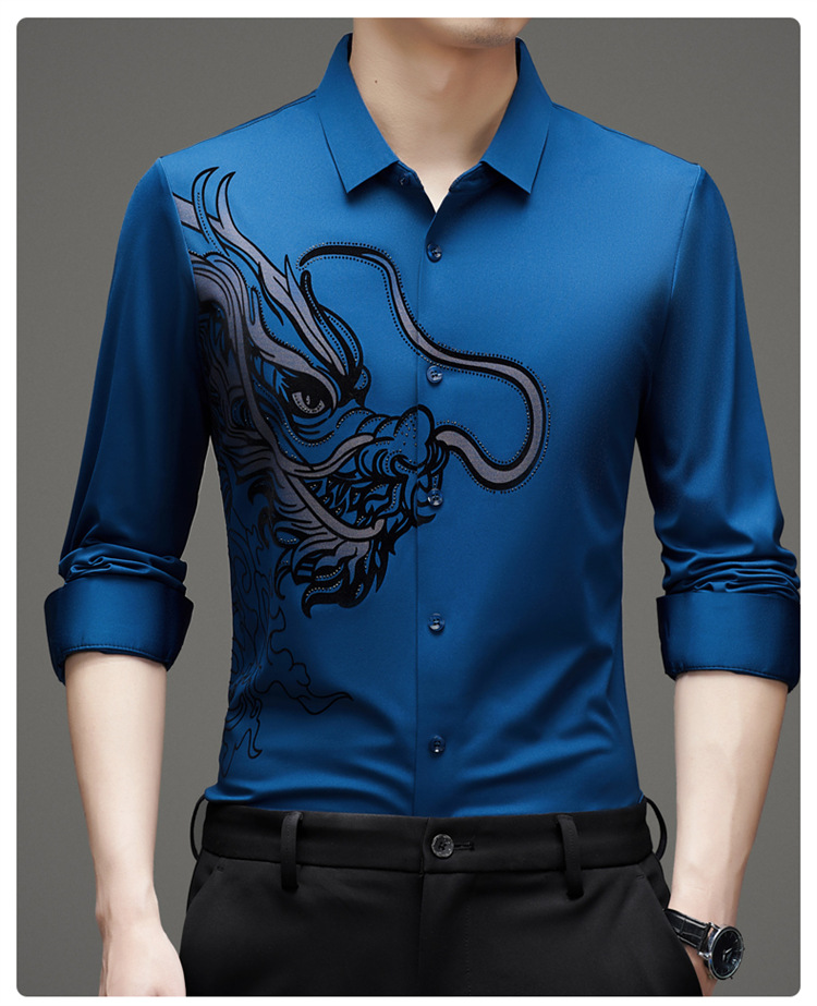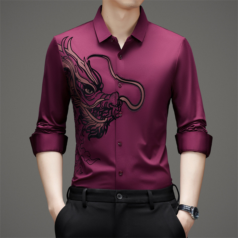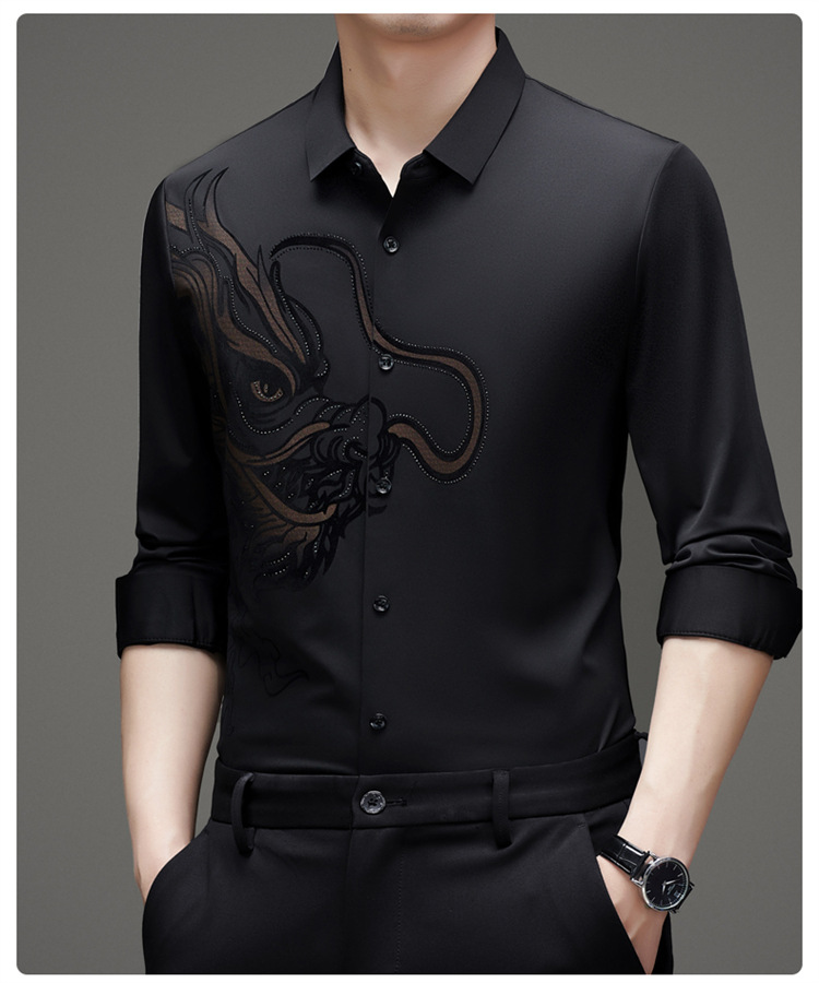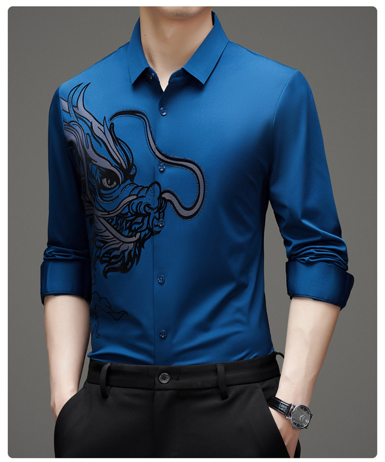 2024 년 드래곤 봄과 가을 하이 엔드 트렌드없는 긴팔 셔츠 남성 비즈니스 캐주얼 옷깃 폴로 셔츠 남성용 스트레치 셔츠