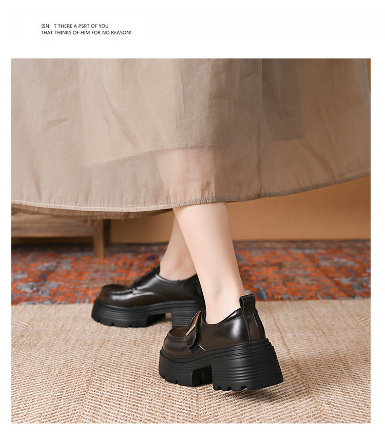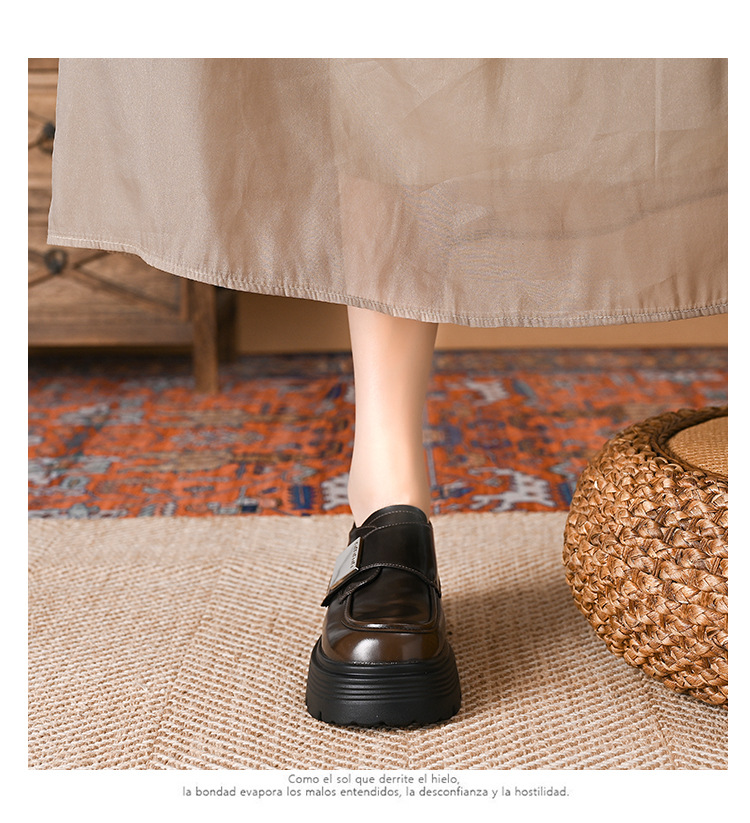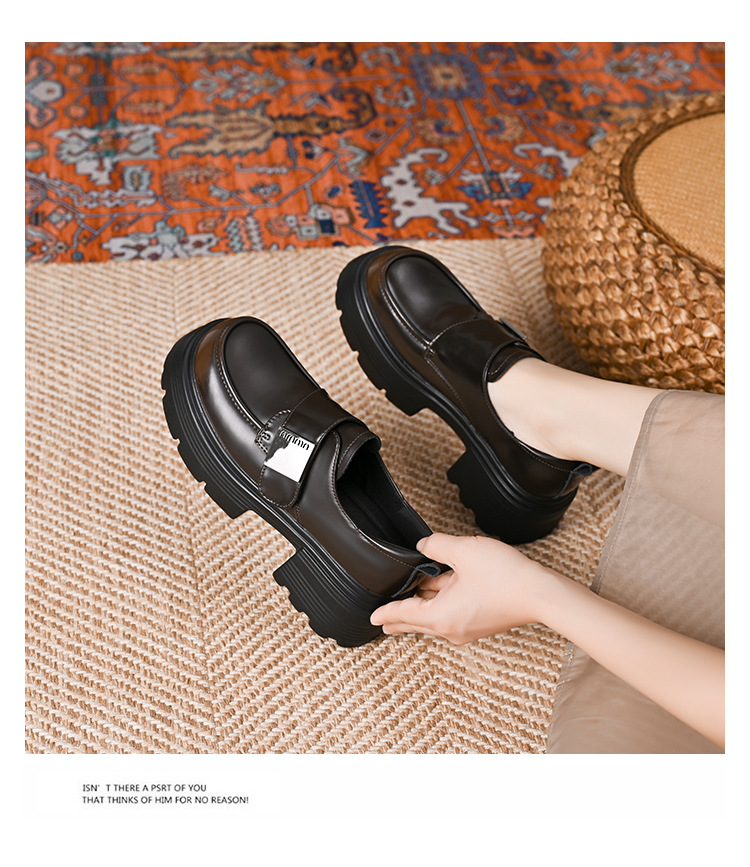 여성용 천연 가죽 작은 가죽 신발 2024 가을 겨울 여성 신발 고무 폼 밑창 단화 부드러운 밑창 슬립온 로퍼 유럽 및 미국 스타일스토어 가기