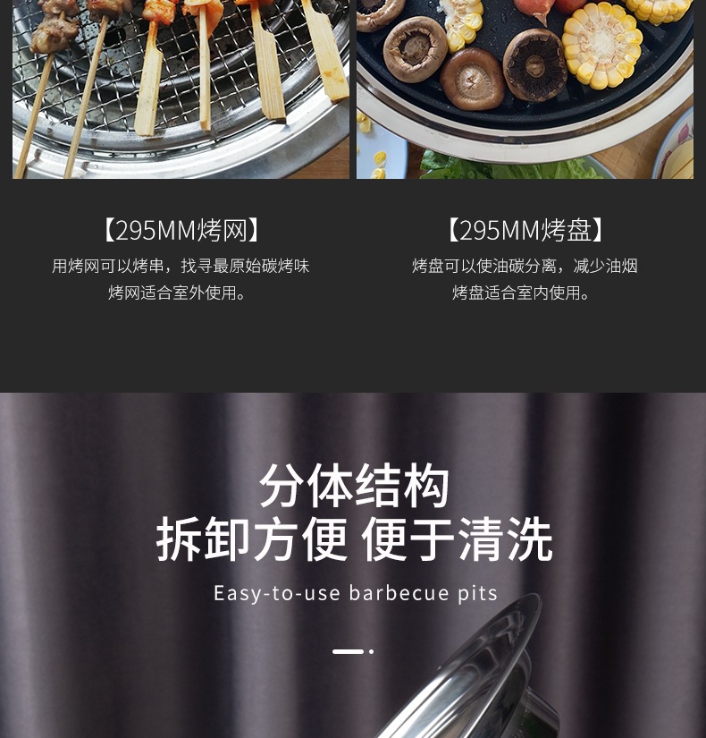 공장 직접 숯 야외 한국 스테인리스 바베큐 그릴 한국 상업 숯 Qiqihar