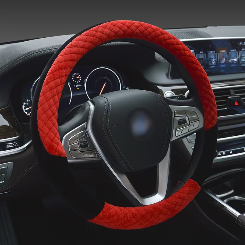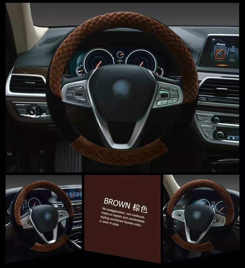겨울 뜨거운 봉제 스티어링 휠 커버 자동차 스티어링 휠 손 재봉 핸들 세트 자동차 내부 공급 머리카락의 세대스토어 가기