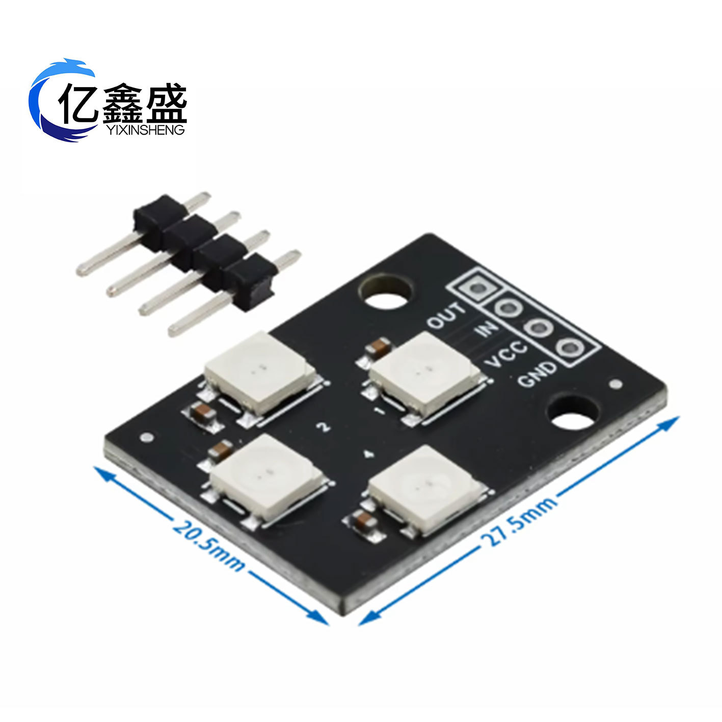 • 5050高亮LED,内置控制芯片,仅需1个IO口即可控制多个LED
