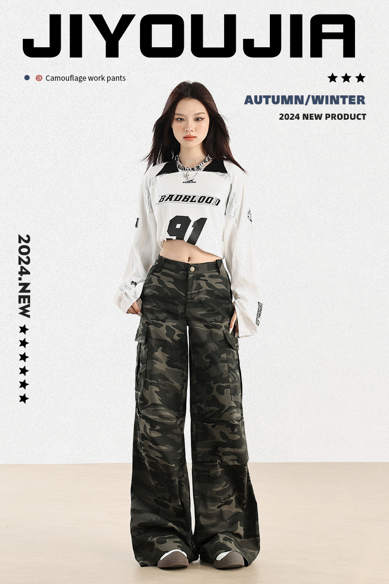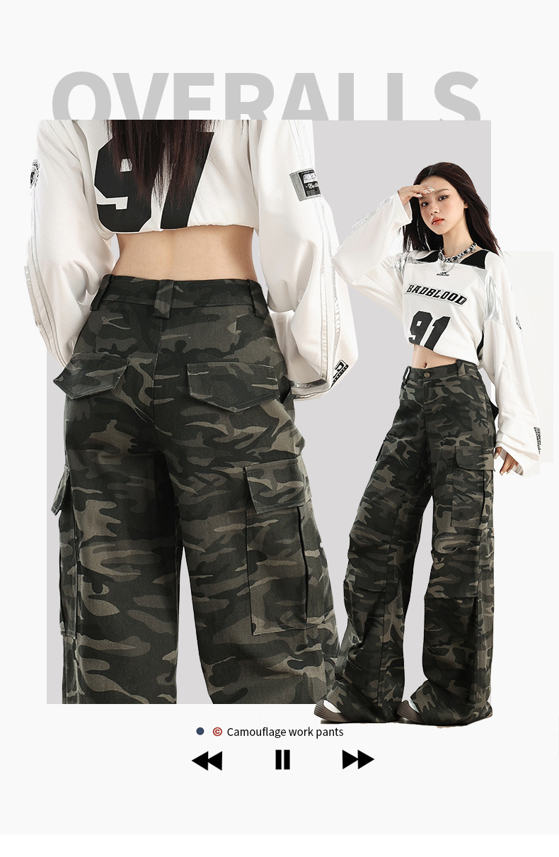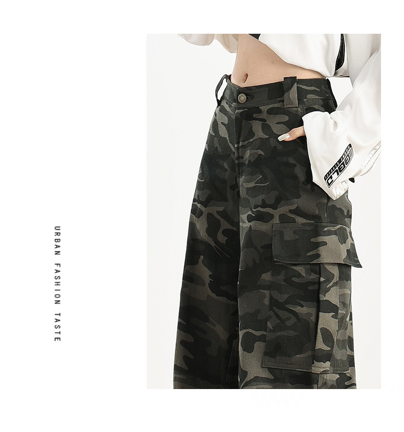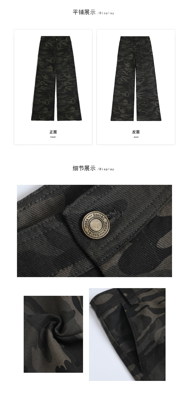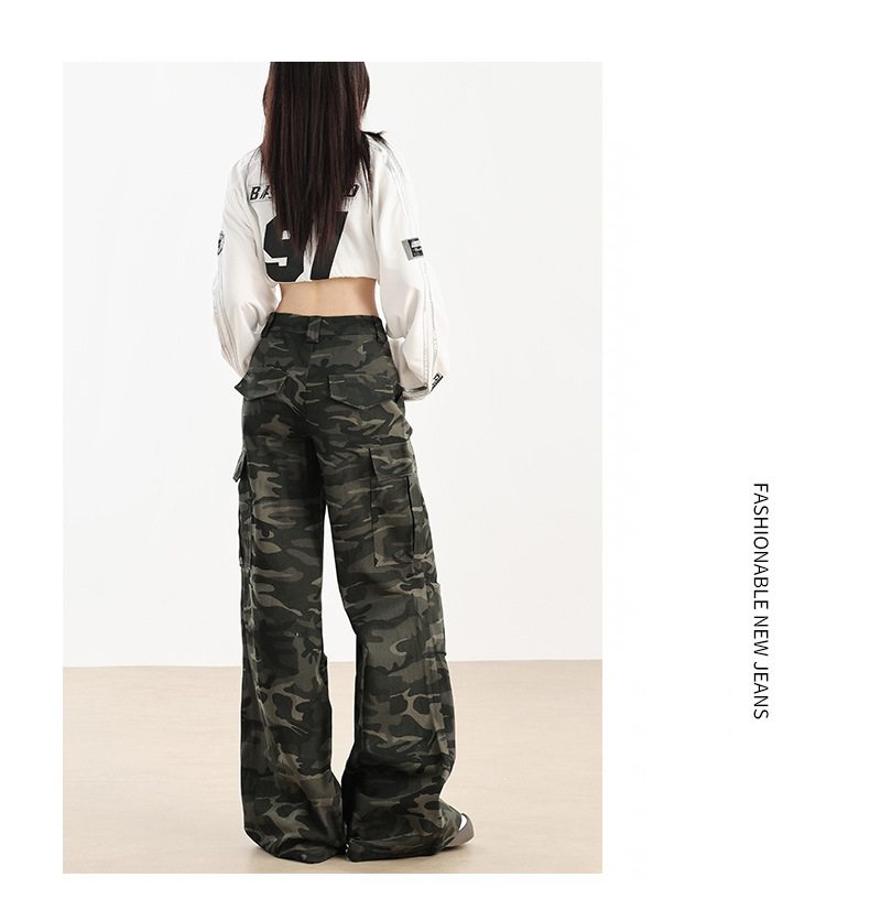 2024년 가을 여성을 위한 아메리칸 핫걸 카모플라주 작업복 청바지 새로운 루즈하고 슬림한 복고풍 하이웨이스트 부츠컷 팬츠스토어 가기