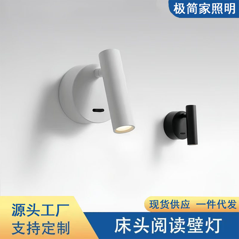 현대적인 미니멀리스트 침대 옆 벽등 LED 표면 장착 호텔 독서 스포트라이트 회전형 침실 벽등 벽걸이형스토어 가기