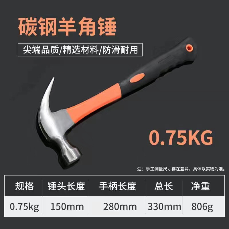 공장 직판 플라스틱 코팅 손잡이 양각 망치, 목공 건설 현장용 못빼기 망치, 섬유섬유 짧은 손잡이 벽깨기용 솔리드 스틸 망치스토어 가기