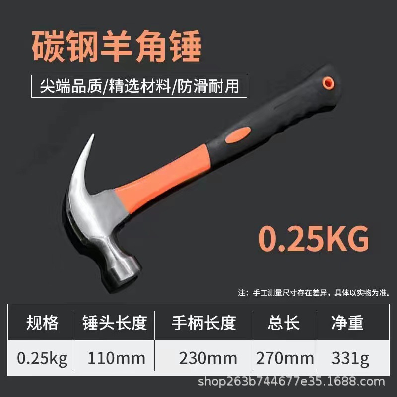 공장 직판 플라스틱 코팅 손잡이 양각 망치, 목공 건설 현장용 못빼기 망치, 섬유섬유 짧은 손잡이 벽깨기용 솔리드 스틸 망치
