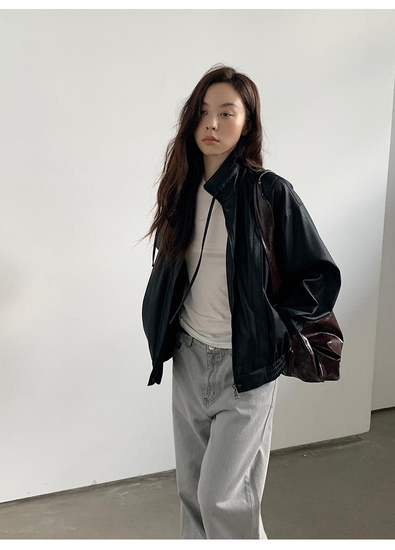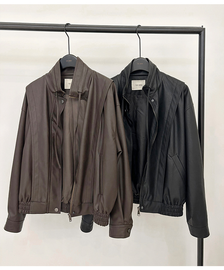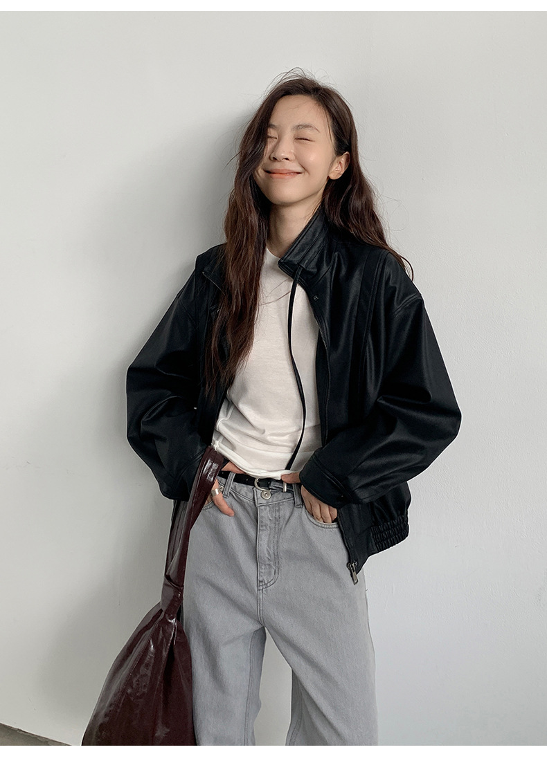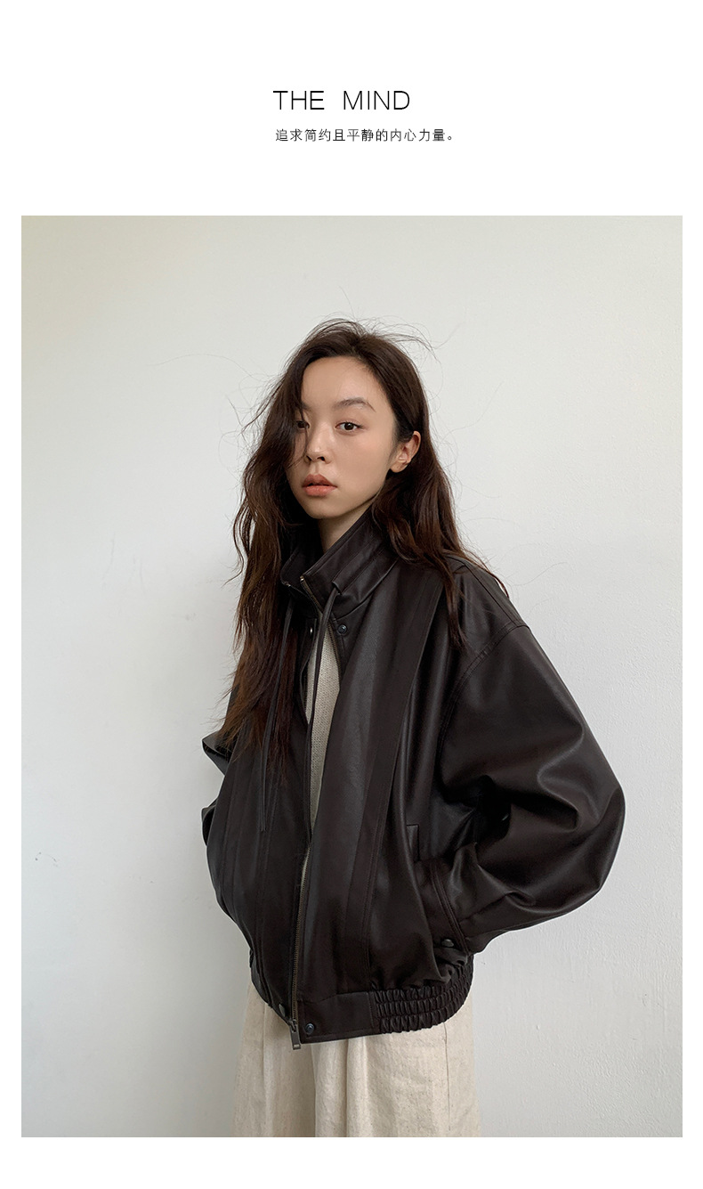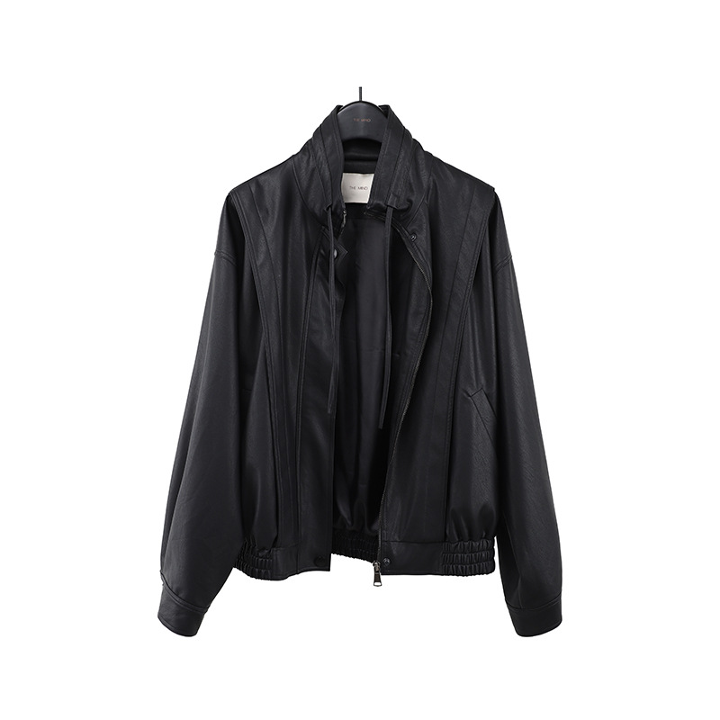 THE MIND 오토바이 레트로 가죽 자켓 여성 2026 봄 신상품 한국 스타일 짧은 가죽 자켓 A9138스토어 가기