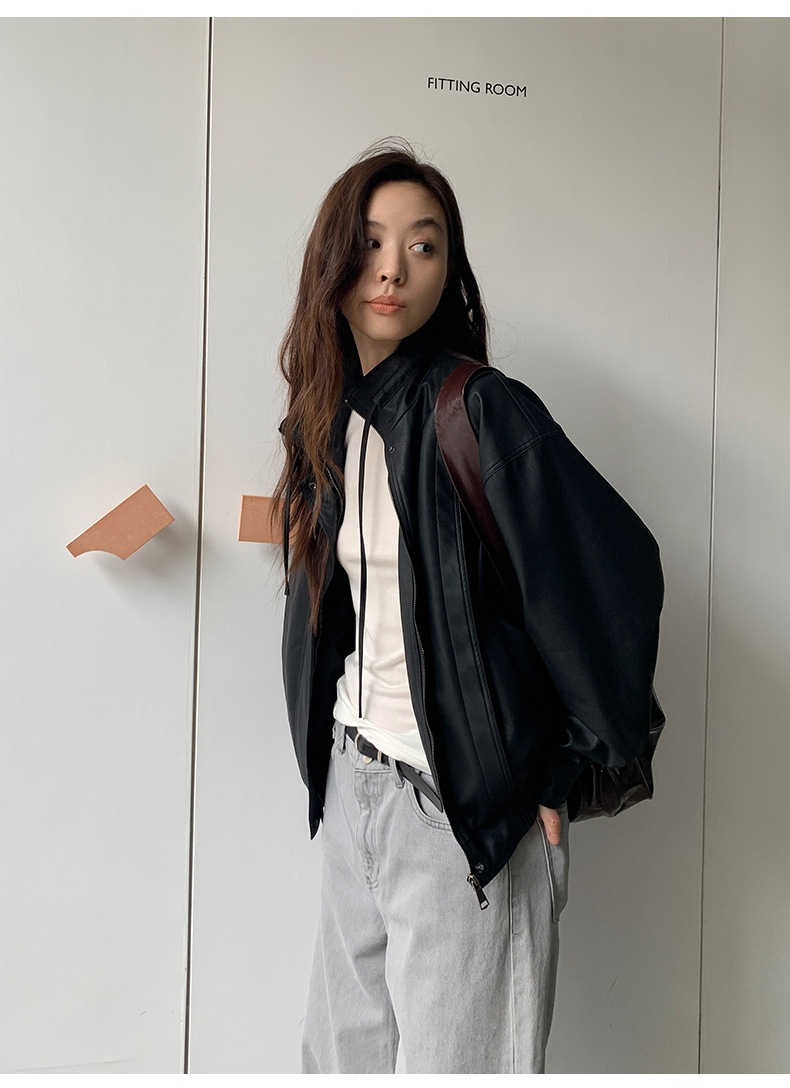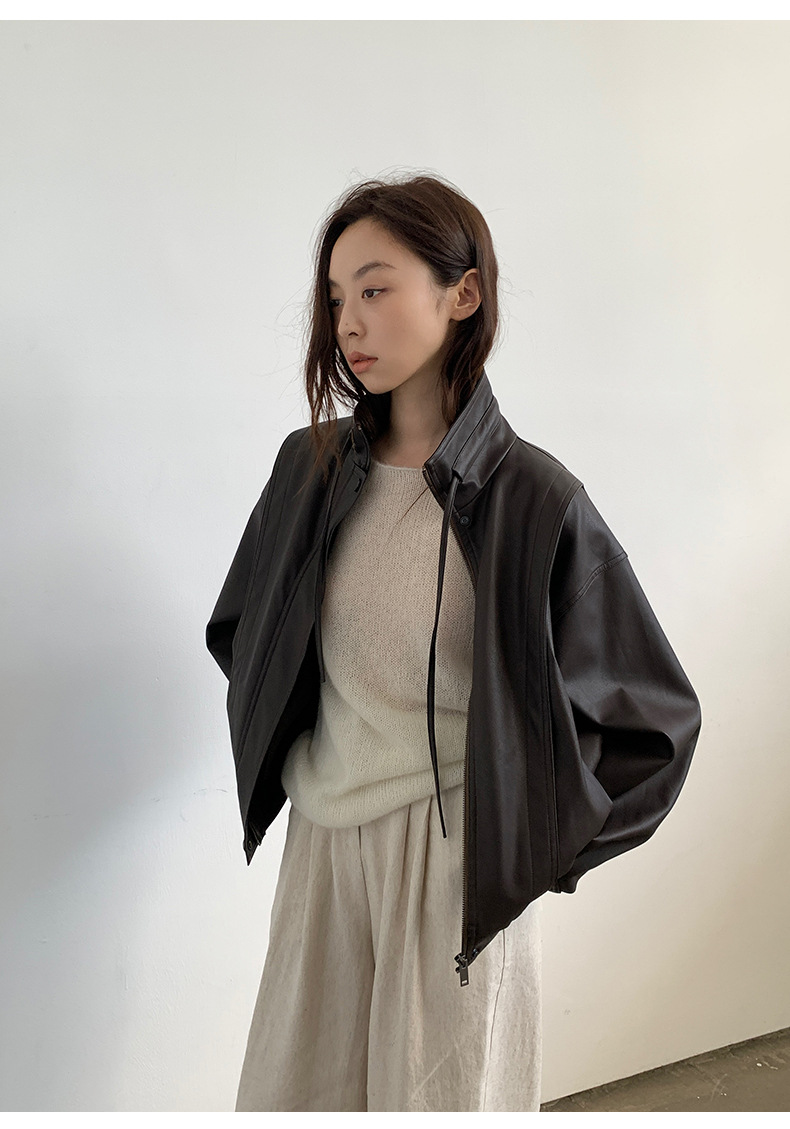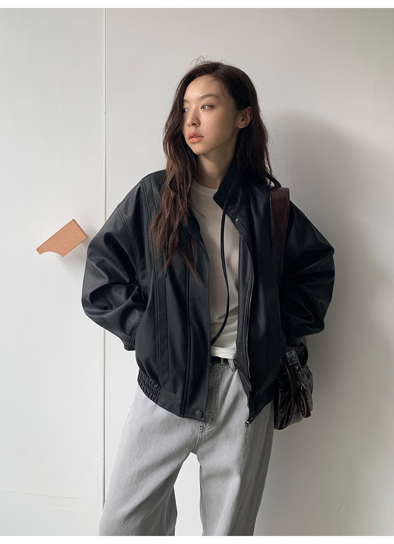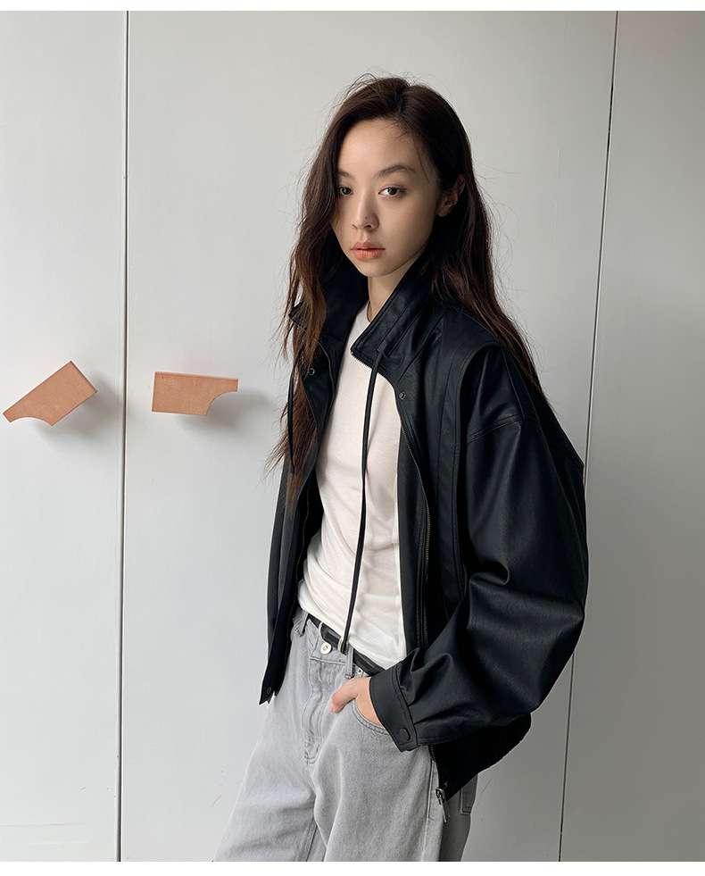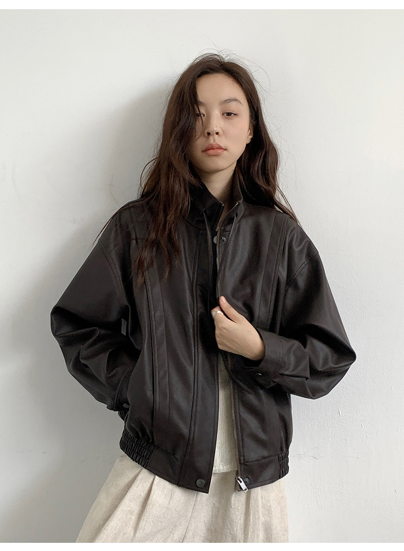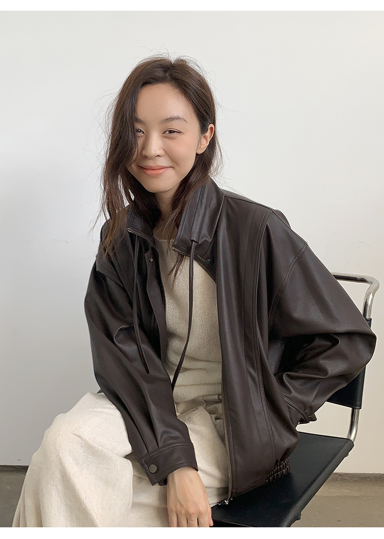 THE MIND 오토바이 레트로 가죽 자켓 여성 2026 봄 신상품 한국 스타일 짧은 가죽 자켓 A9138스토어 가기