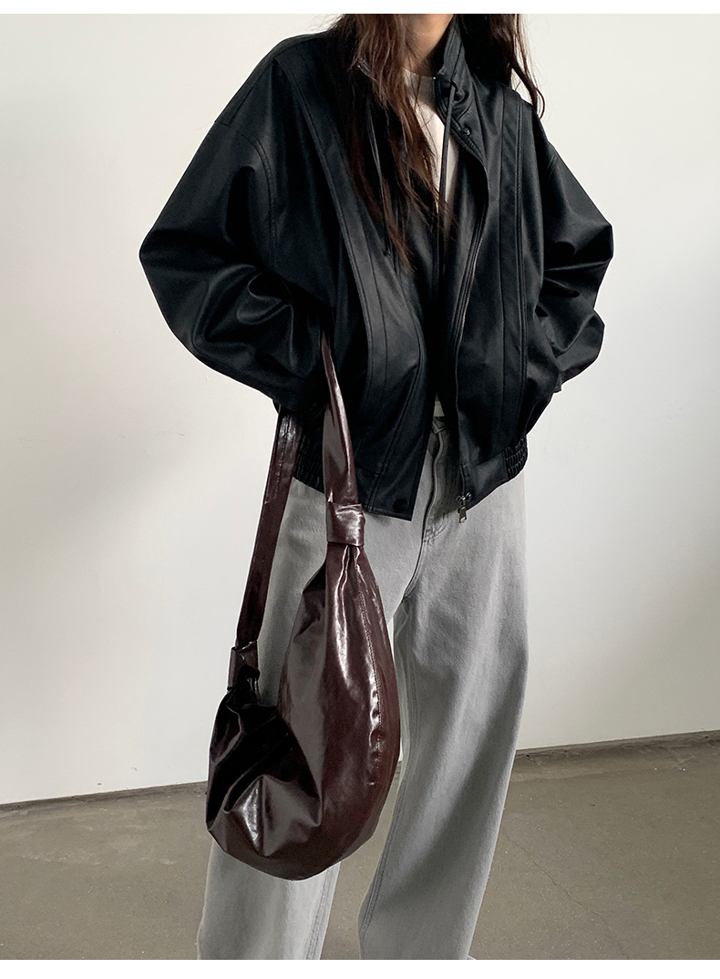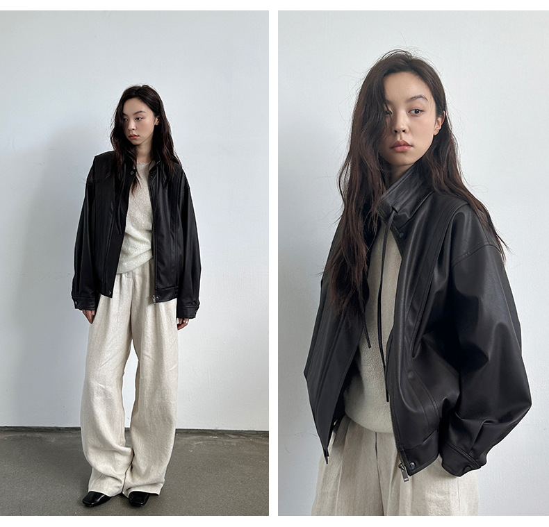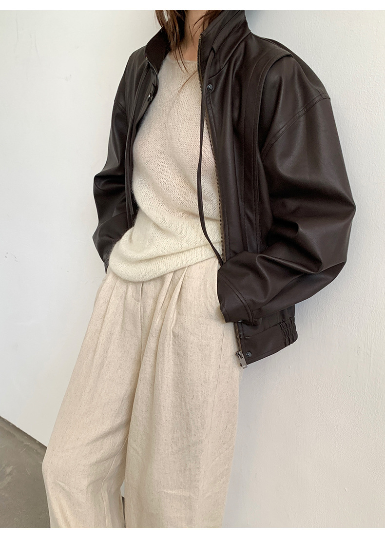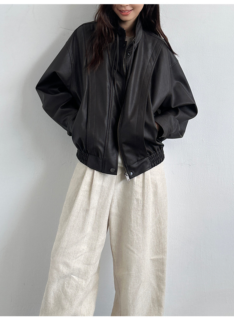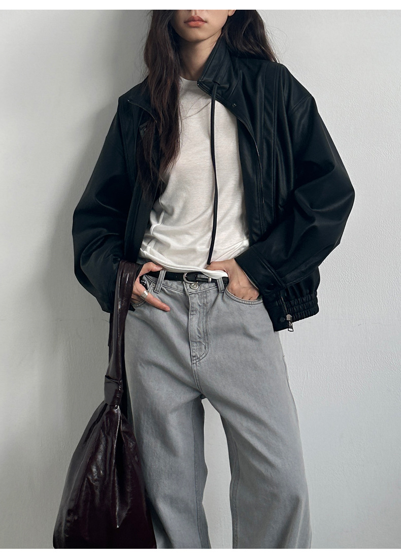 THE MIND 오토바이 레트로 가죽 자켓 여성 2026 봄 신상품 한국 스타일 짧은 가죽 자켓 A9138스토어 가기