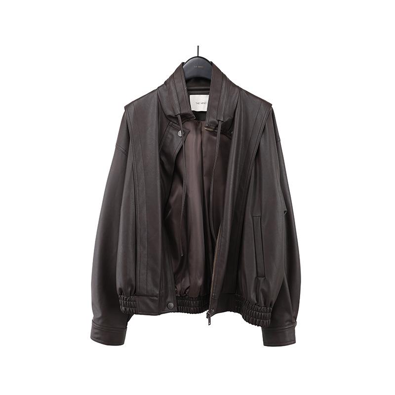 THE MIND 오토바이 레트로 가죽 자켓 여성 2026 봄 신상품 한국 스타일 짧은 가죽 자켓 A9138