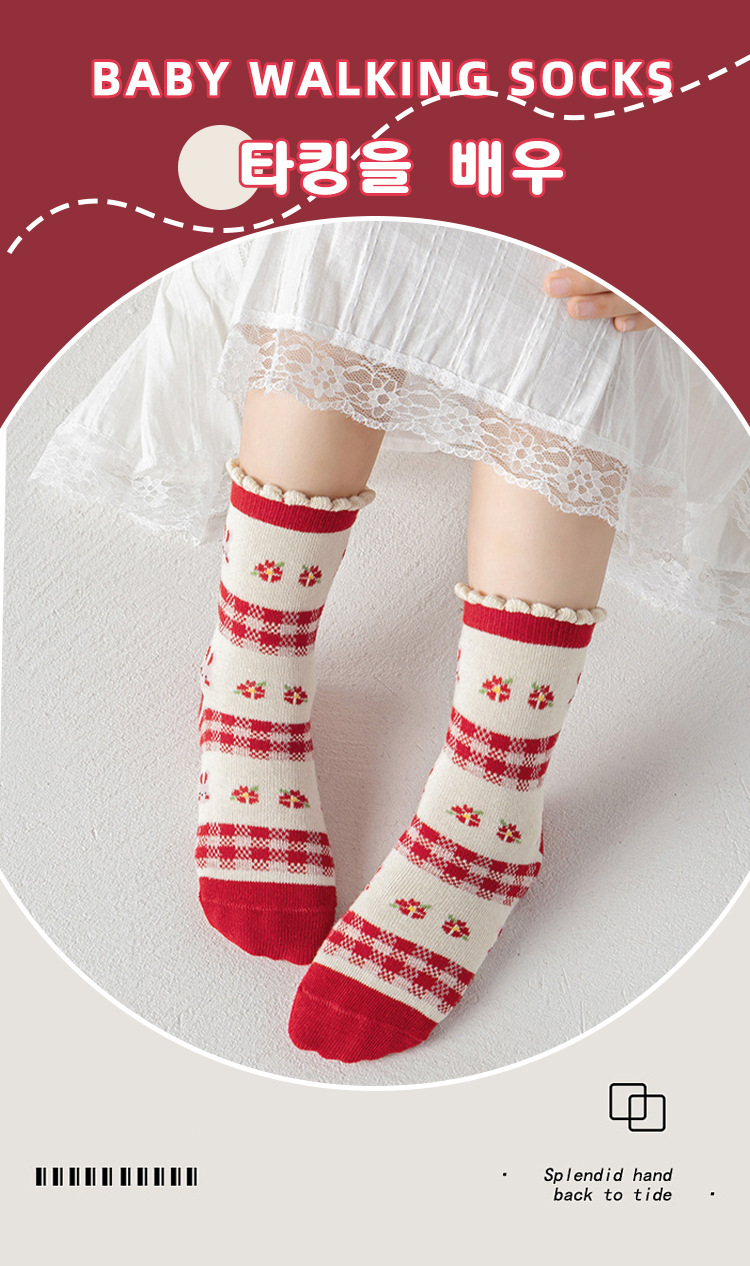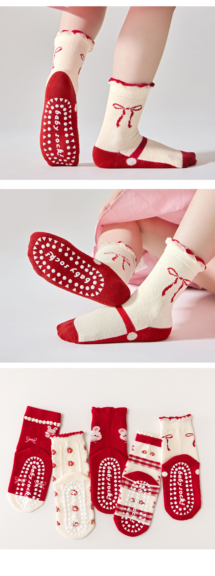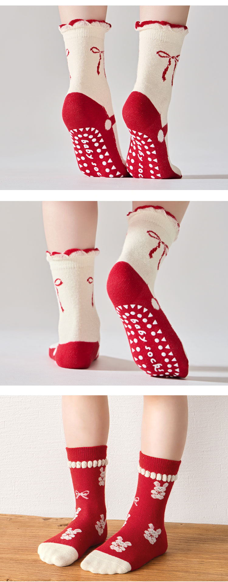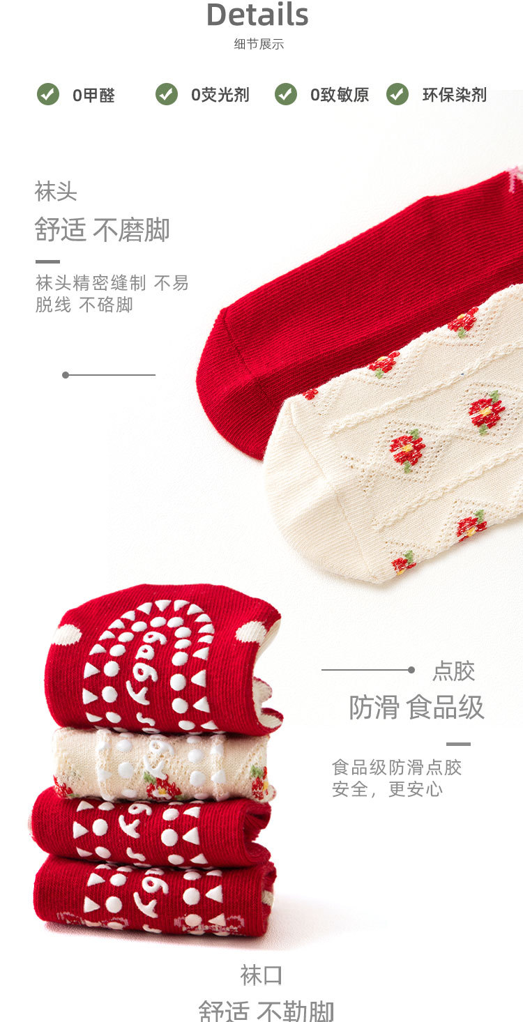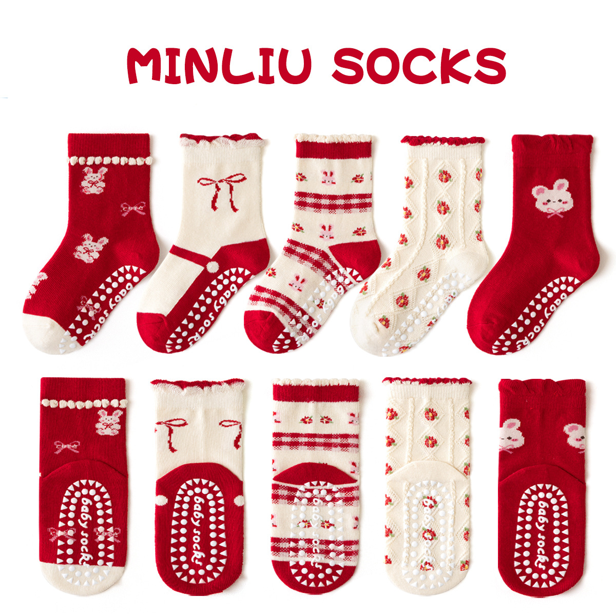 어린이 바닥 양말 미끄럼 방지 소녀 양말 봄과 가을 접착제 빨간 아기 면 양말 중간 튜브 양말 만화 어린이 양말