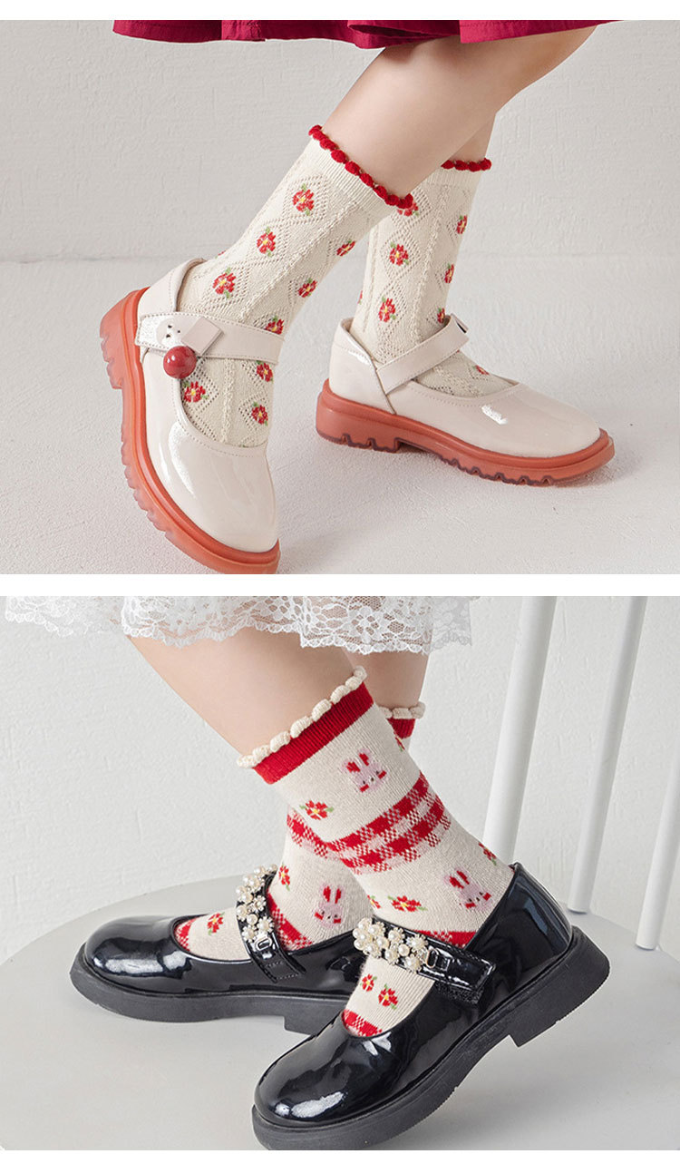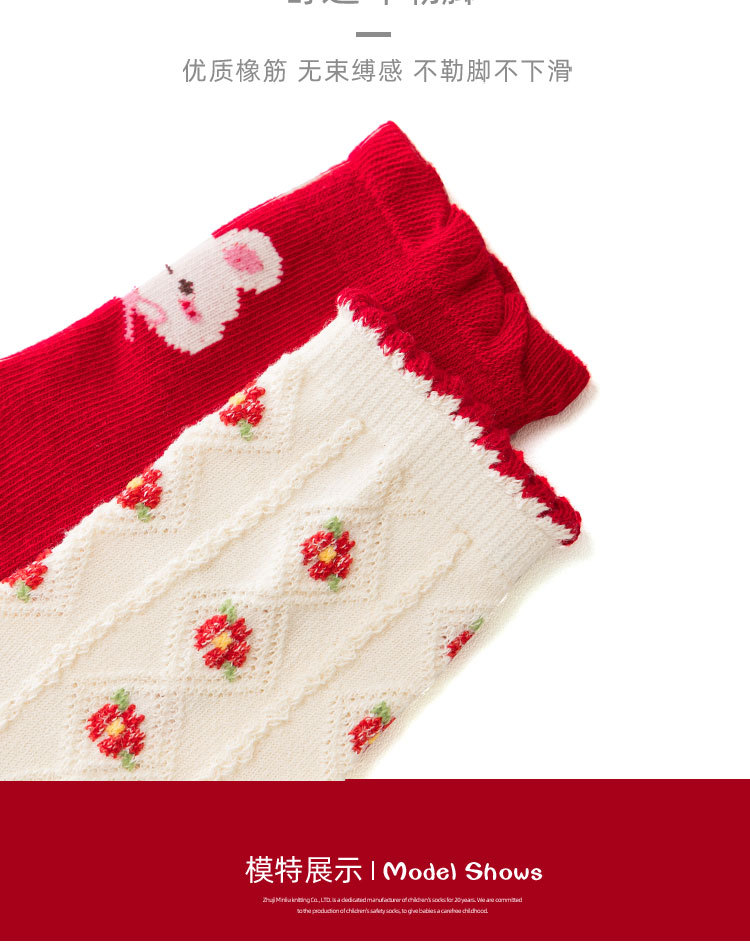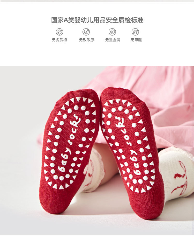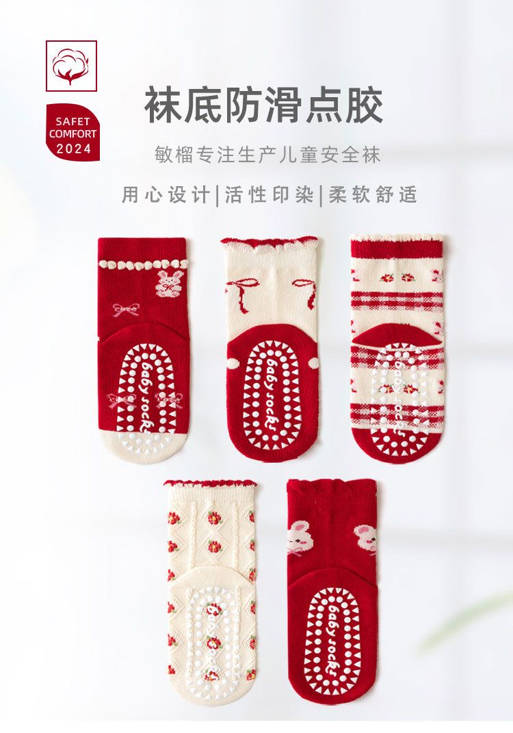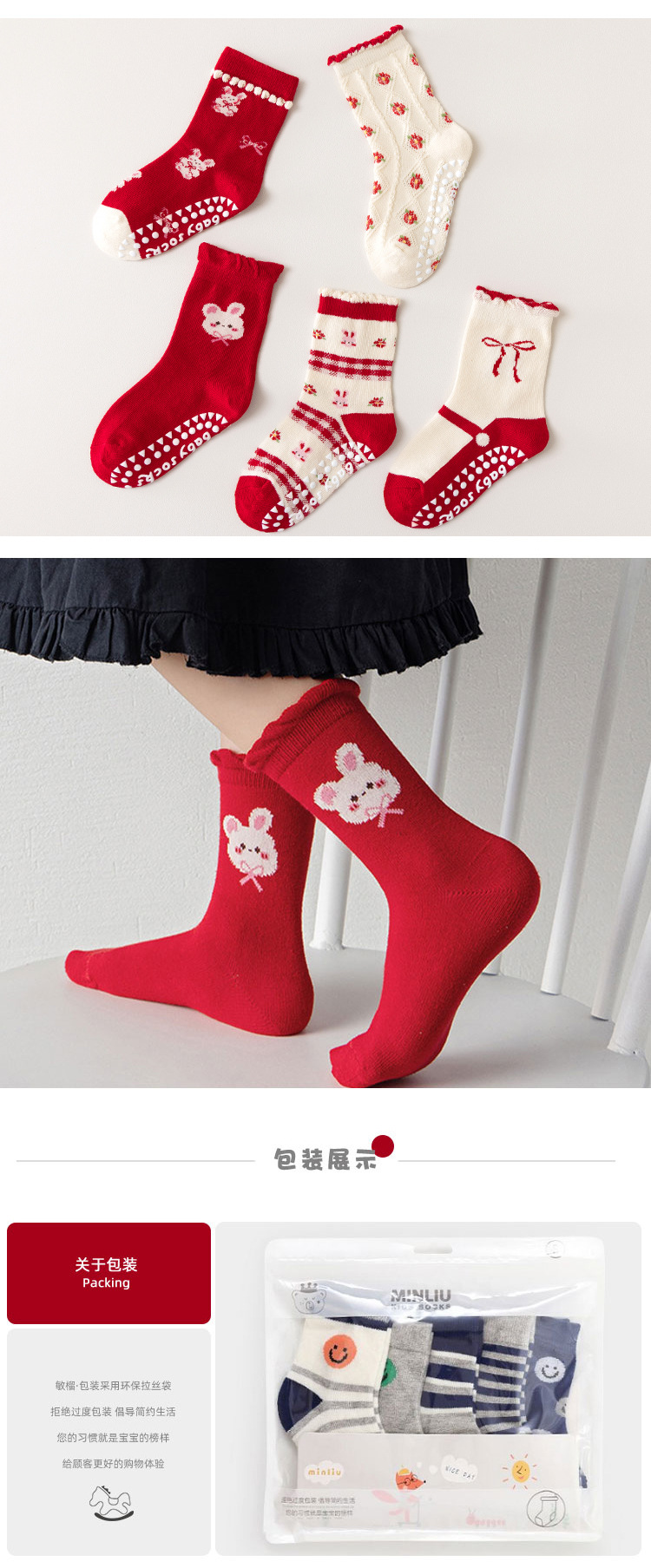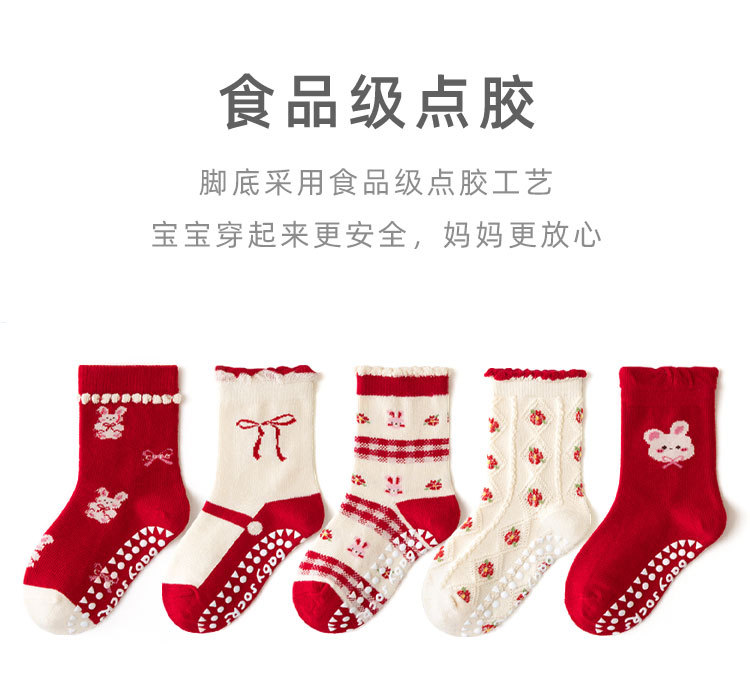 어린이 바닥 양말 미끄럼 방지 소녀 양말 봄과 가을 접착제 빨간 아기 면 양말 중간 튜브 양말 만화 어린이 양말