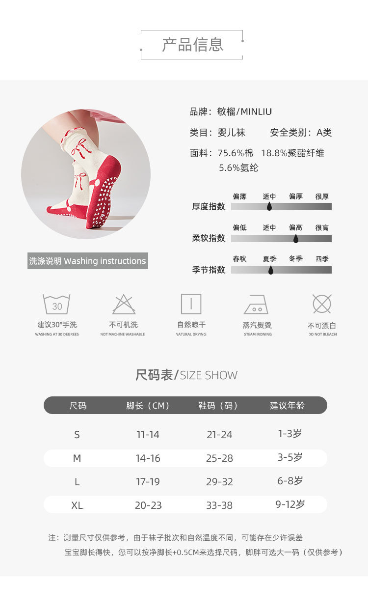 어린이 바닥 양말 미끄럼 방지 소녀 양말 봄과 가을 접착제 빨간 아기 면 양말 중간 튜브 양말 만화 어린이 양말스토어 가기