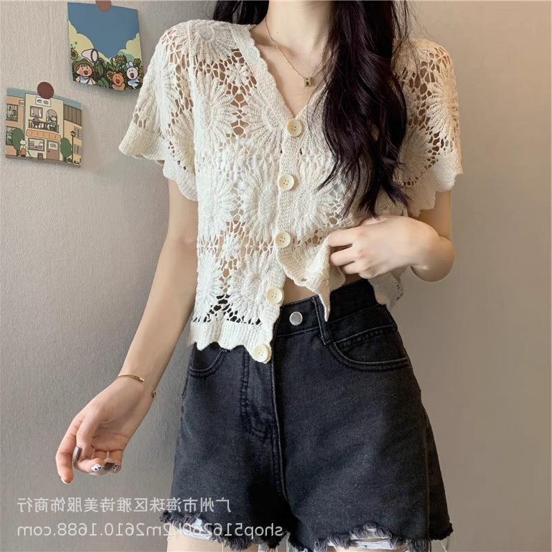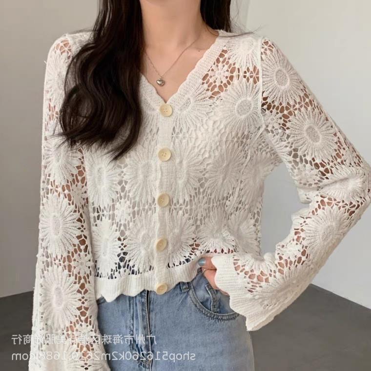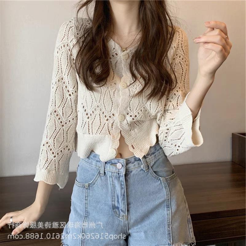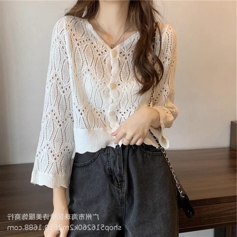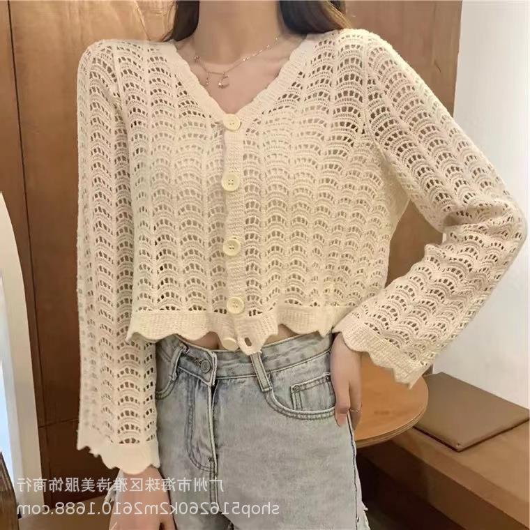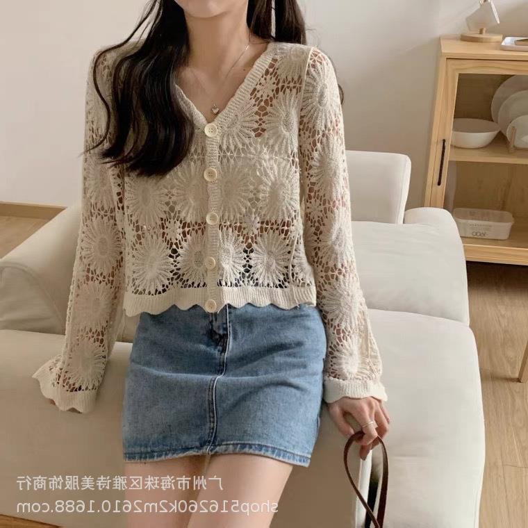 새로운 가을과 겨울 스퀘어 칼라 웨스턴 스타일 할로우 니트 카디건 여성용 게으른 스타일 디자인 센스 루즈 올 매치 재킷 트렌디스토어 가기