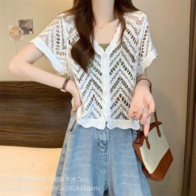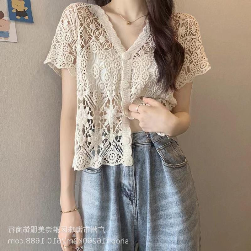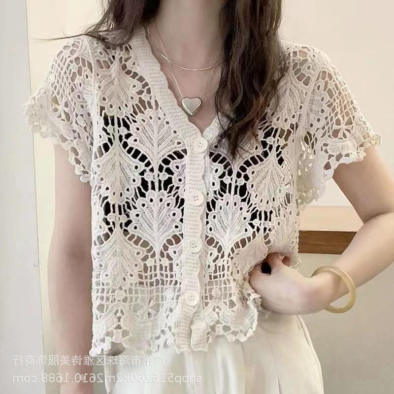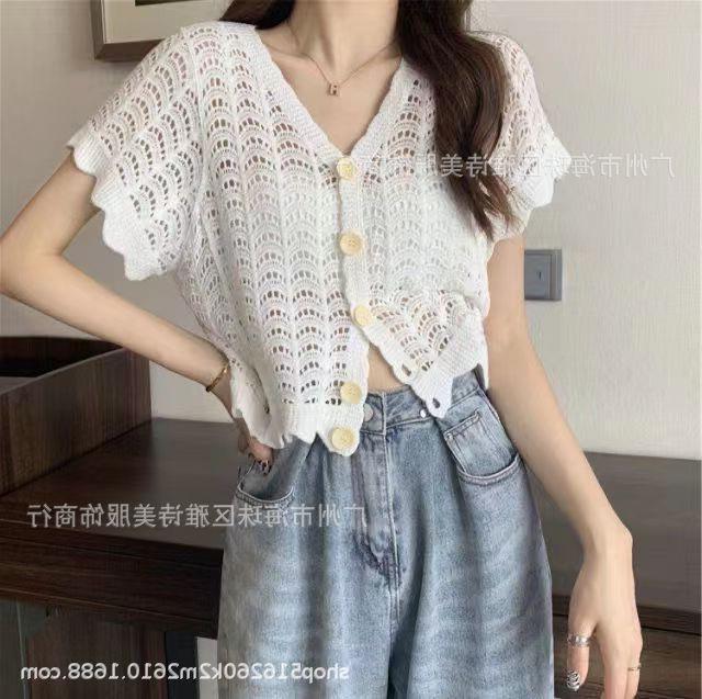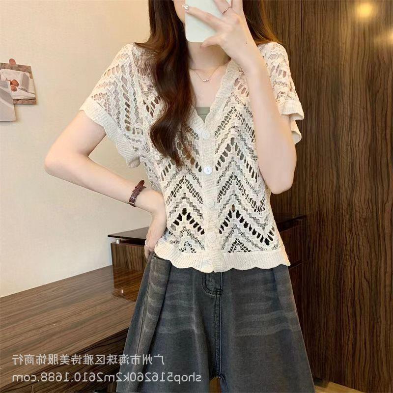 새로운 가을과 겨울 스퀘어 칼라 웨스턴 스타일 할로우 니트 카디건 여성용 게으른 스타일 디자인 센스 루즈 올 매치 재킷 트렌디