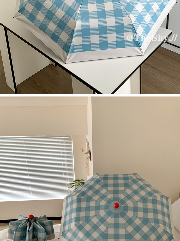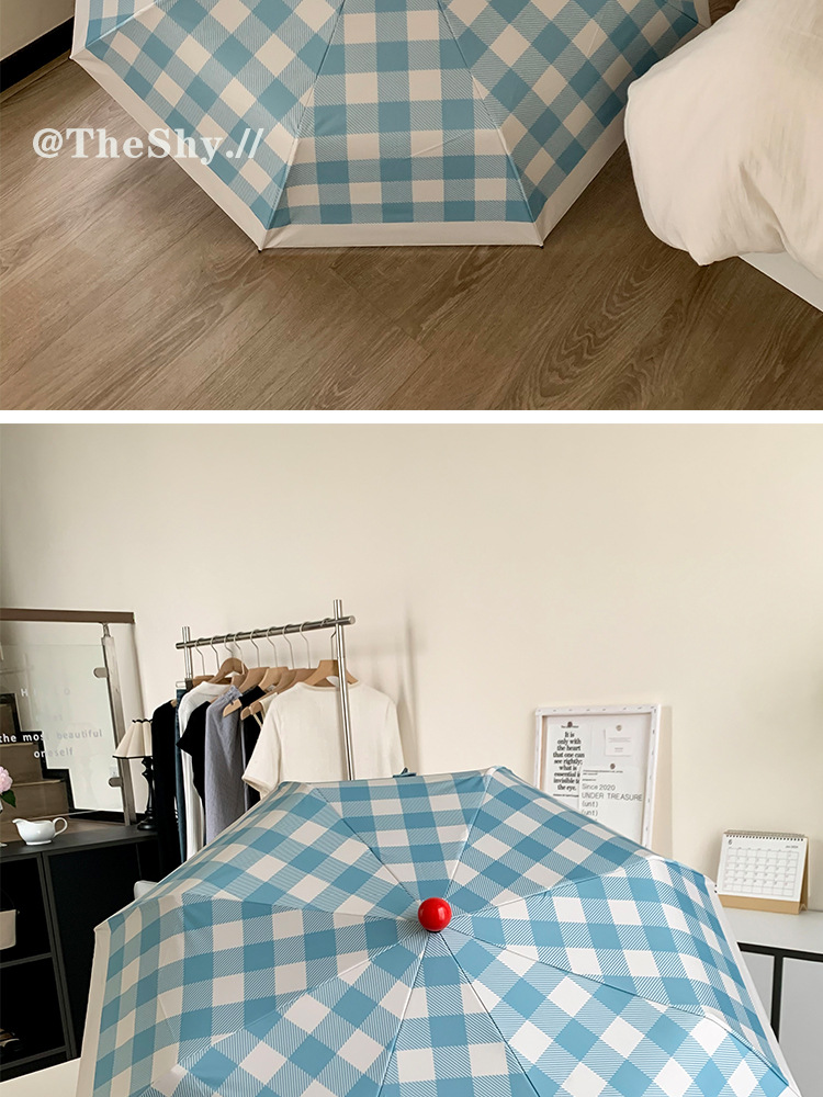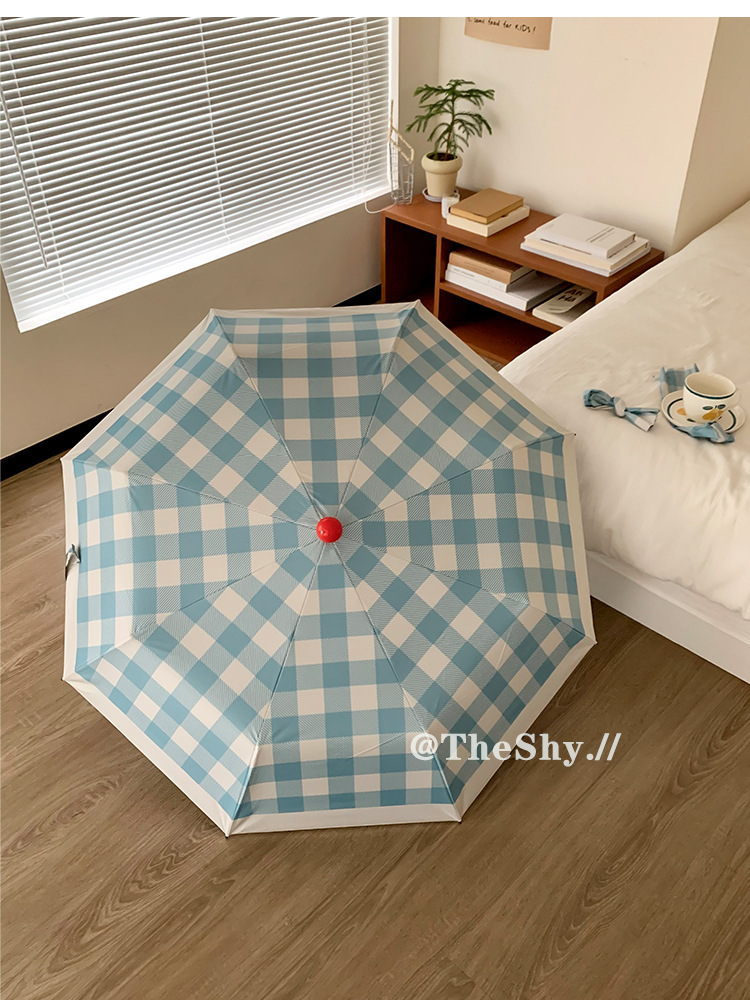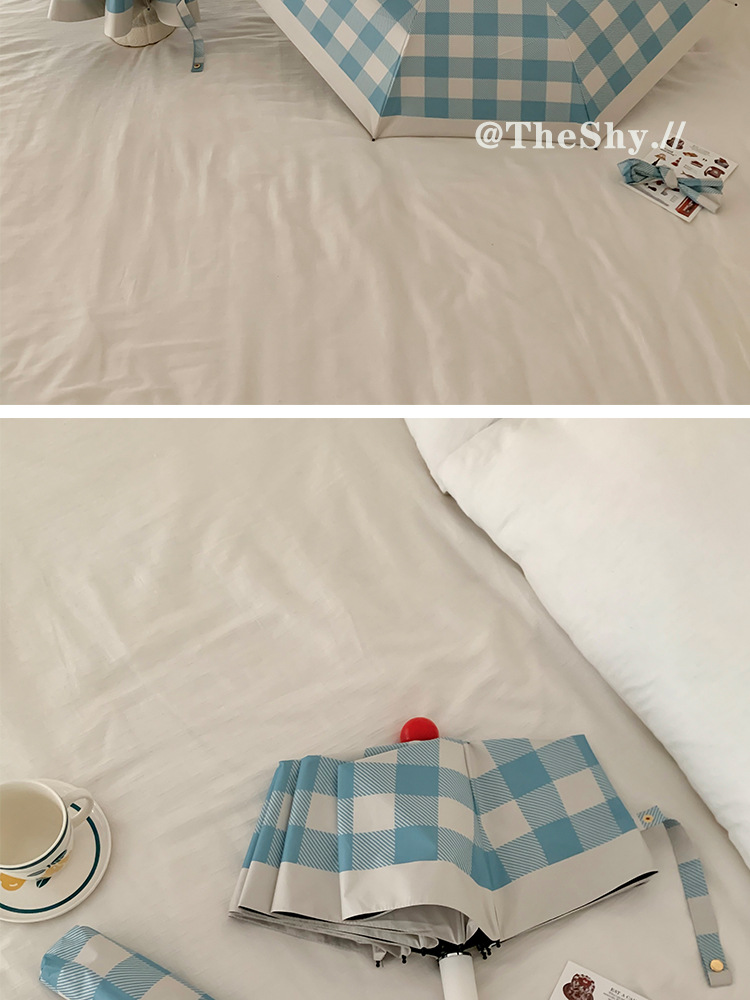 블루 체크 무늬 우산 여성용 Ins 간단한 빨간 코 이중 목적 선 스크린 우산 선 스크린 및 자외선 보호 접는 태양 우산스토어 가기