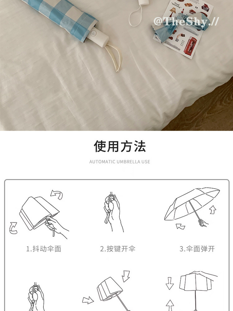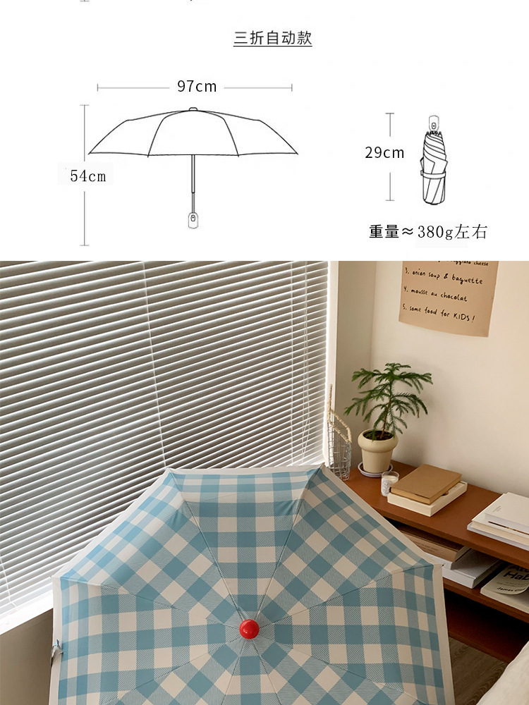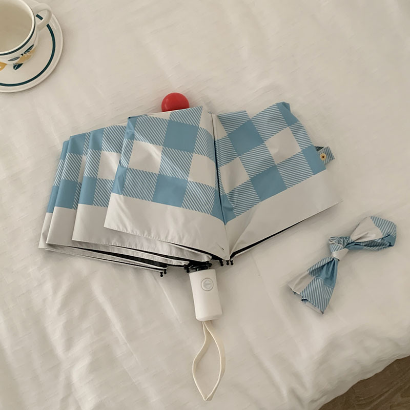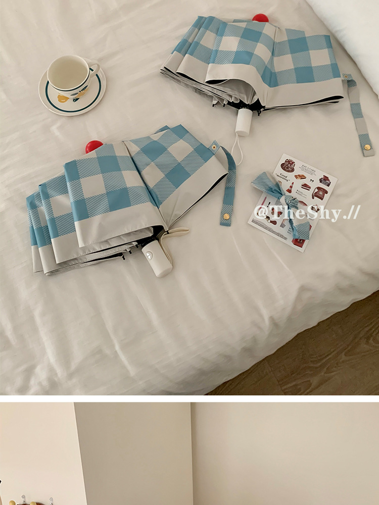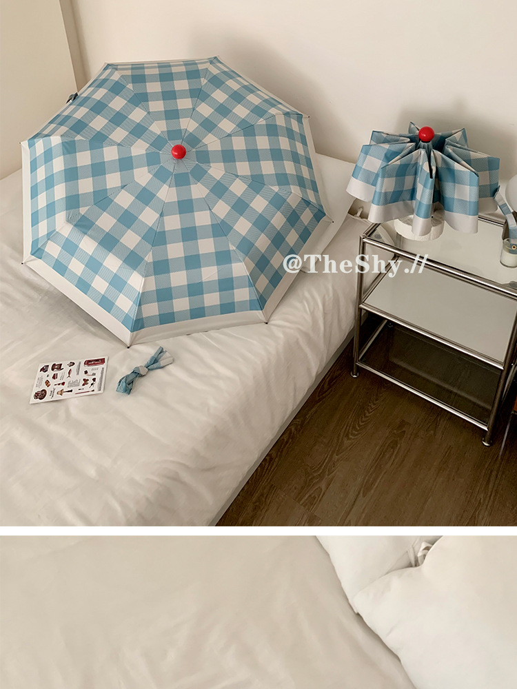 블루 체크 무늬 우산 여성용 Ins 간단한 빨간 코 이중 목적 선 스크린 우산 선 스크린 및 자외선 보호 접는 태양 우산스토어 가기