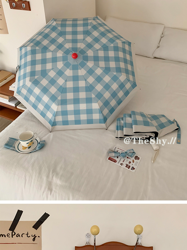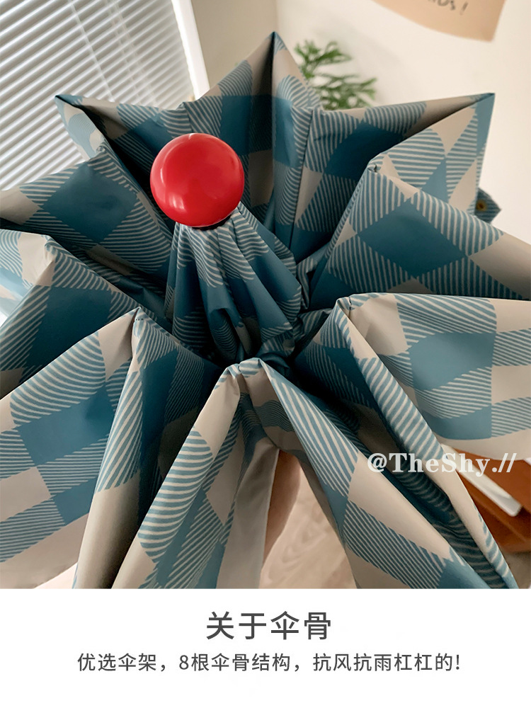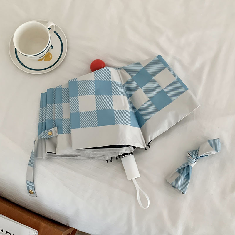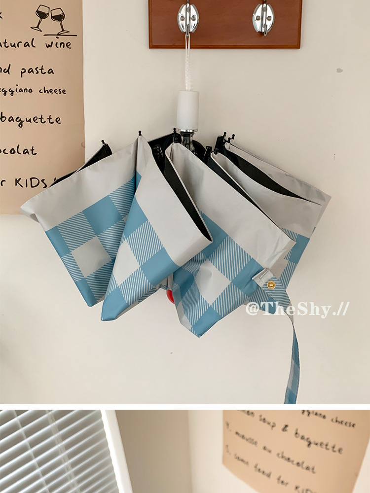 블루 체크 무늬 우산 여성용 Ins 간단한 빨간 코 이중 목적 선 스크린 우산 선 스크린 및 자외선 보호 접는 태양 우산