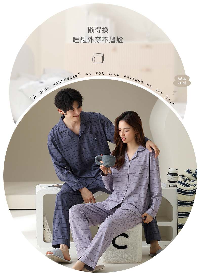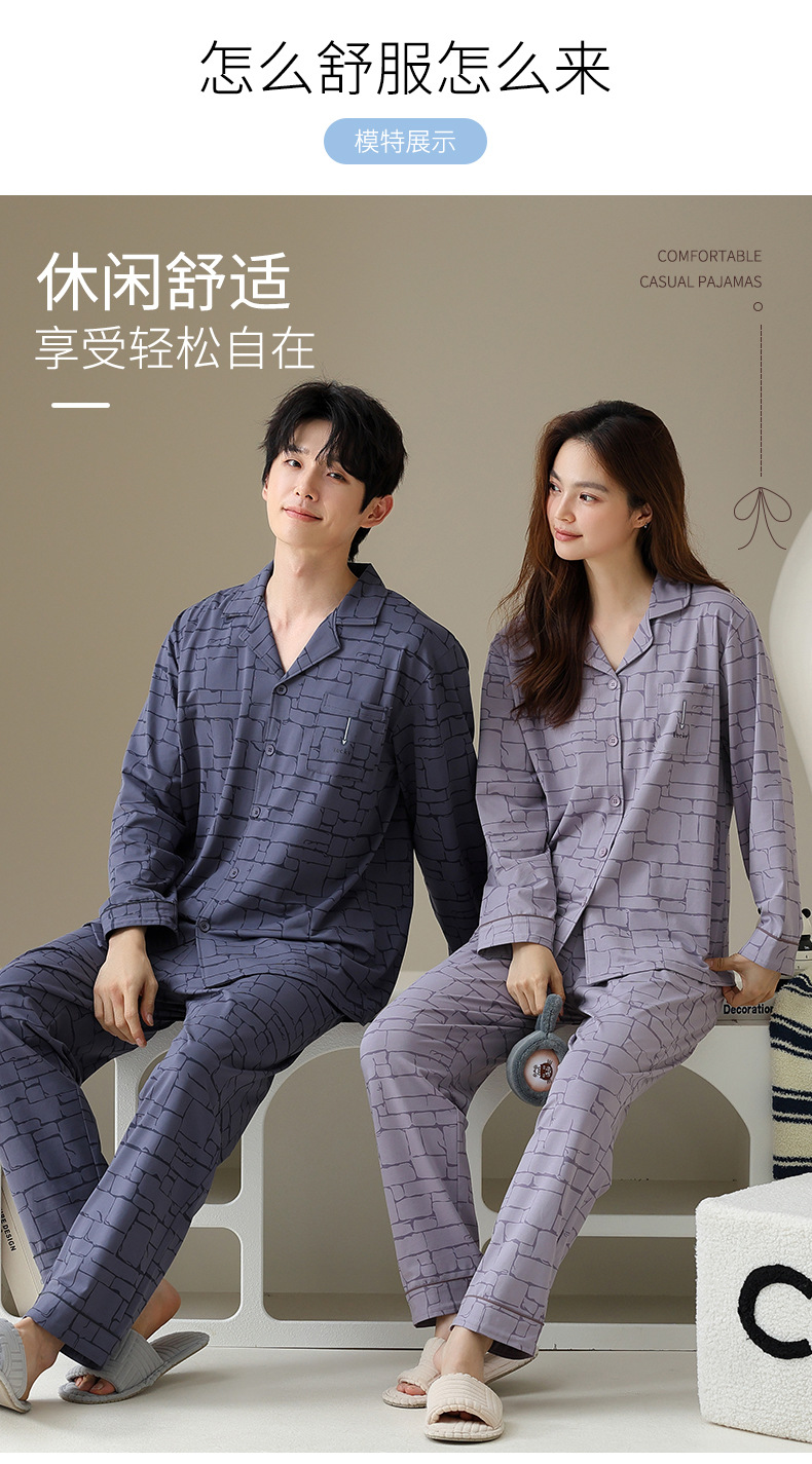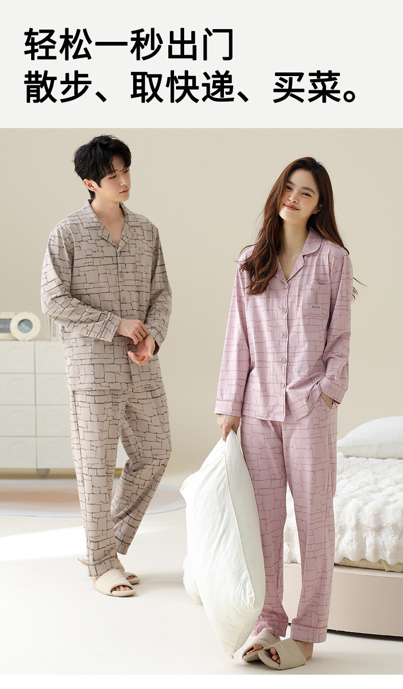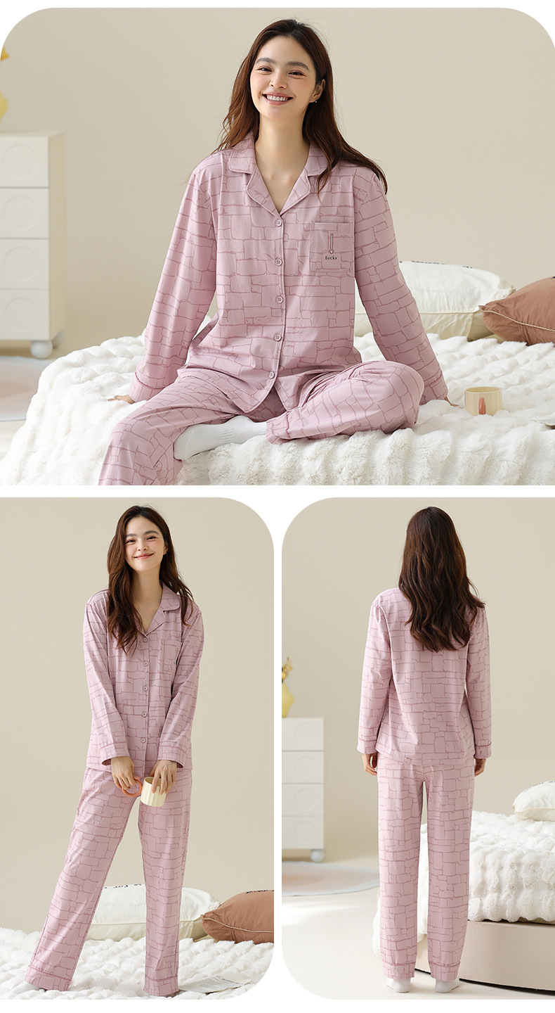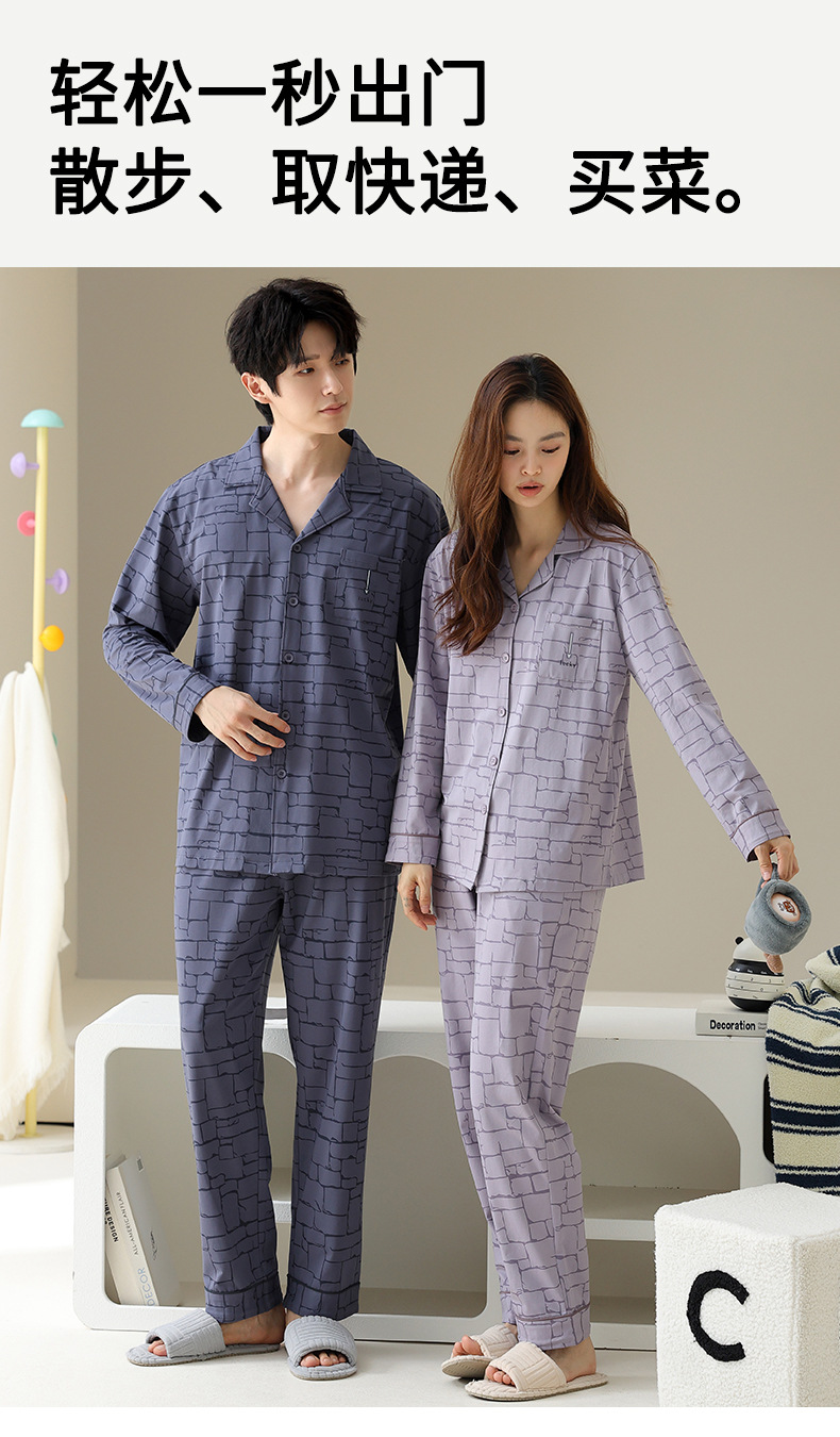 여성용 잠옷 가을 순면 긴팔 가디건 루즈한 대형 사이즈는 봄, 가을 남성 가정복 세트 외부에 착용 가능스토어 가기