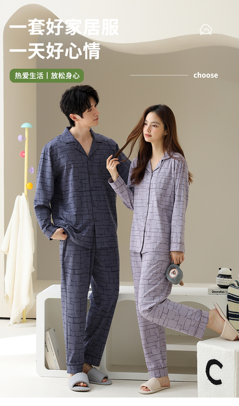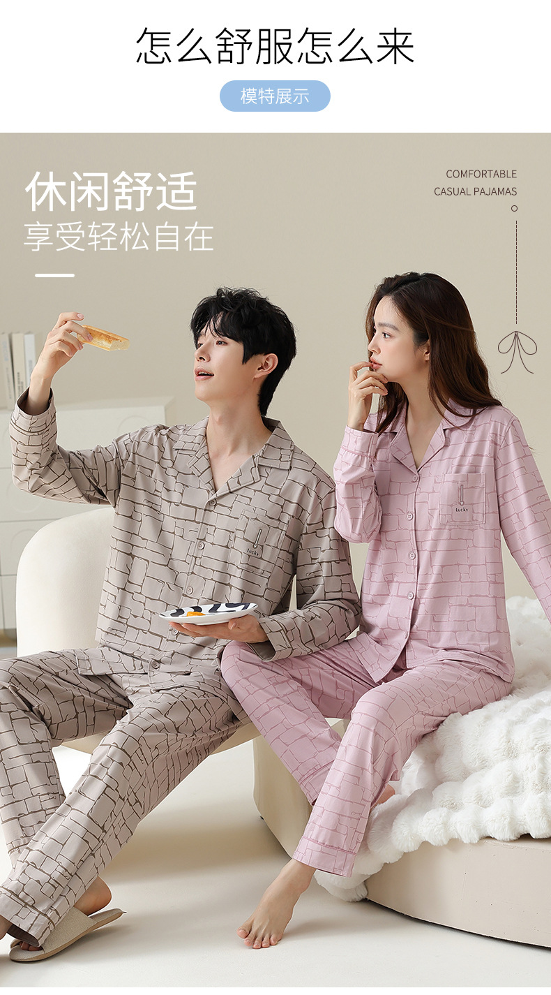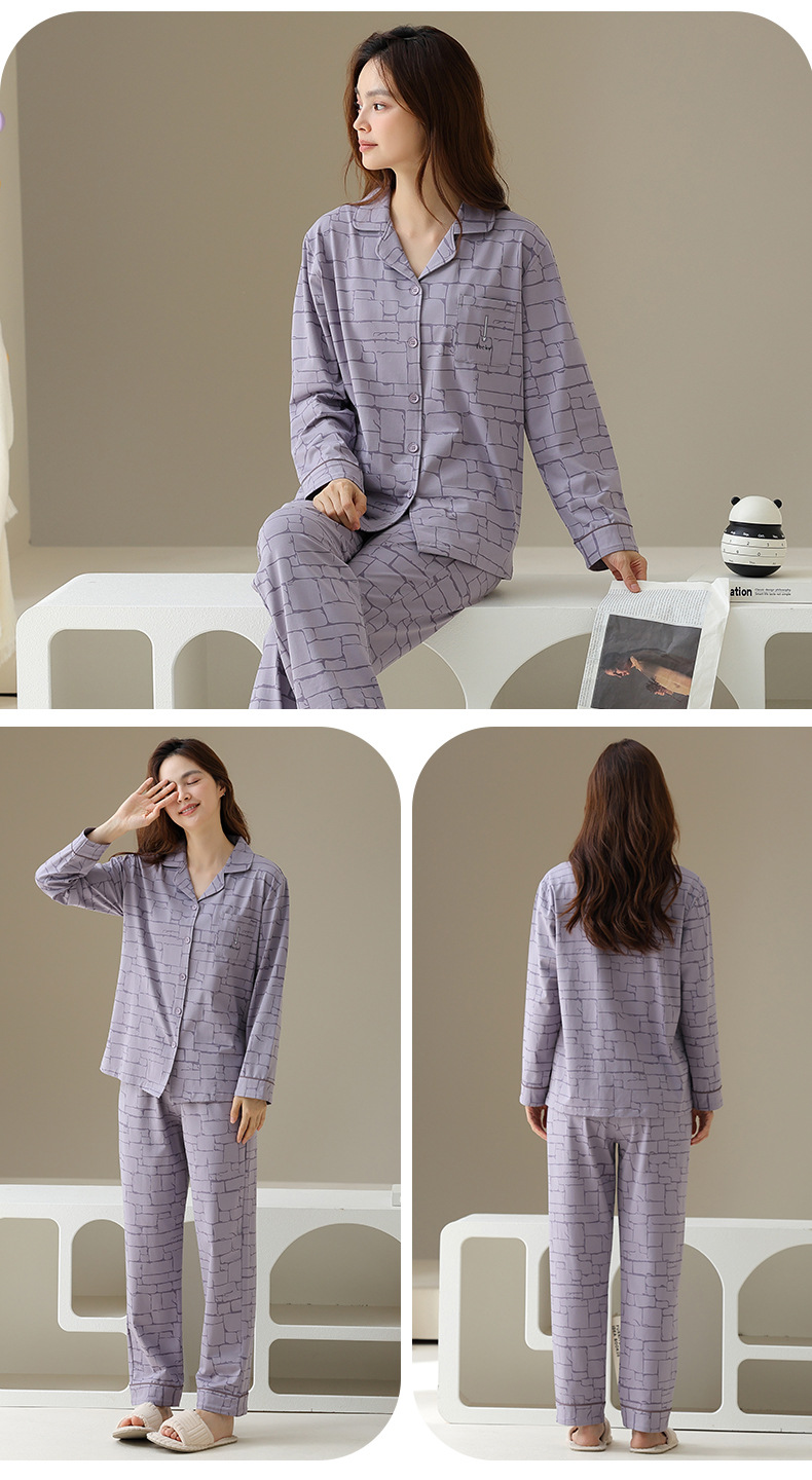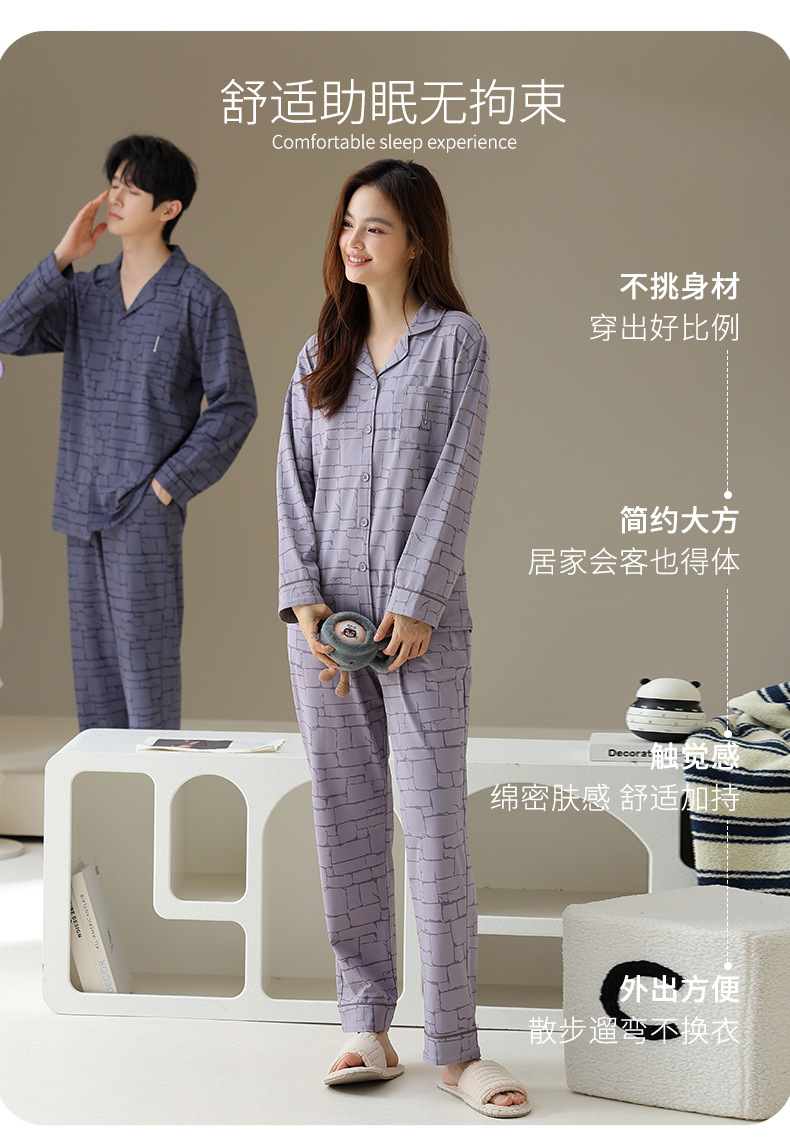여성용 잠옷 가을 순면 긴팔 가디건 루즈한 대형 사이즈는 봄, 가을 남성 가정복 세트 외부에 착용 가능스토어 가기