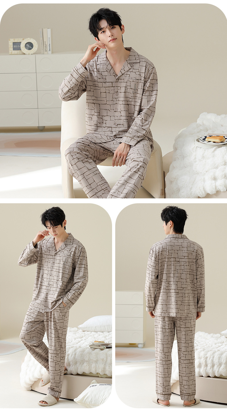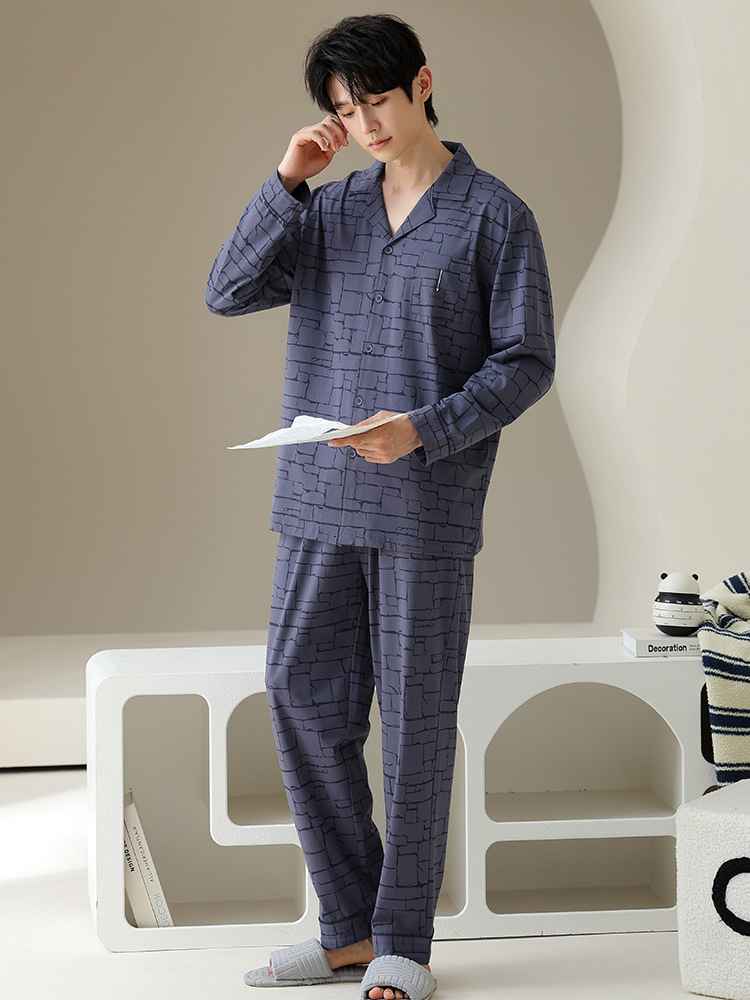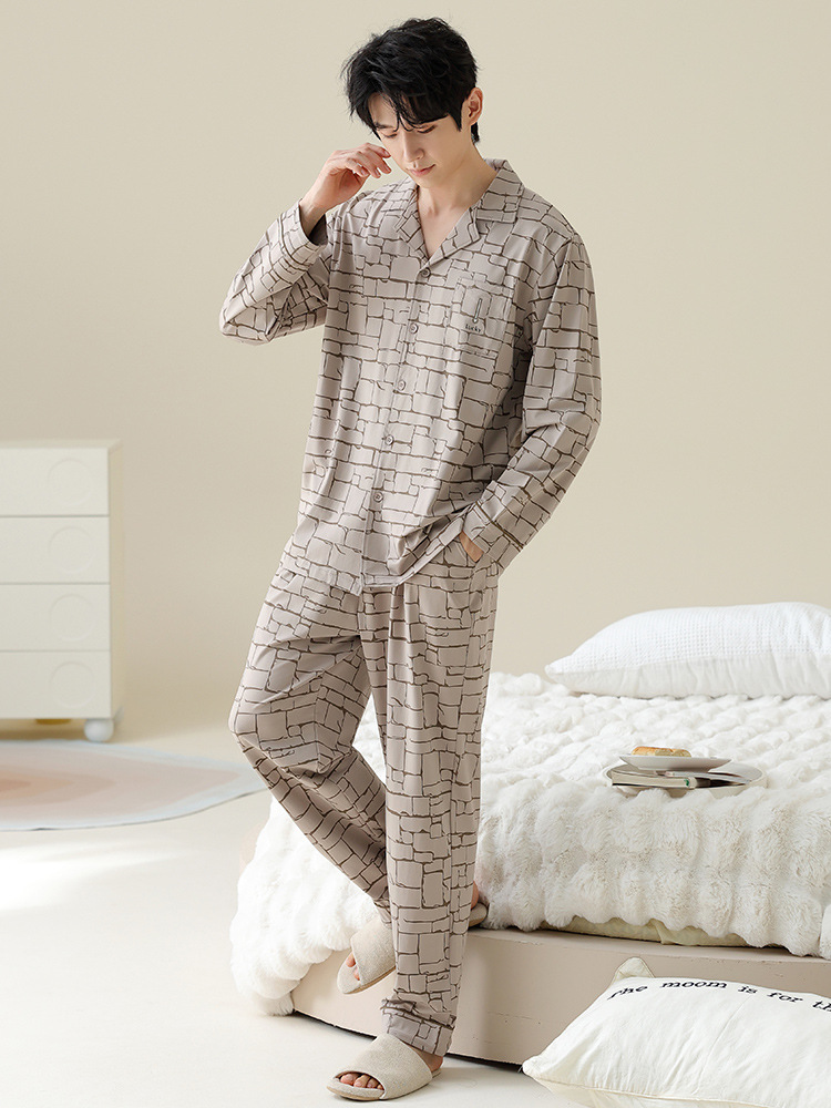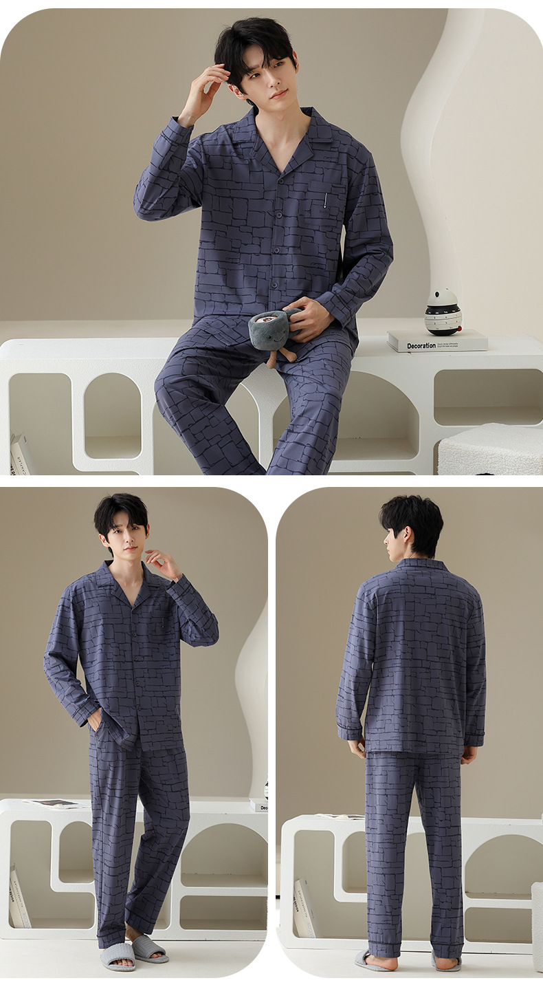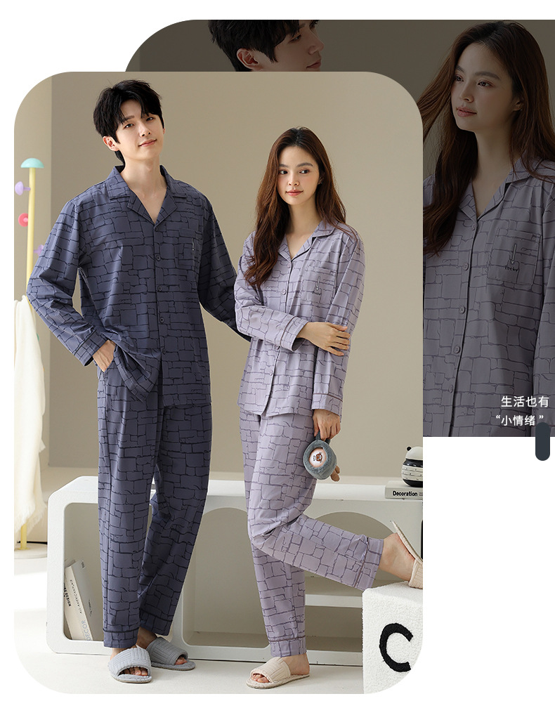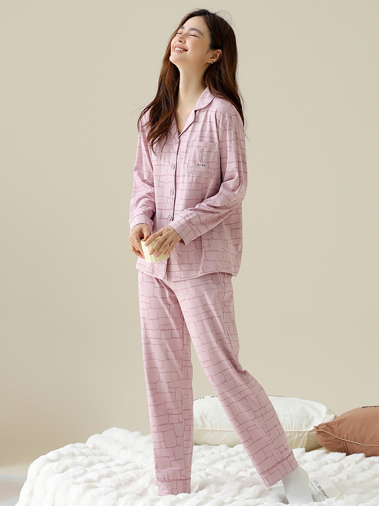 여성용 잠옷 가을 순면 긴팔 가디건 루즈한 대형 사이즈는 봄, 가을 남성 가정복 세트 외부에 착용 가능스토어 가기