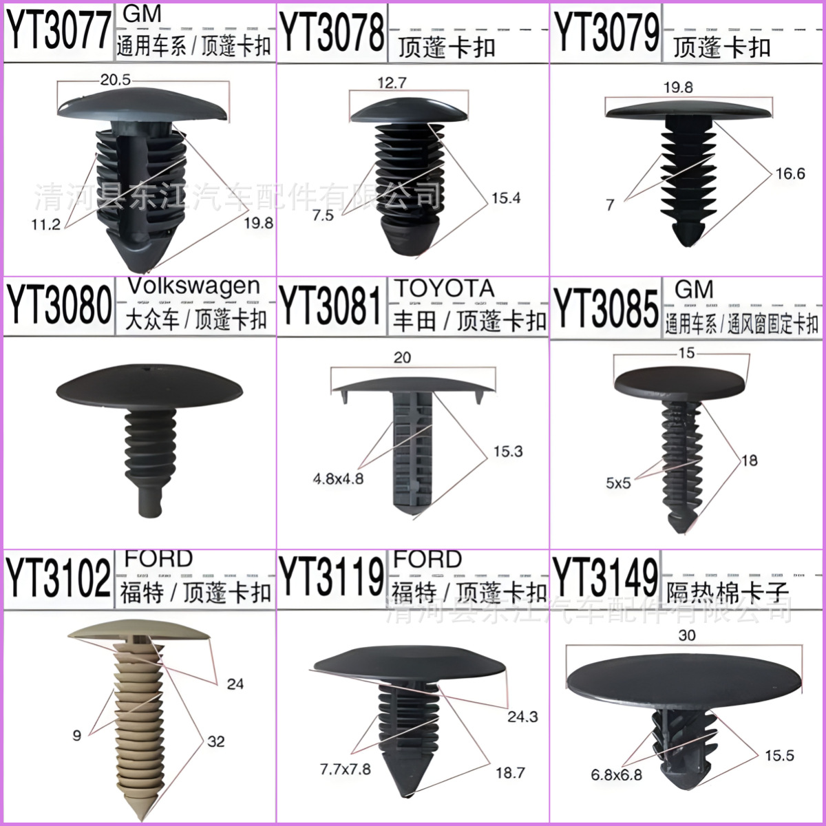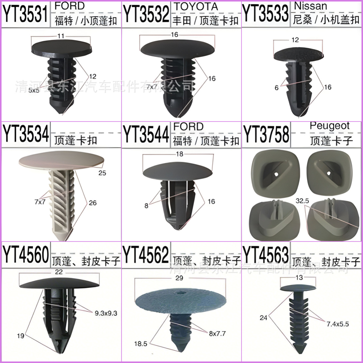 • 범용 자동차 시리즈/단열면 클립 천장 버클/3504