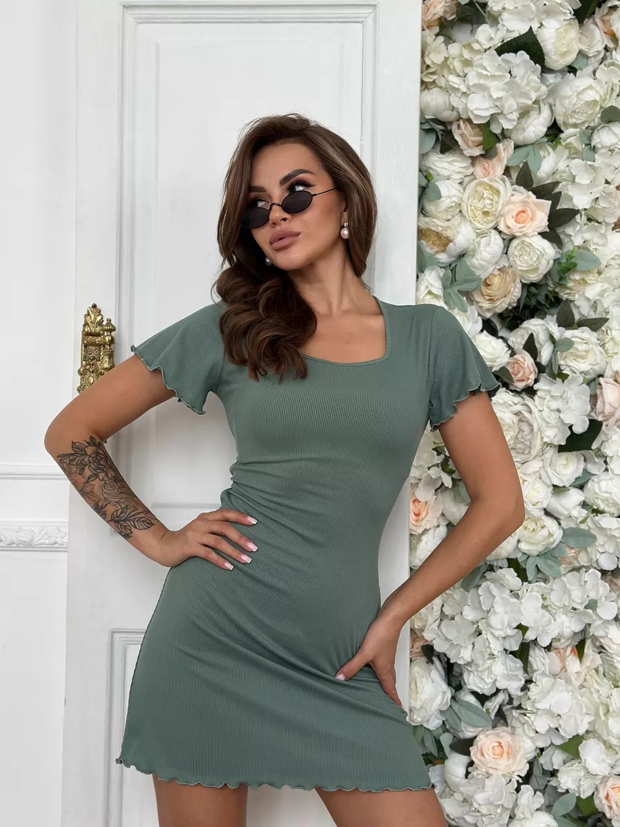 유럽과 미국의 여성 의류 도매 독립 역 새로운 패션 캐주얼 단색 둥근 목 순면 니트 로프 짧은 소매 원피스