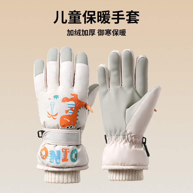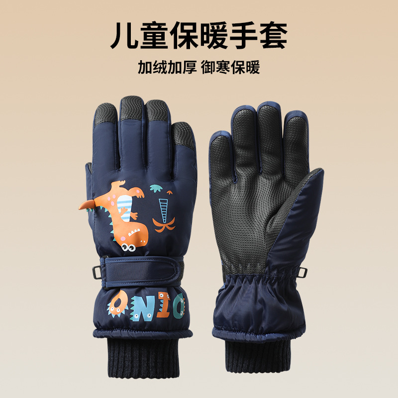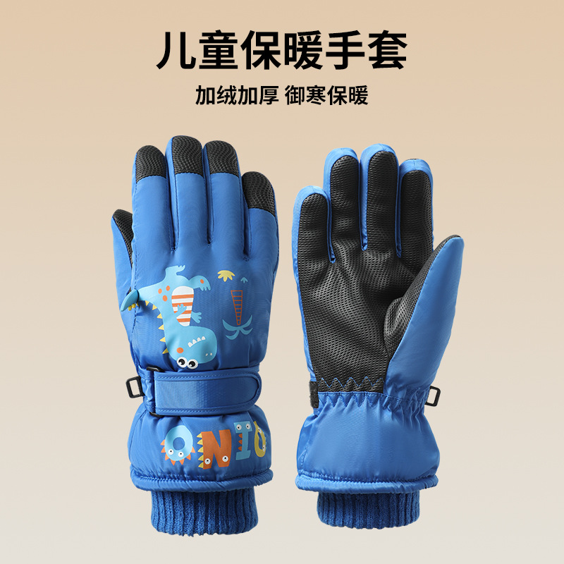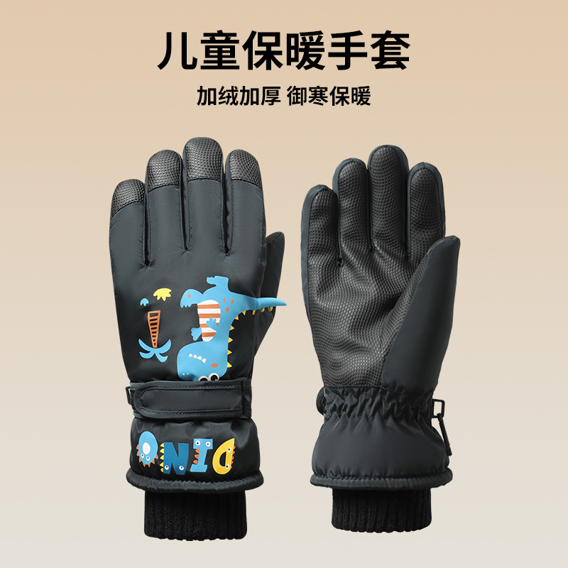 어린이 스키 장갑, 벨벳 안감, 방풍, 두꺼운, 따뜻하고 방수, 만화 캐릭터, 남녀 어린이용, 8-15세, 겨울 장갑