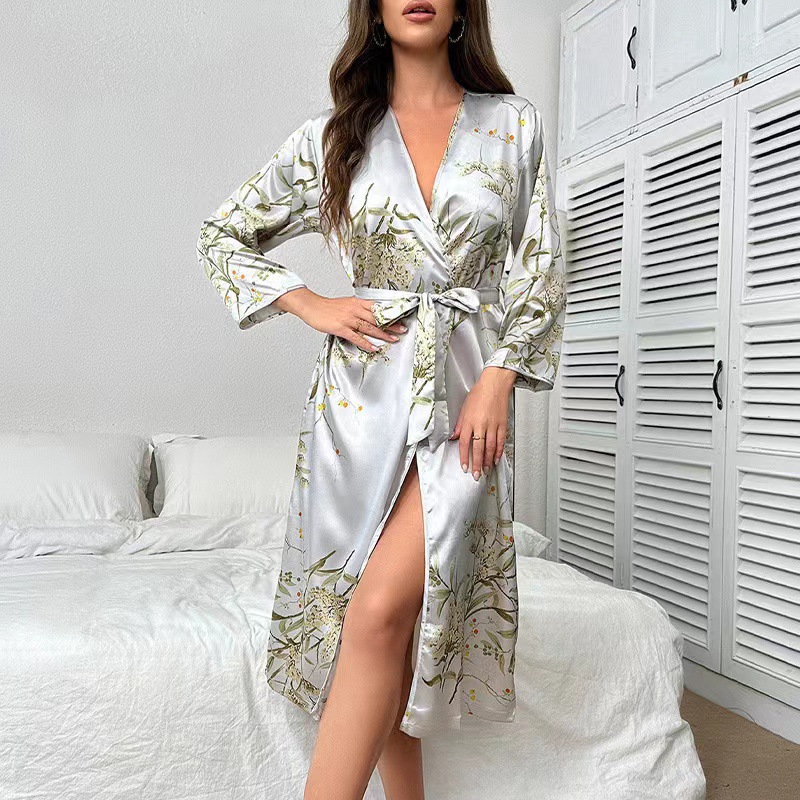 여성용 홈웨어 끈이 달린 잠옷 세트 얇은 중간 길이 잠옷 세트 다용도스토어 가기