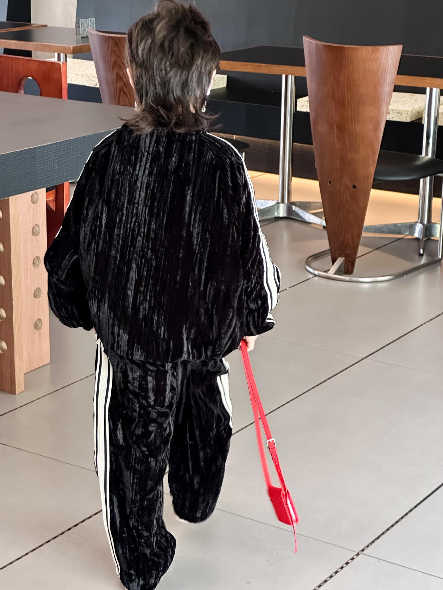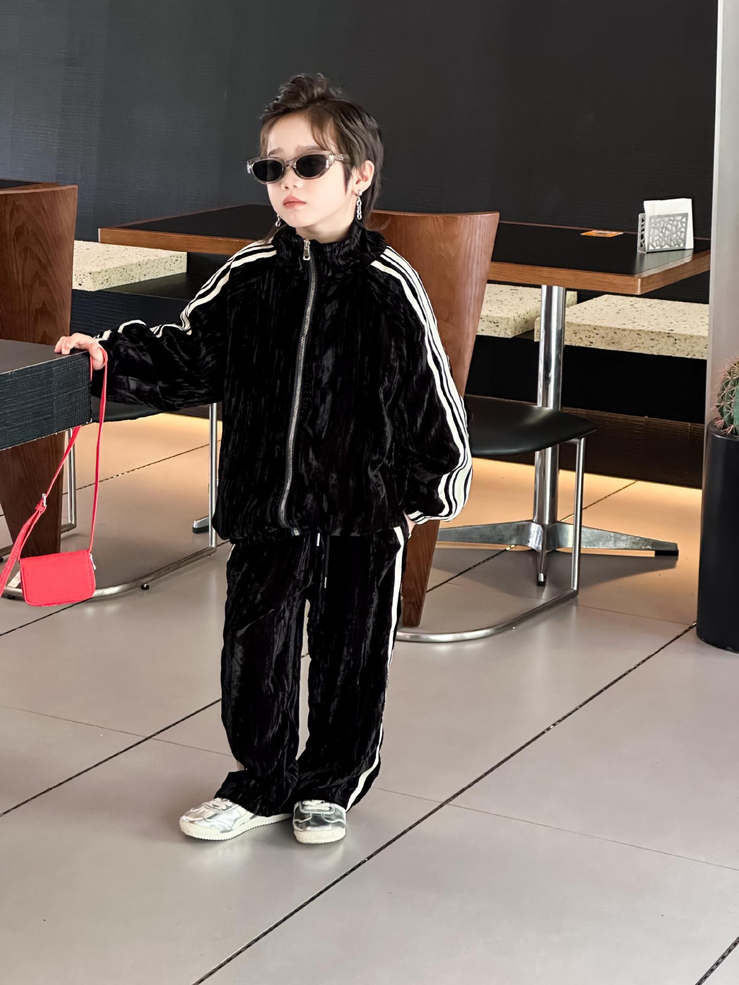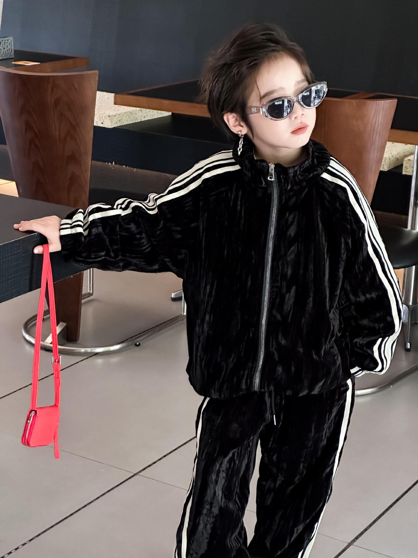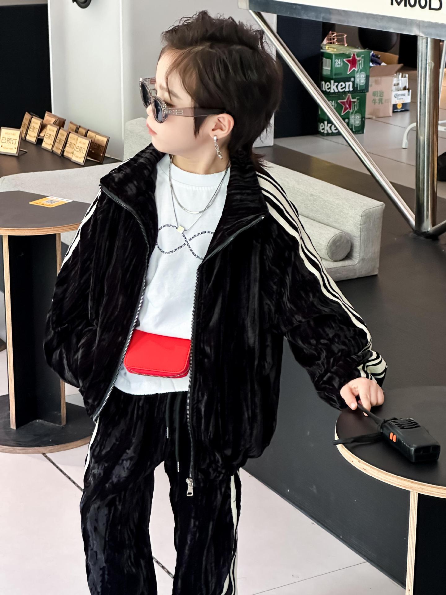 트레이슬블랙 트레이블랙 가을겨울 벨벳 자켓 투피스 세트 남성용 니치 컬러블록 스트라이프 캐주얼 스포츠 세트 한국 스타일 캐주얼 만능템스토어 가기
