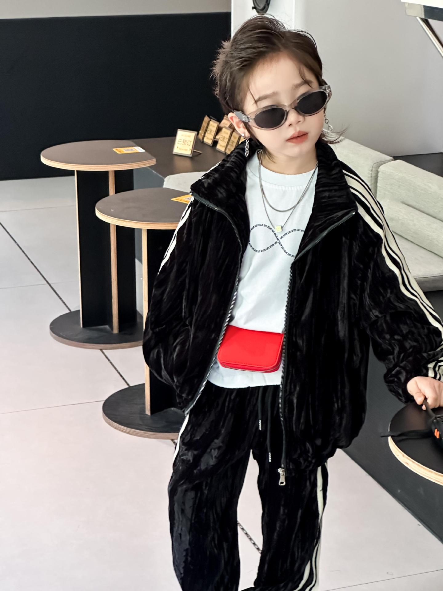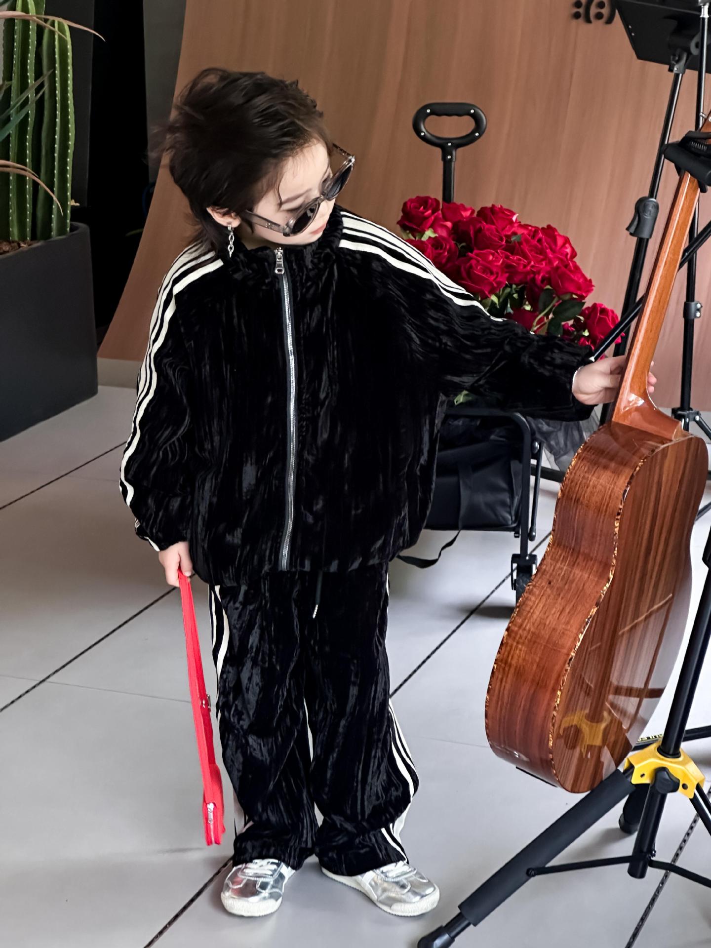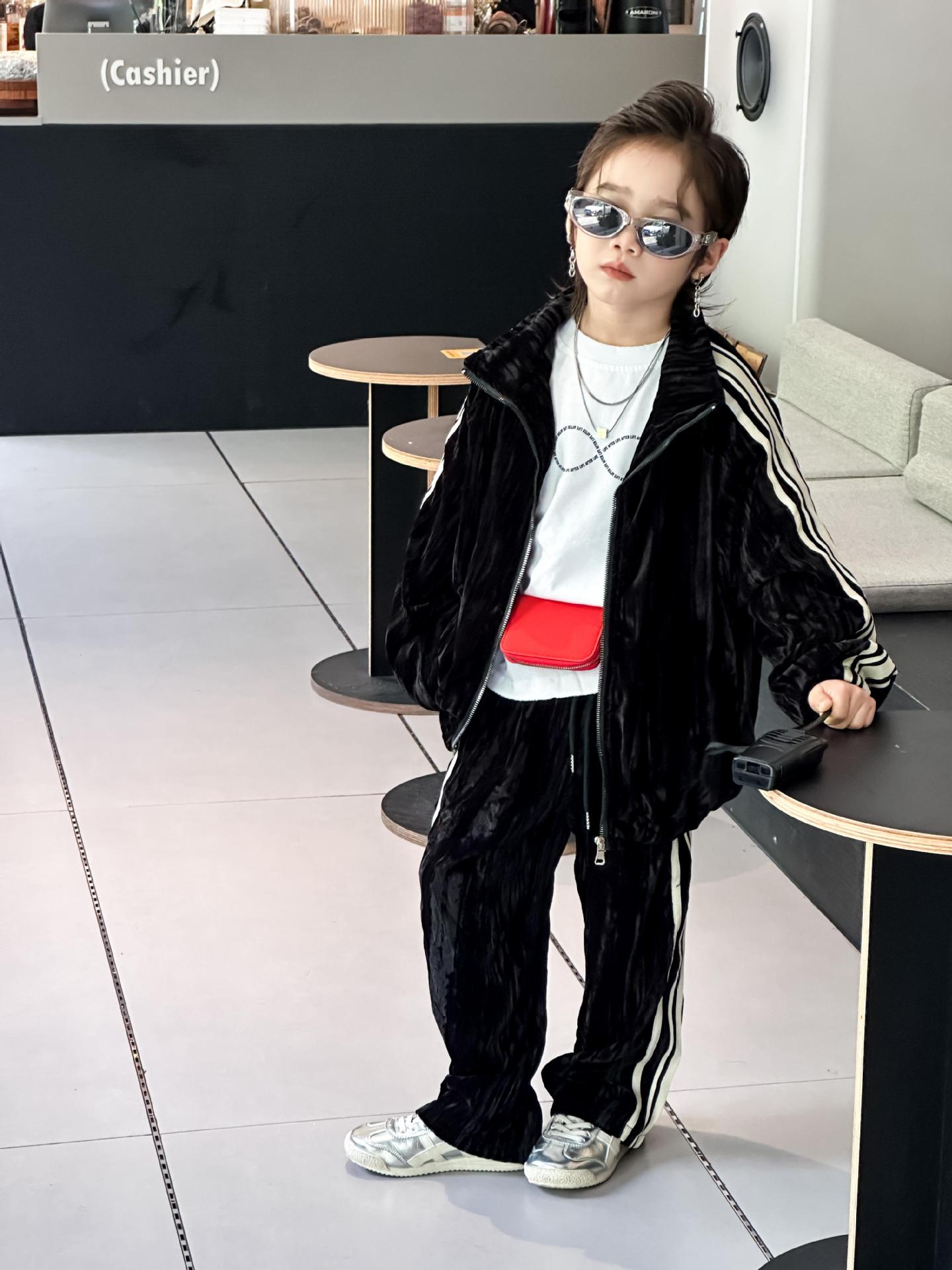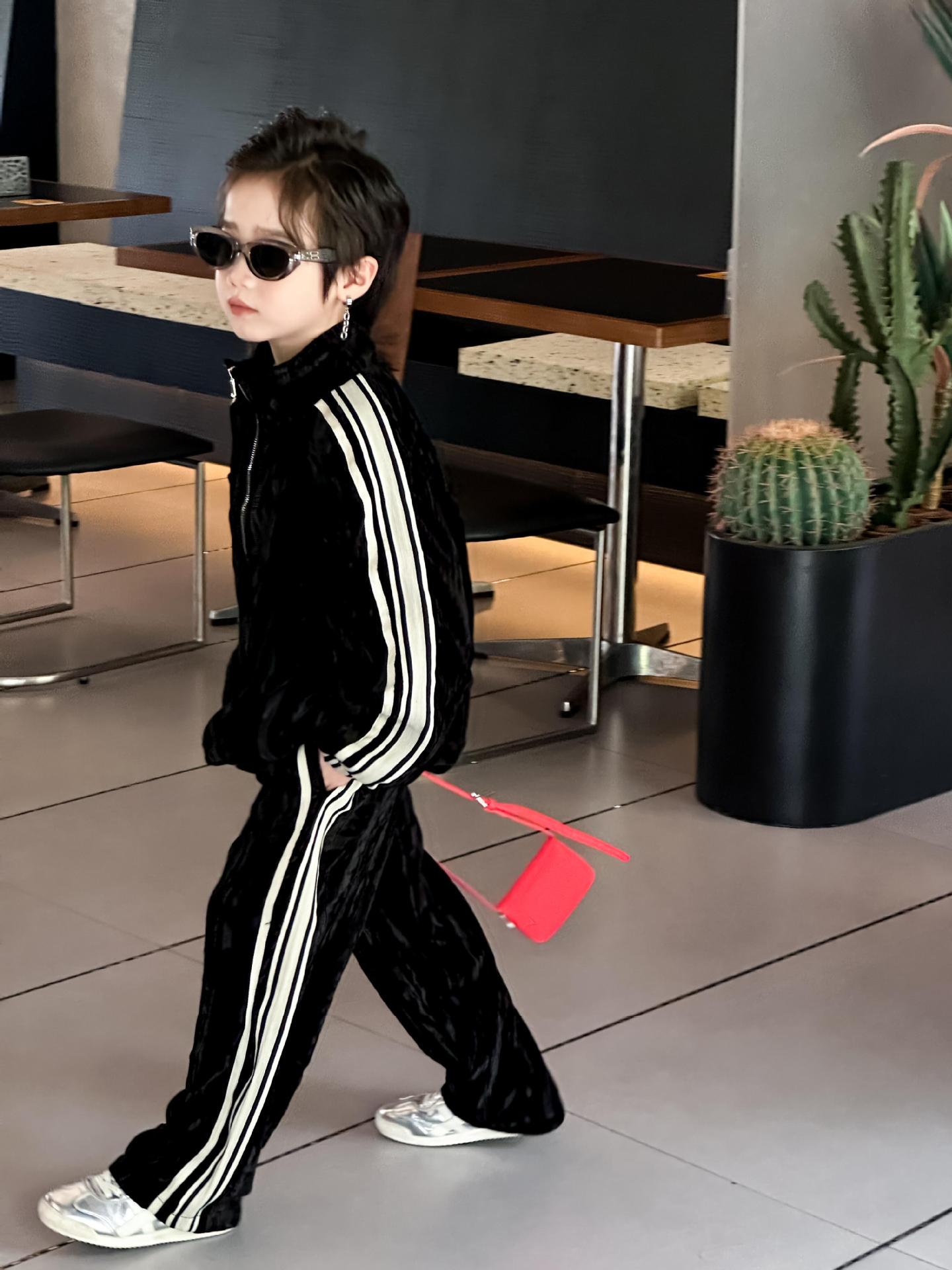 트레이슬블랙 트레이블랙 가을겨울 벨벳 자켓 투피스 세트 남성용 니치 컬러블록 스트라이프 캐주얼 스포츠 세트 한국 스타일 캐주얼 만능템스토어 가기