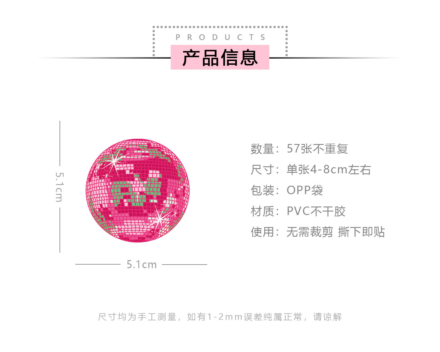 55 새로운 디스코 볼 낙서 스티커 장식 수하물 휴대 전화 만화 성격 스티커 제조 업체 도매