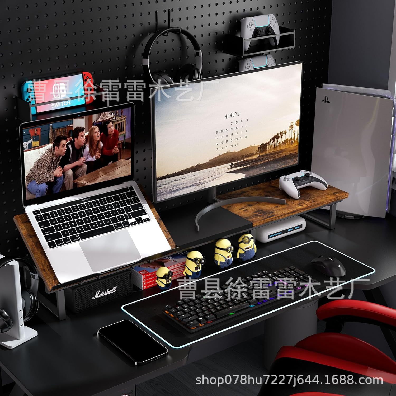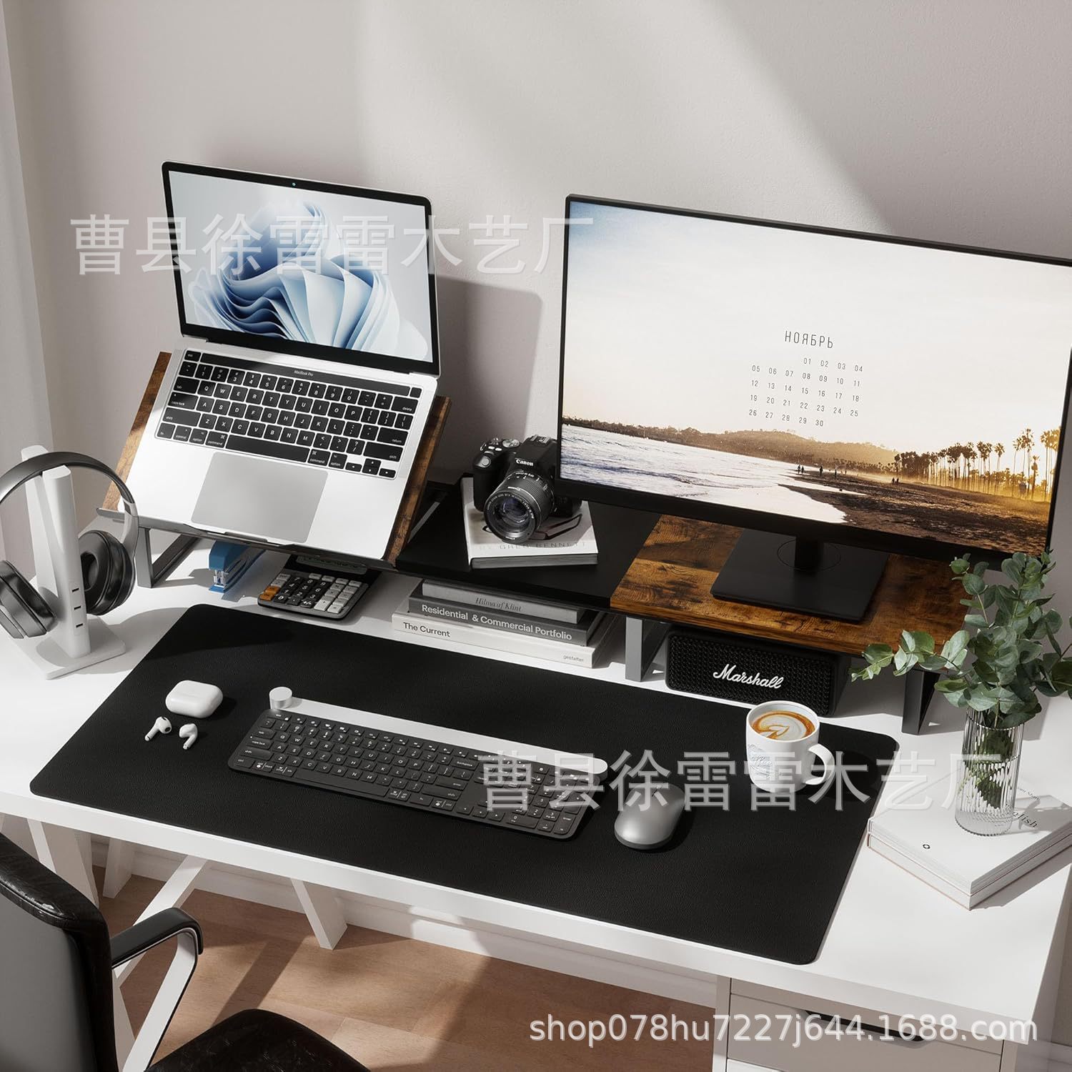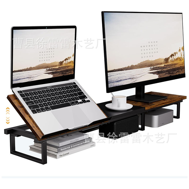 나무 듀얼 모니터 컴퓨터 스탠드 조정 가능한 높이 노트북 높은 스탠드 책상 컴퓨터 스탠드