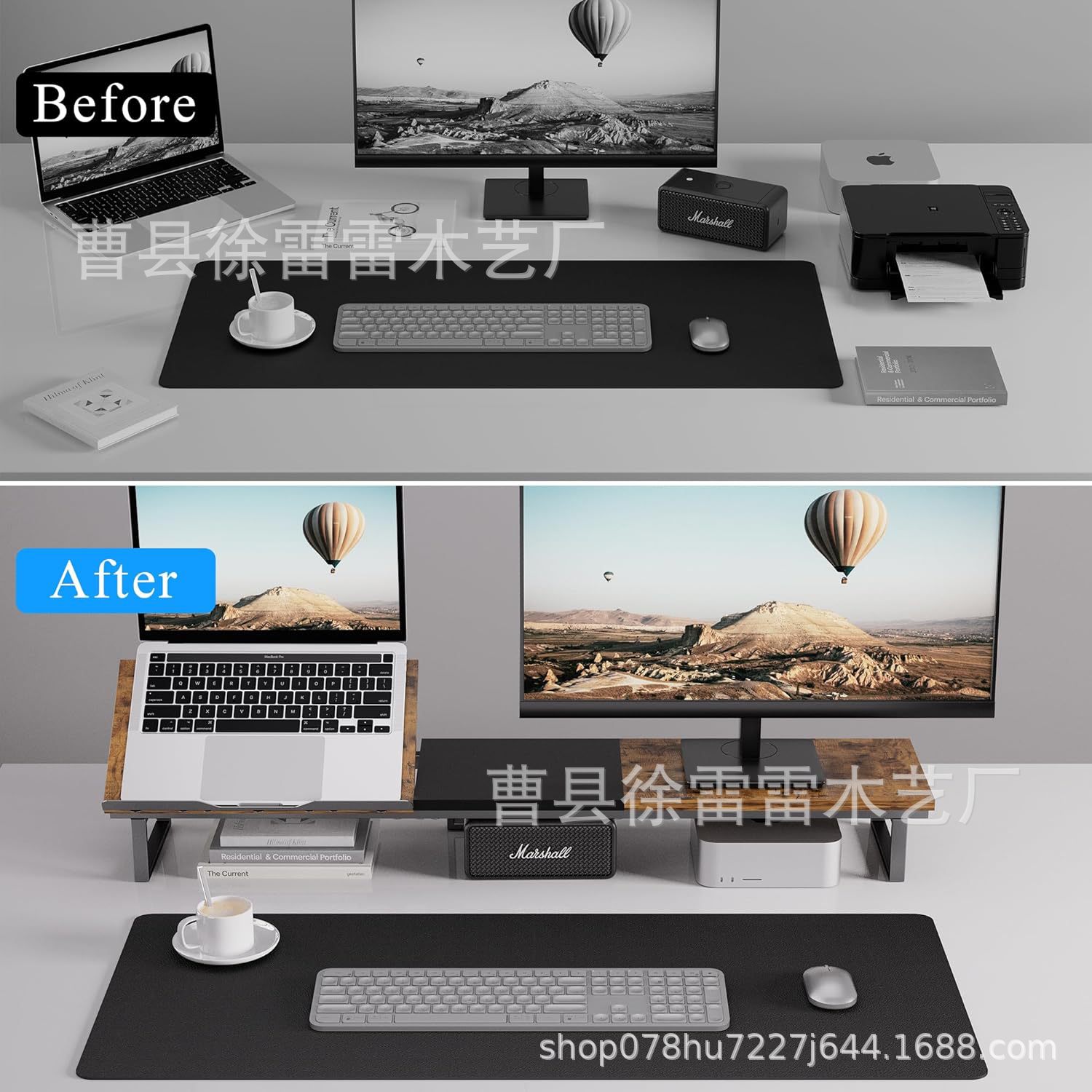나무 듀얼 모니터 컴퓨터 스탠드 조정 가능한 높이 노트북 높은 스탠드 책상 컴퓨터 스탠드스토어 가기