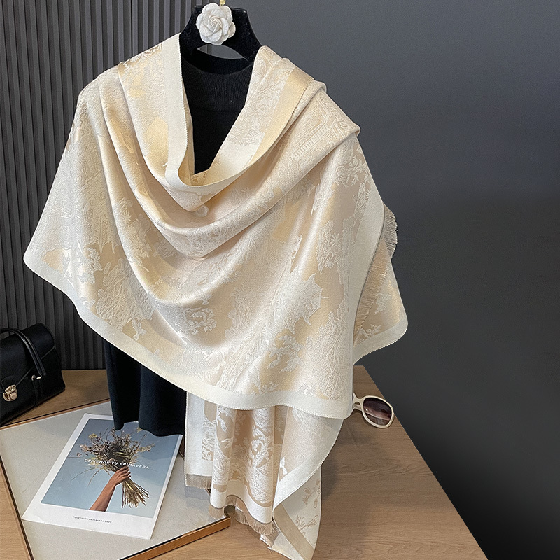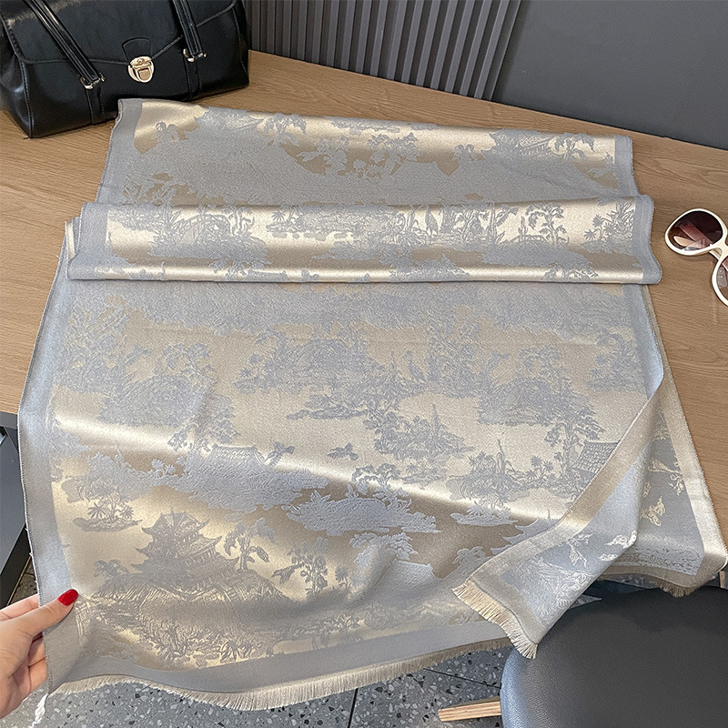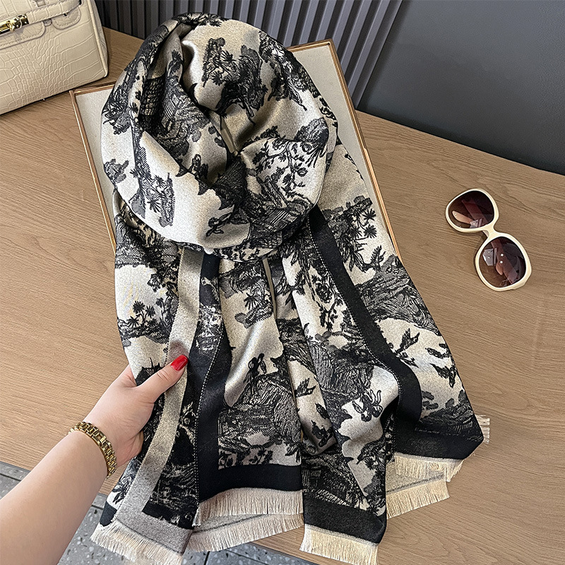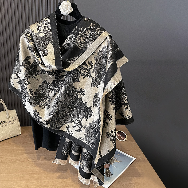 가을과 겨울 새로운 양면 캐시미어 골동품 식물 산 숲 간단하고 우아한 두꺼운 따뜻한 스카프 에어컨 방 목 보호 목도리