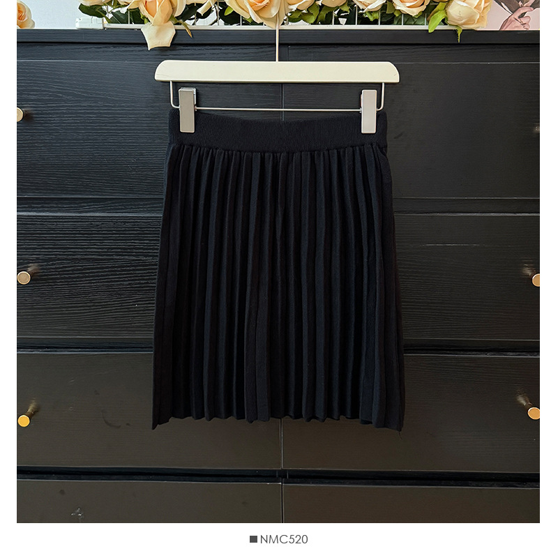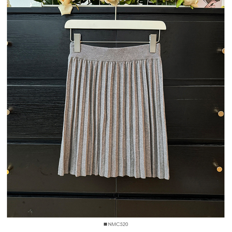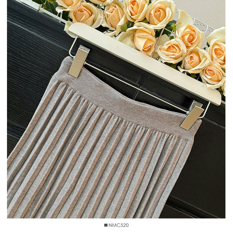 2024 새로운 한국식 슬림 디자인 올매치 니트 스커트 주름 절반 길이 스커트스토어 가기