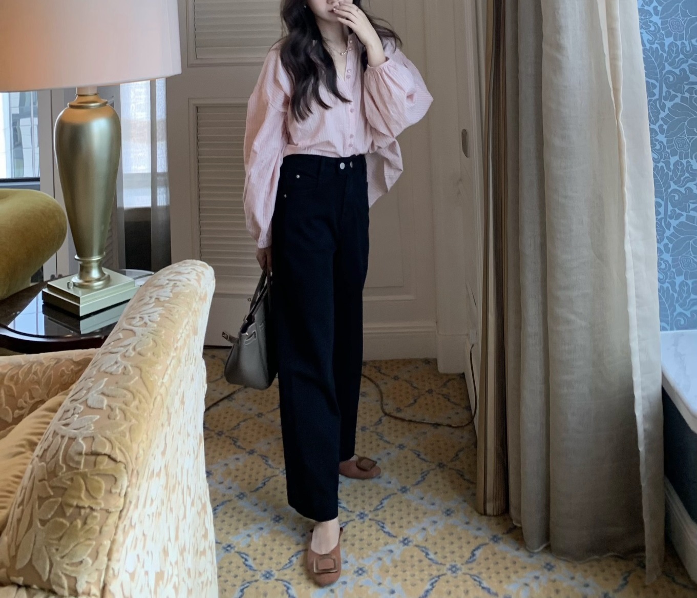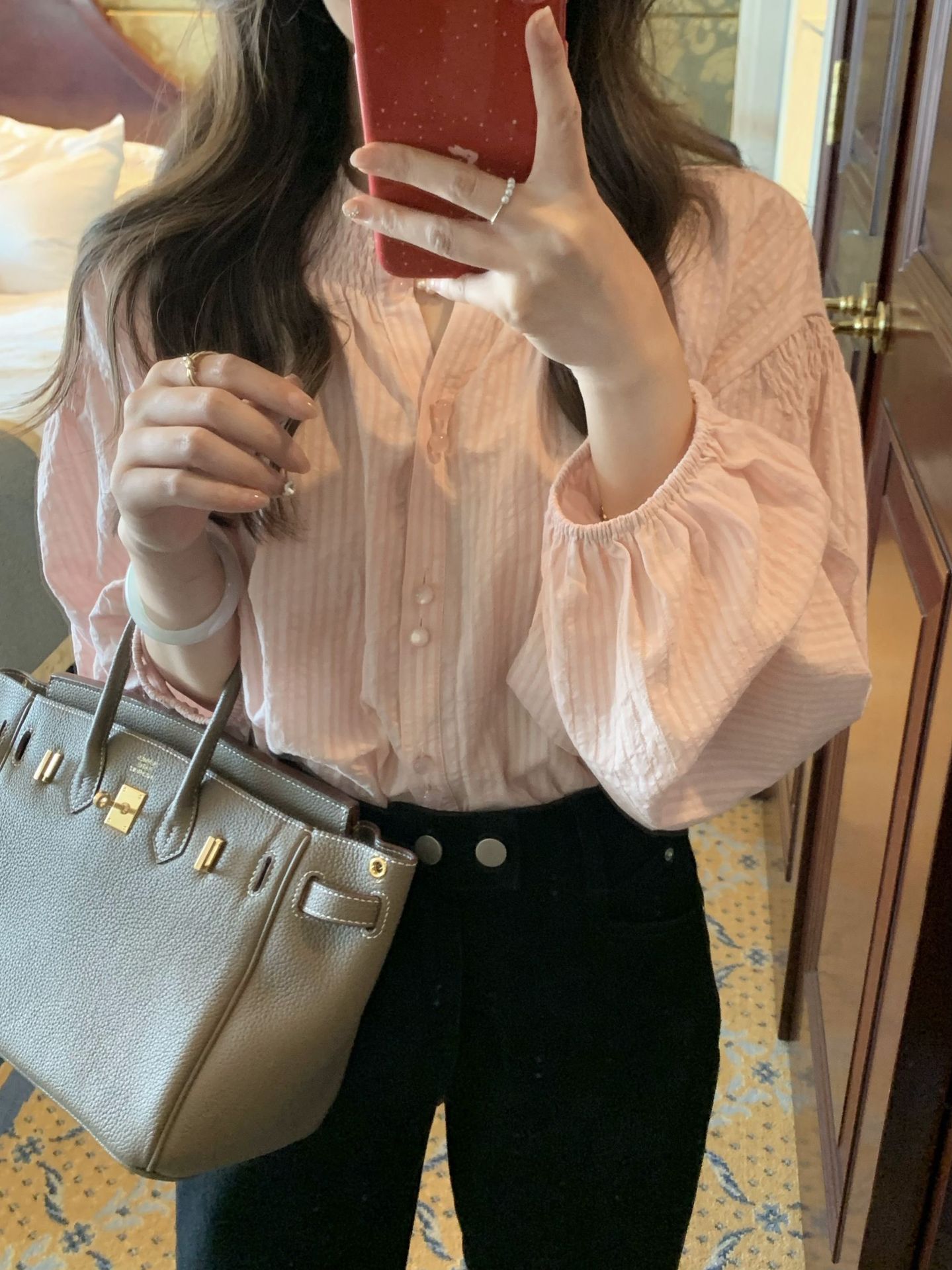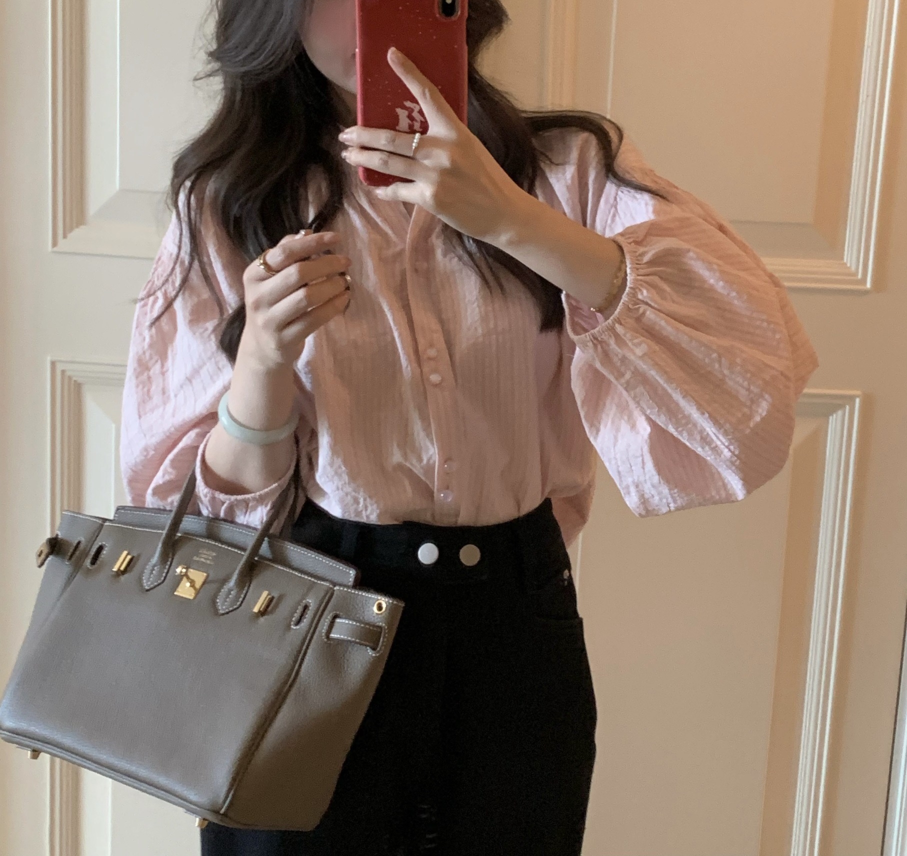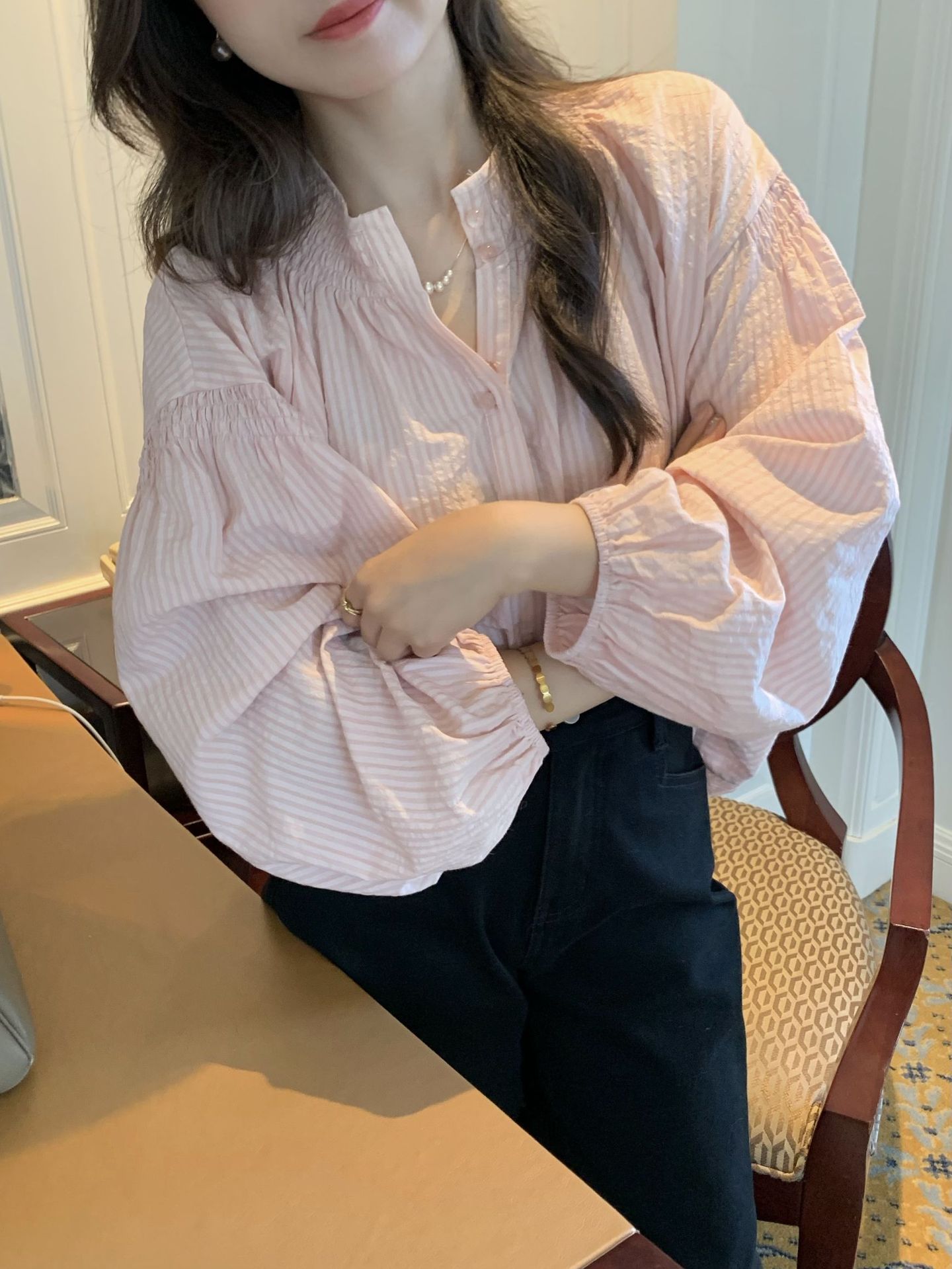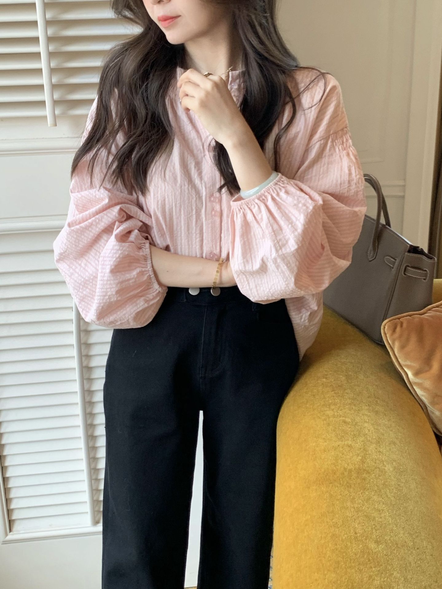Yiye Zhiqiu/초가을 줄무늬 기질 부드러운 한국 통근 긴 소매 셔츠스토어 가기