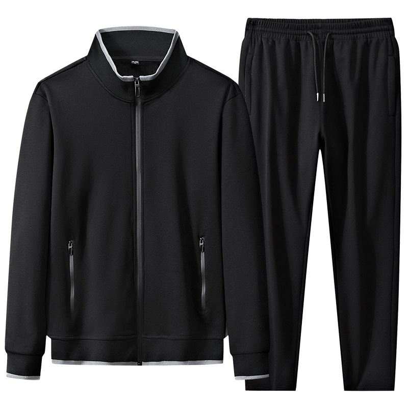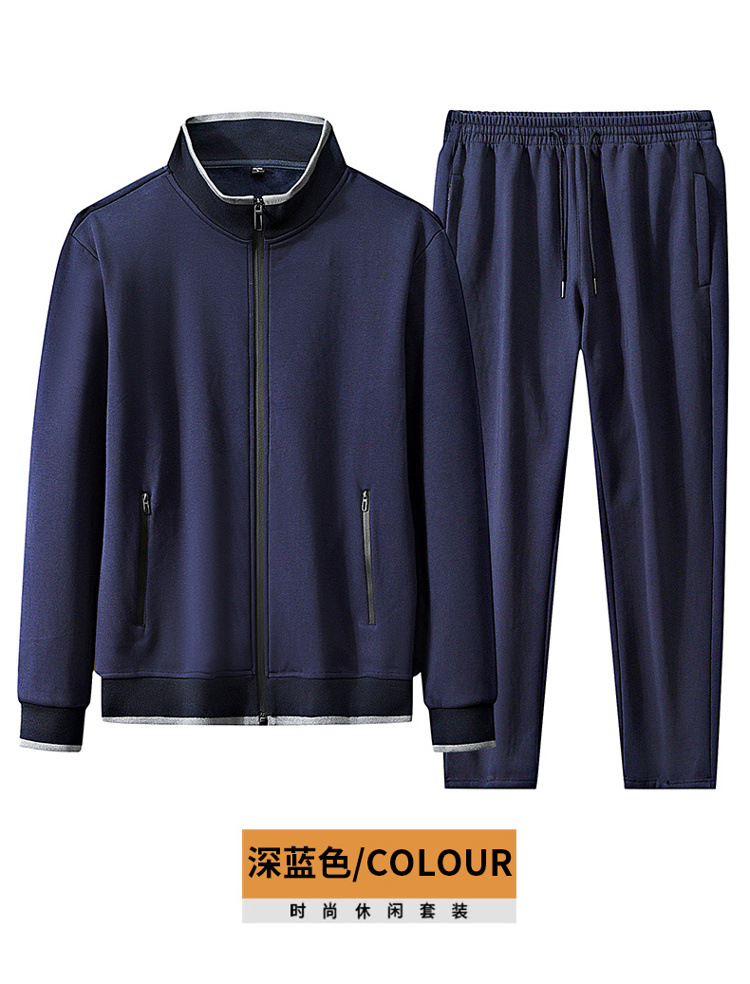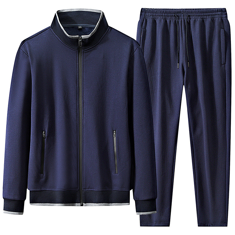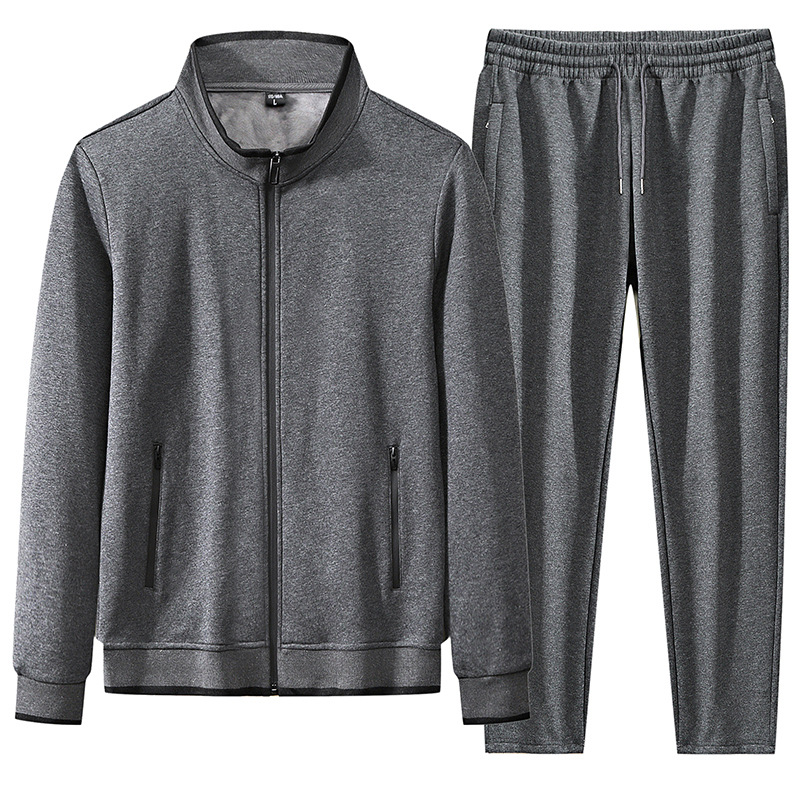 스포츠 세트 남성용 봄 및 가을 면화 카디건 중년 및 노인 캐주얼 스포츠웨어 남성 투피스 세트 긴 소매 바지