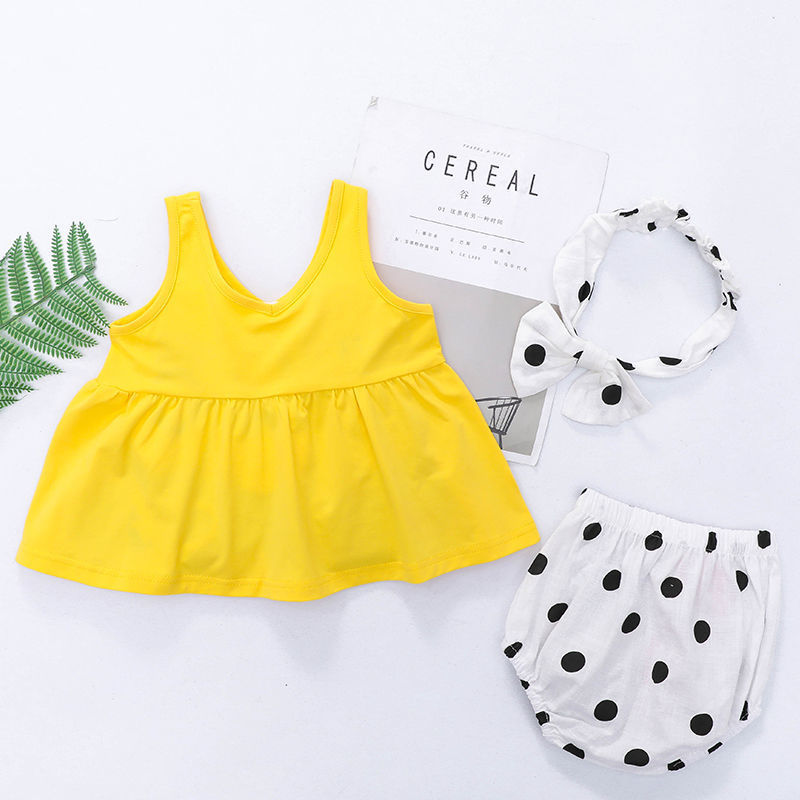 • 노란색 스커트 + 흰색 도트팬츠(투피스세트)와 머리띠가 어울리지 않음