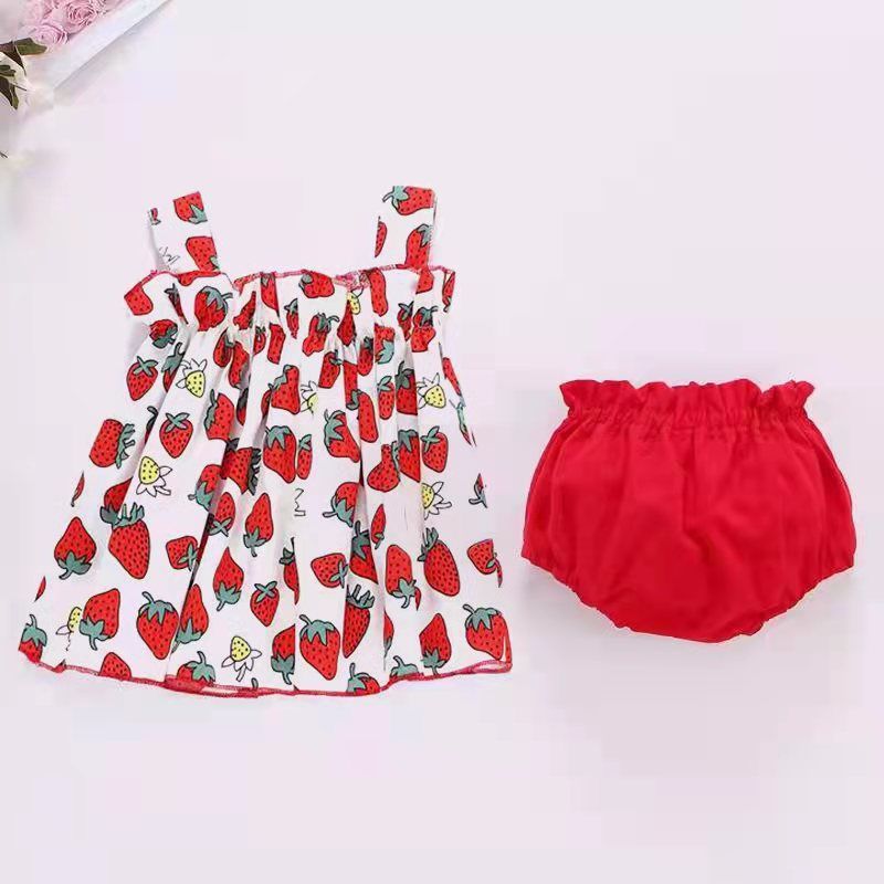 • 과일 그린 스커트 + 화이트 도트 팬츠 (투피스 세트)