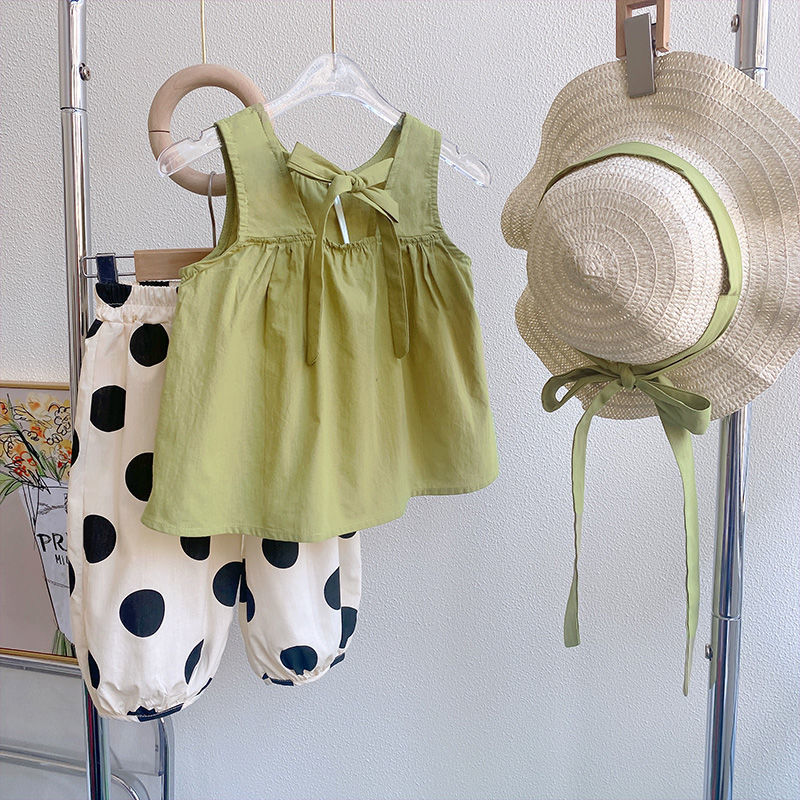 • 녹색 조끼 + 흰색 도트 바지 정장 (모자는 포함되어 있지 않습니다)